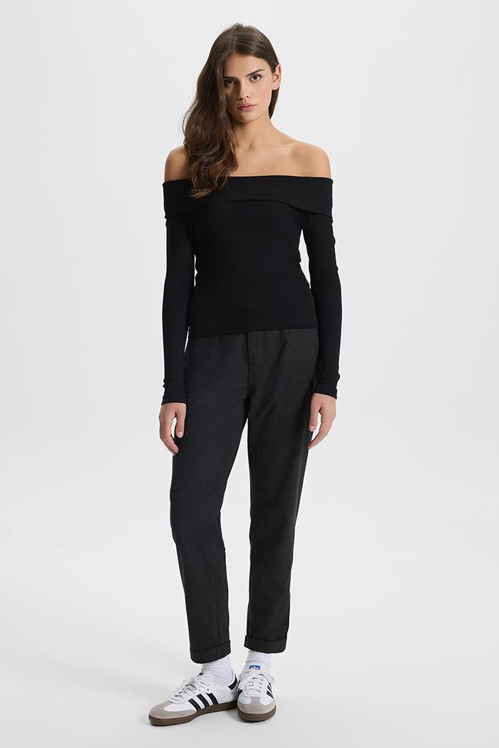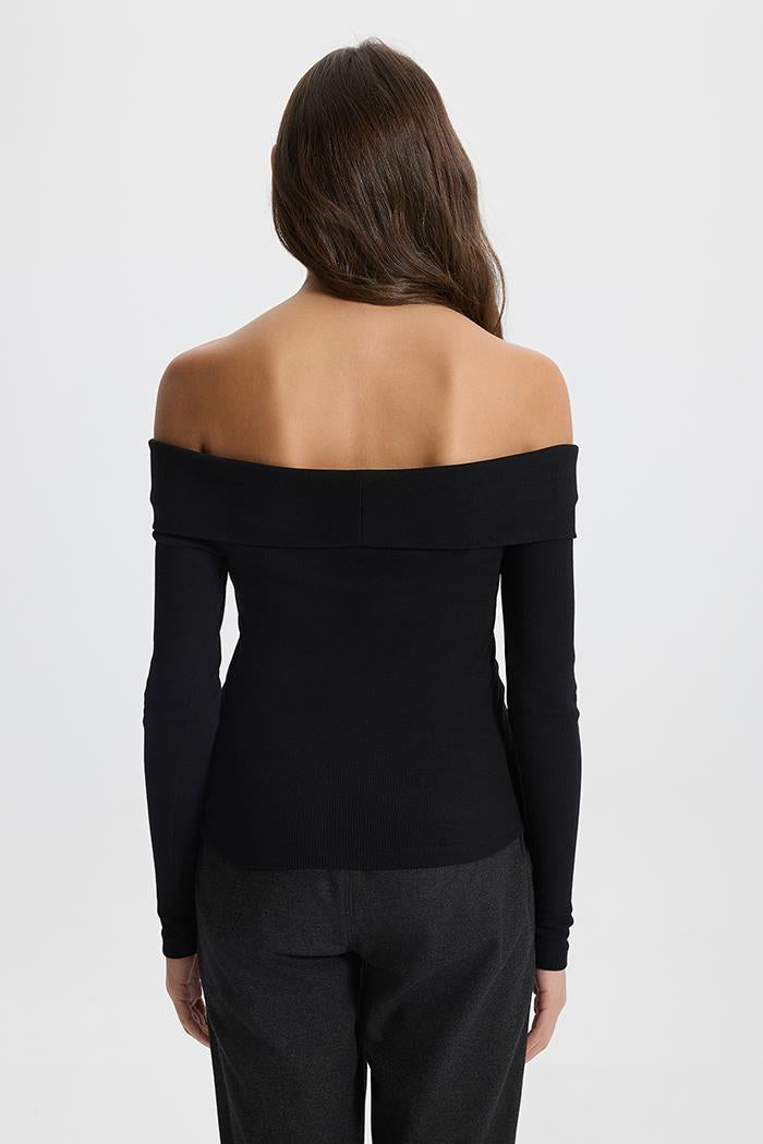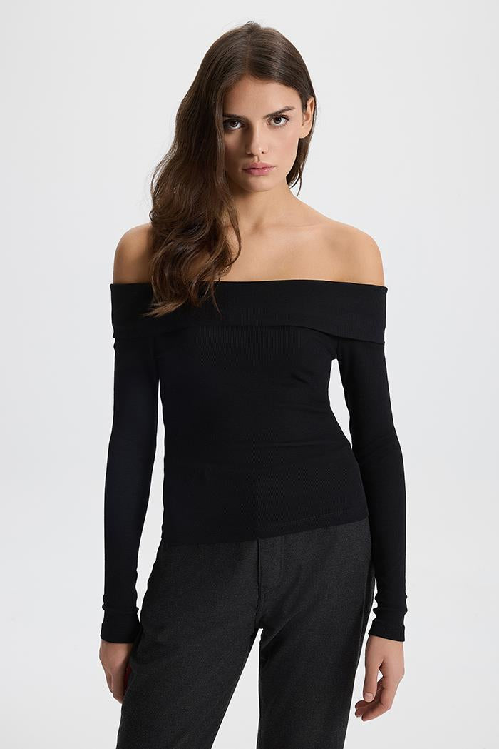 Kadın Julia Omuzları Açık Detaylı Tişört - Siyah