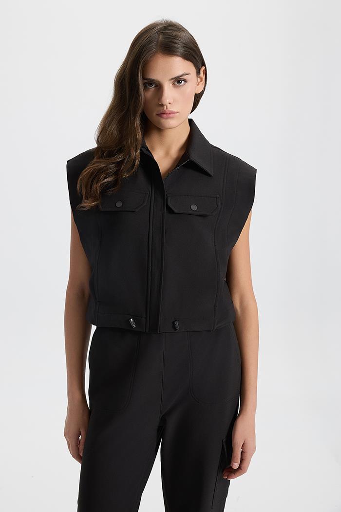 Kadın July Oversize Şardonlu Paraşüt Yelek - Siyah