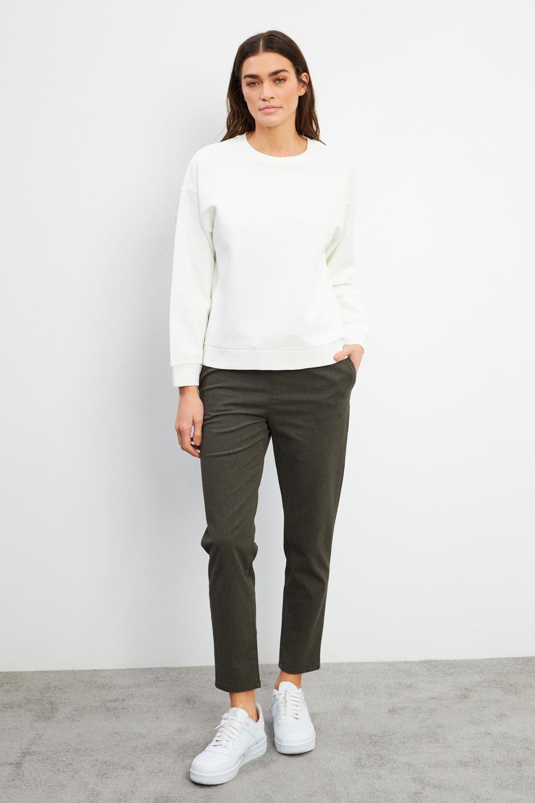Kadın 0 Yaka Pike Sweatshirt - Fildişi