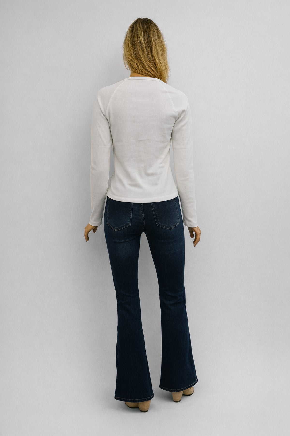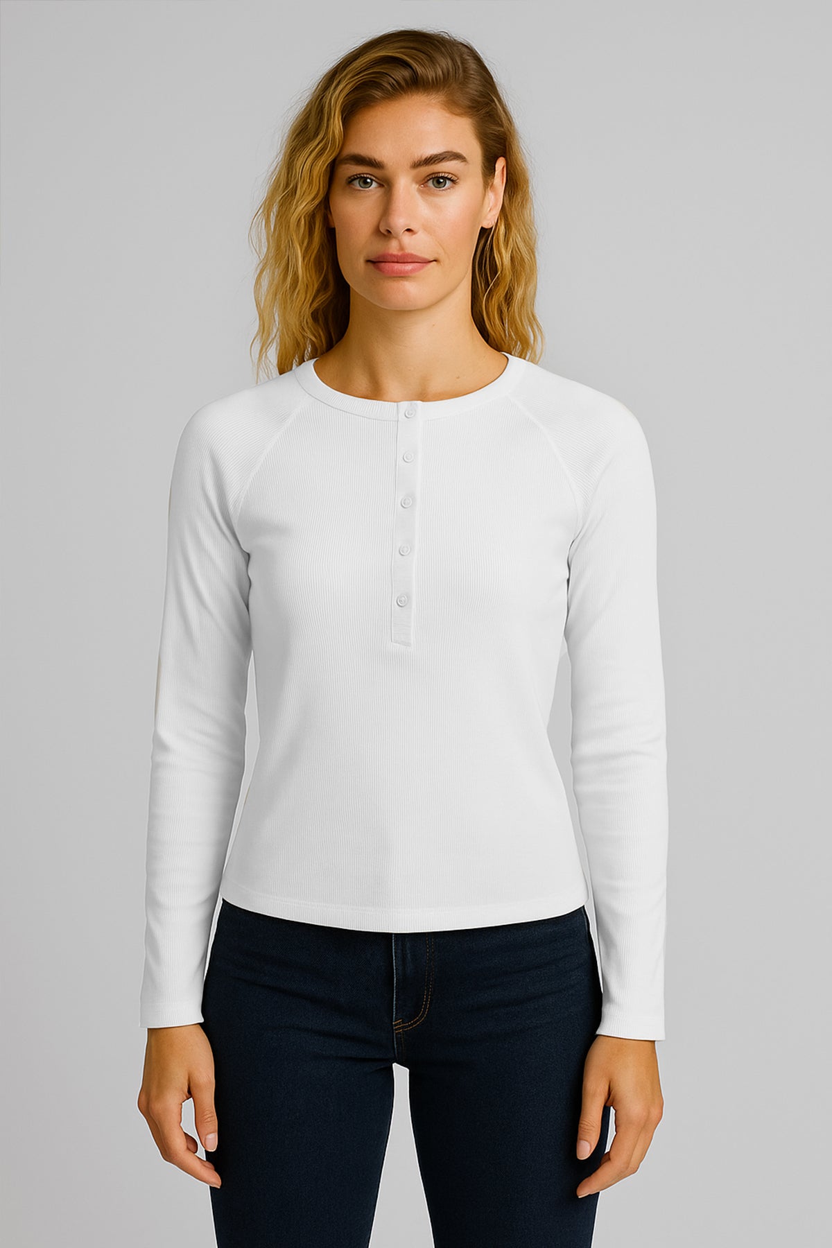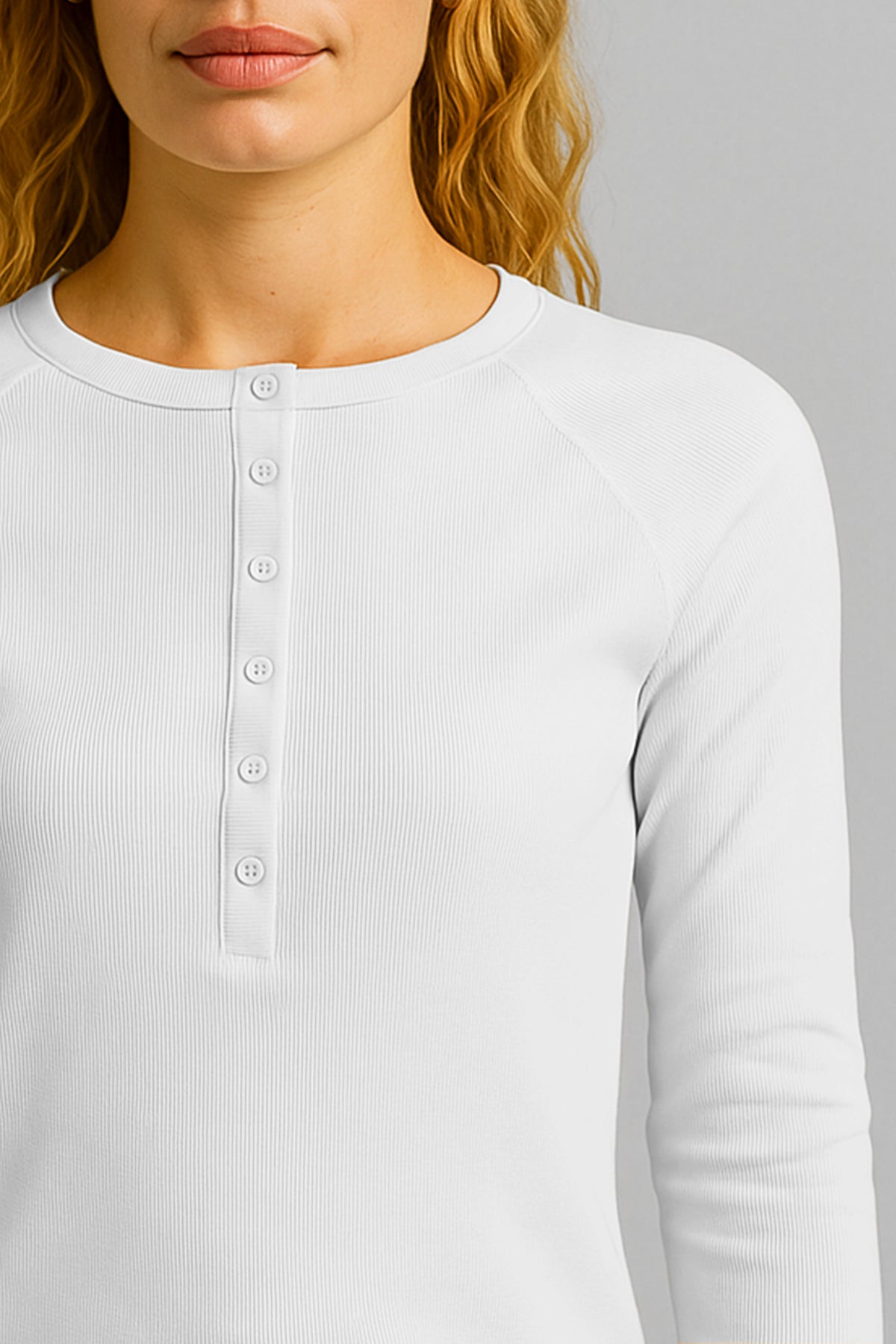 Kadın Basic Uzun Kollu Patlı Tişört - Beyaz