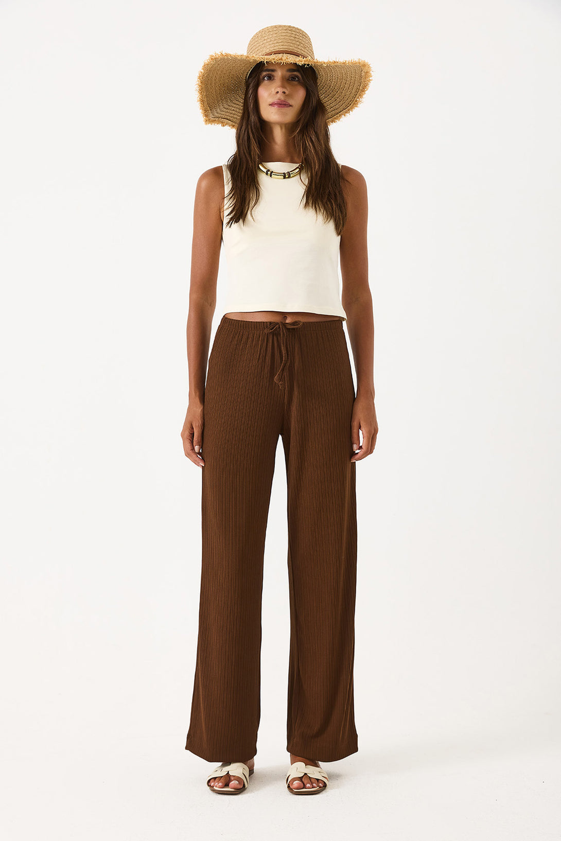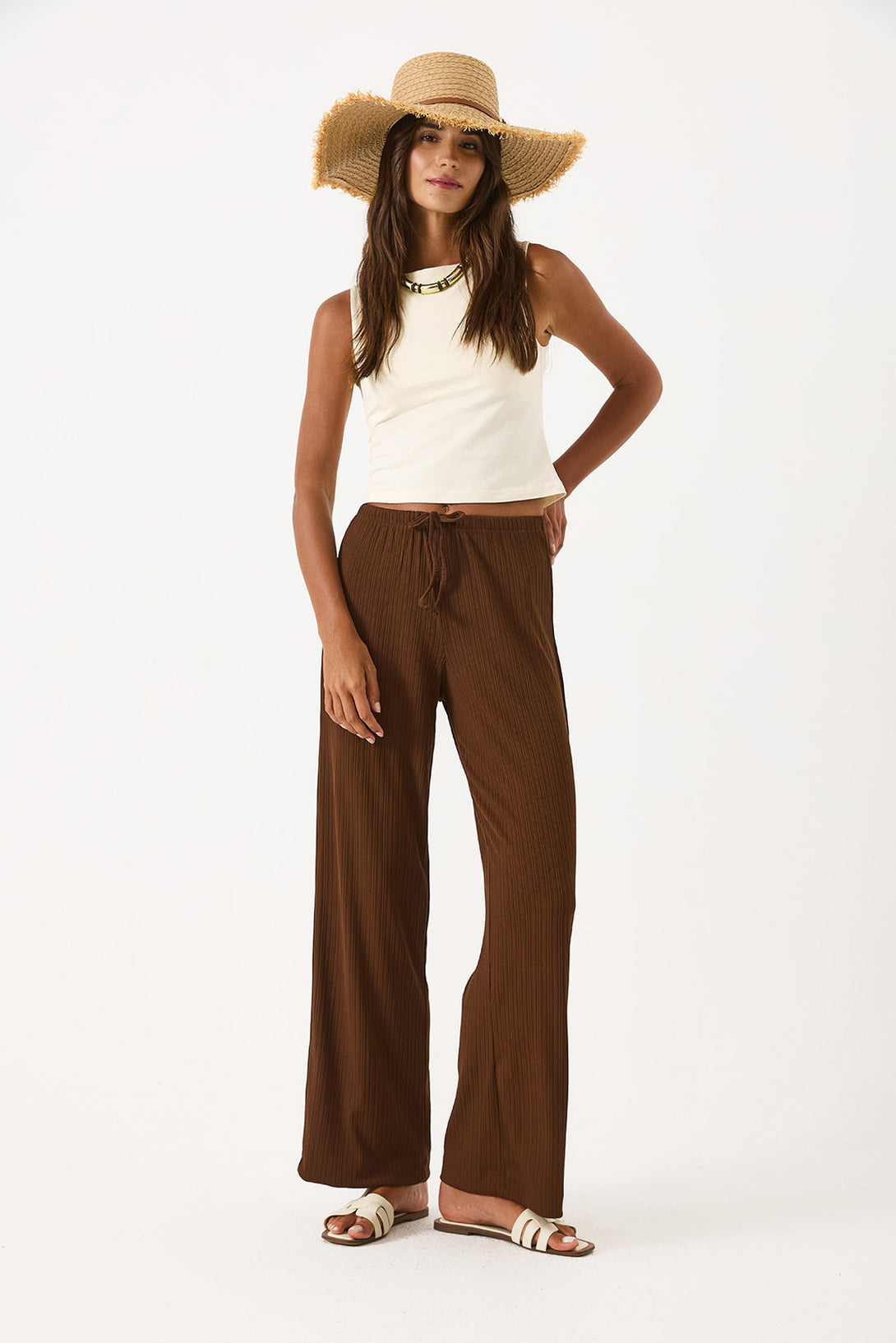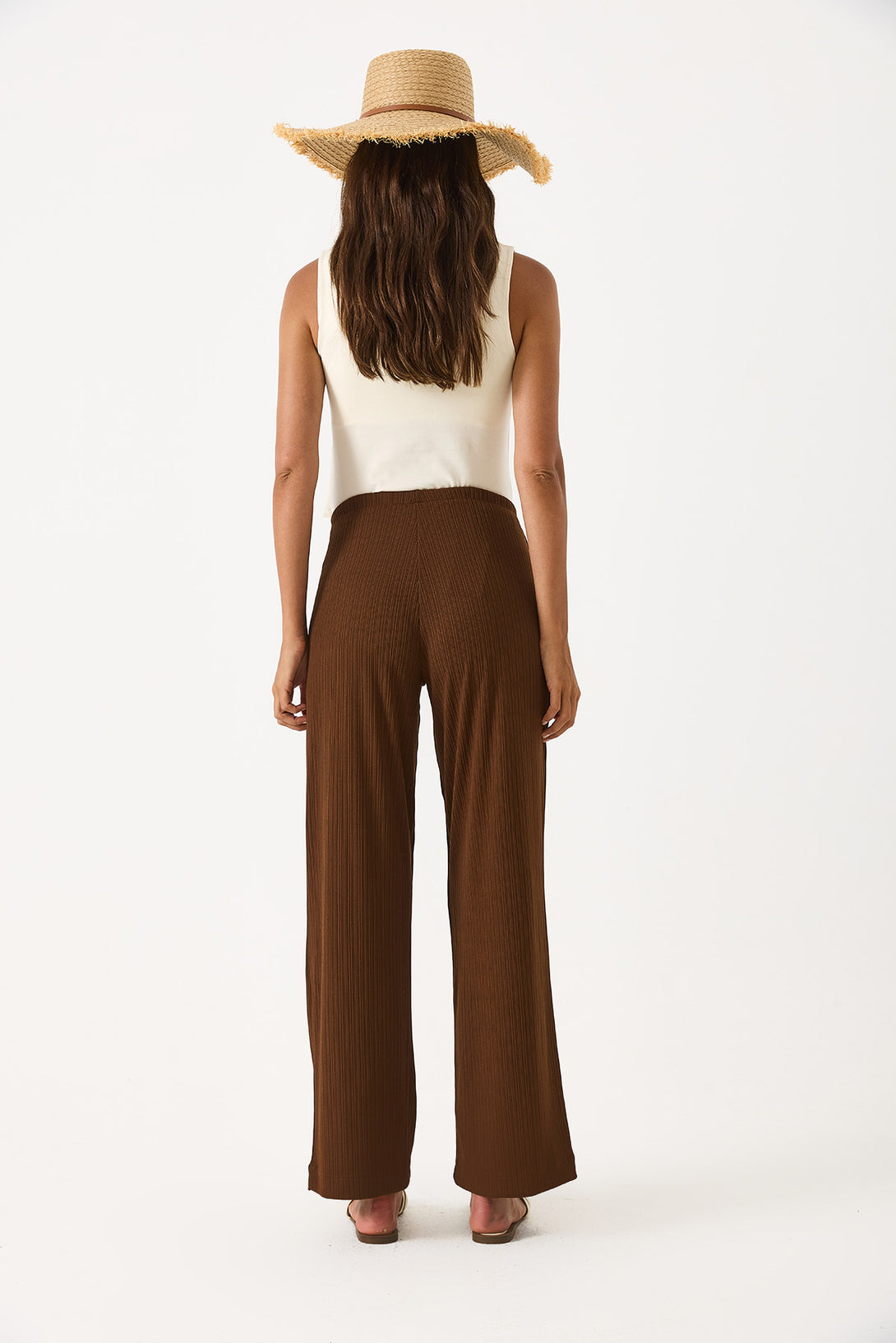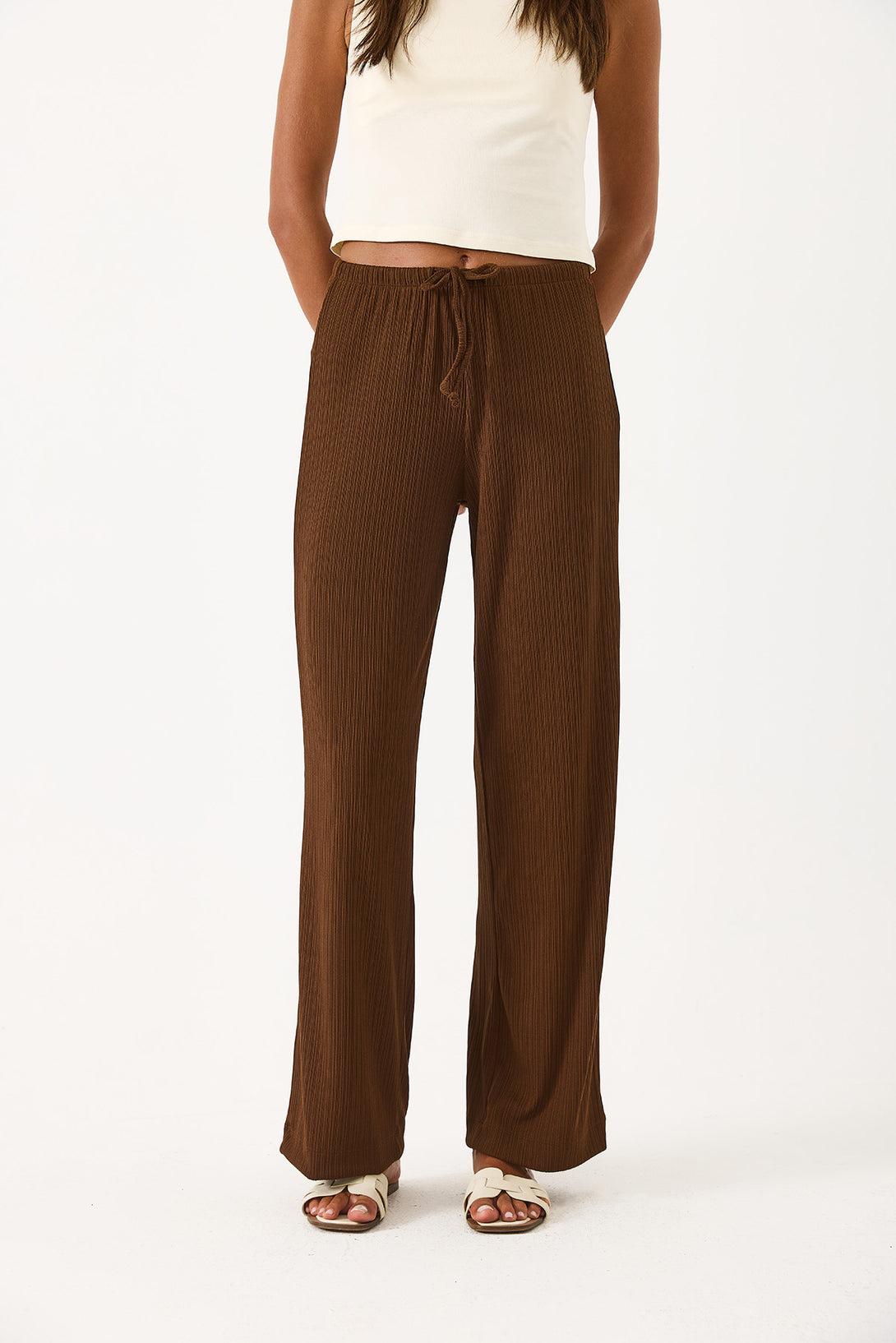 Kadın Beli Lastikli Geniş Paça Dökümlü Pantolon - KAHVERENGİ
