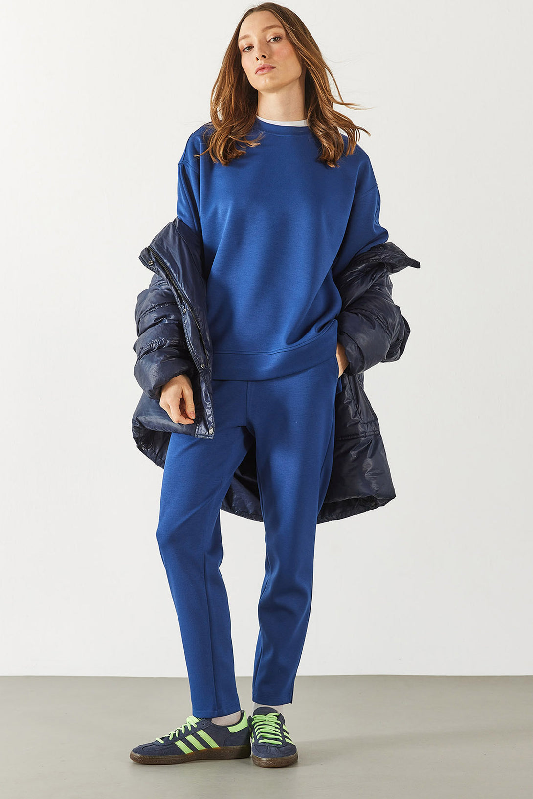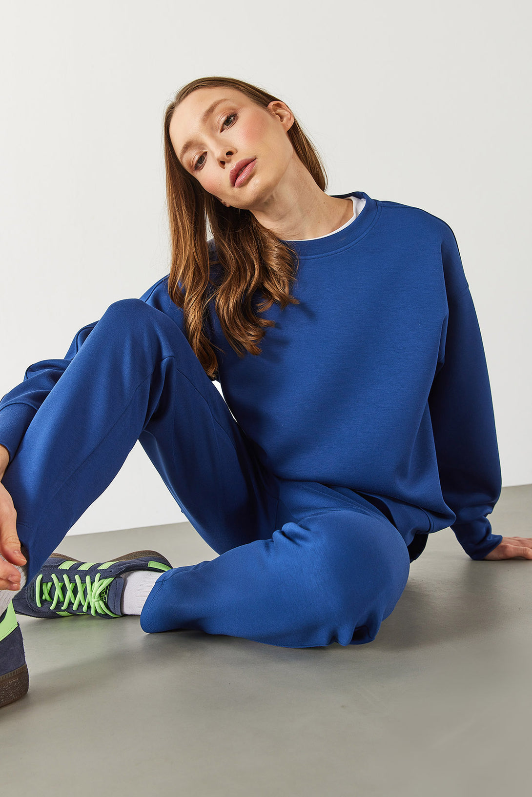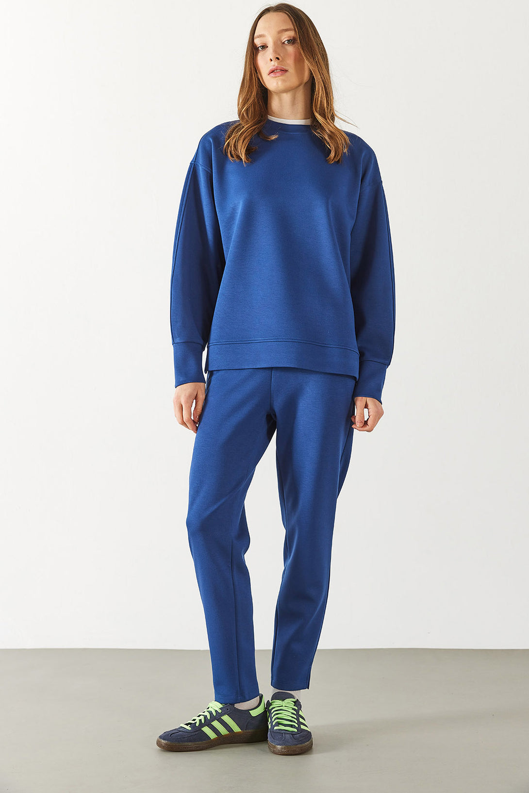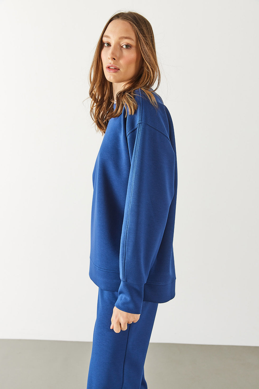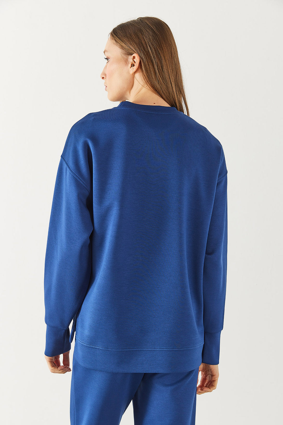 Kadın Bisiklet Yaka Yanı Yırtmaçlı Yumuşak Dokulu Sweatshirt (CUPRO) - NAVY
