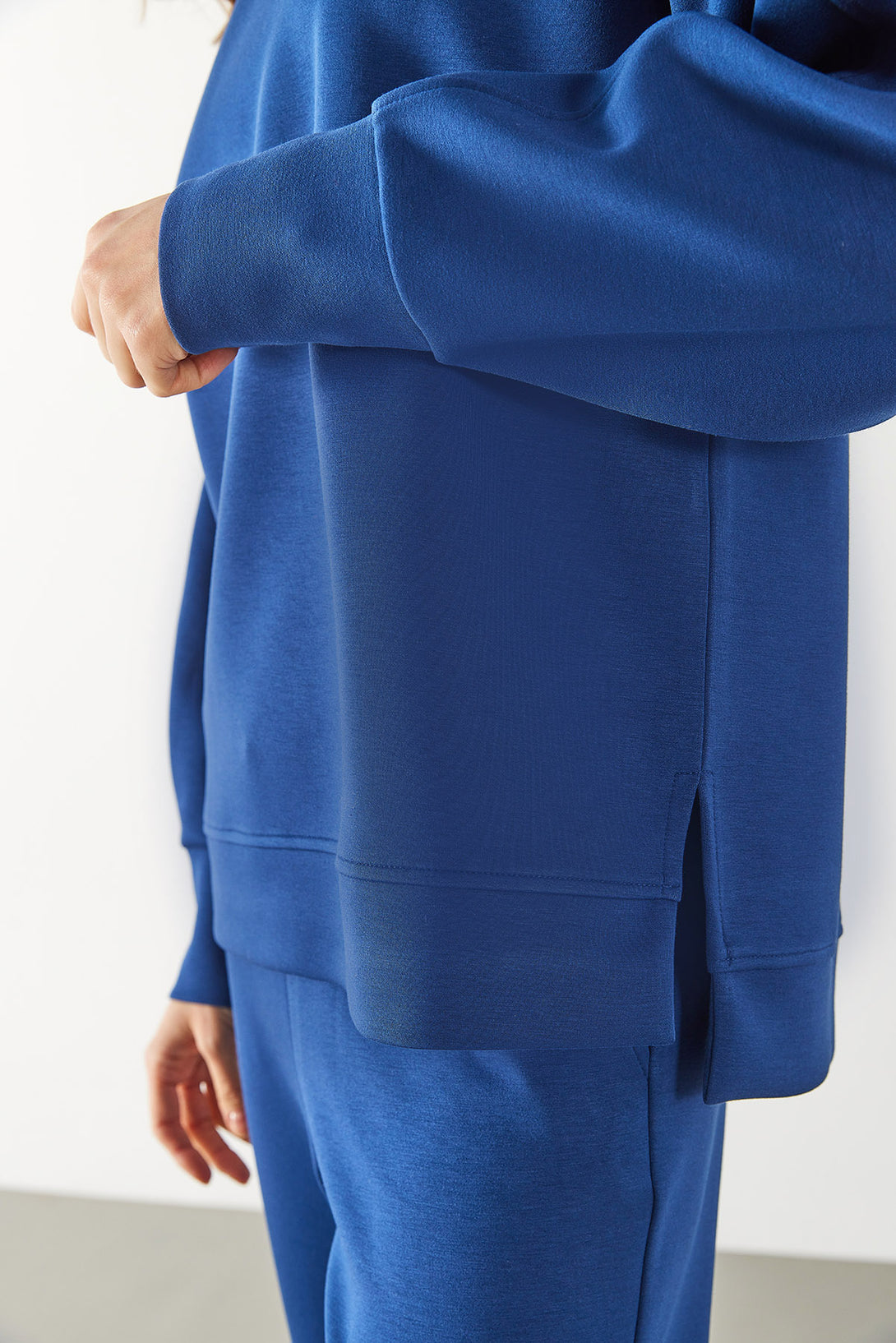 Kadın Bisiklet Yaka Yanı Yırtmaçlı Yumuşak Dokulu Sweatshirt (CUPRO)