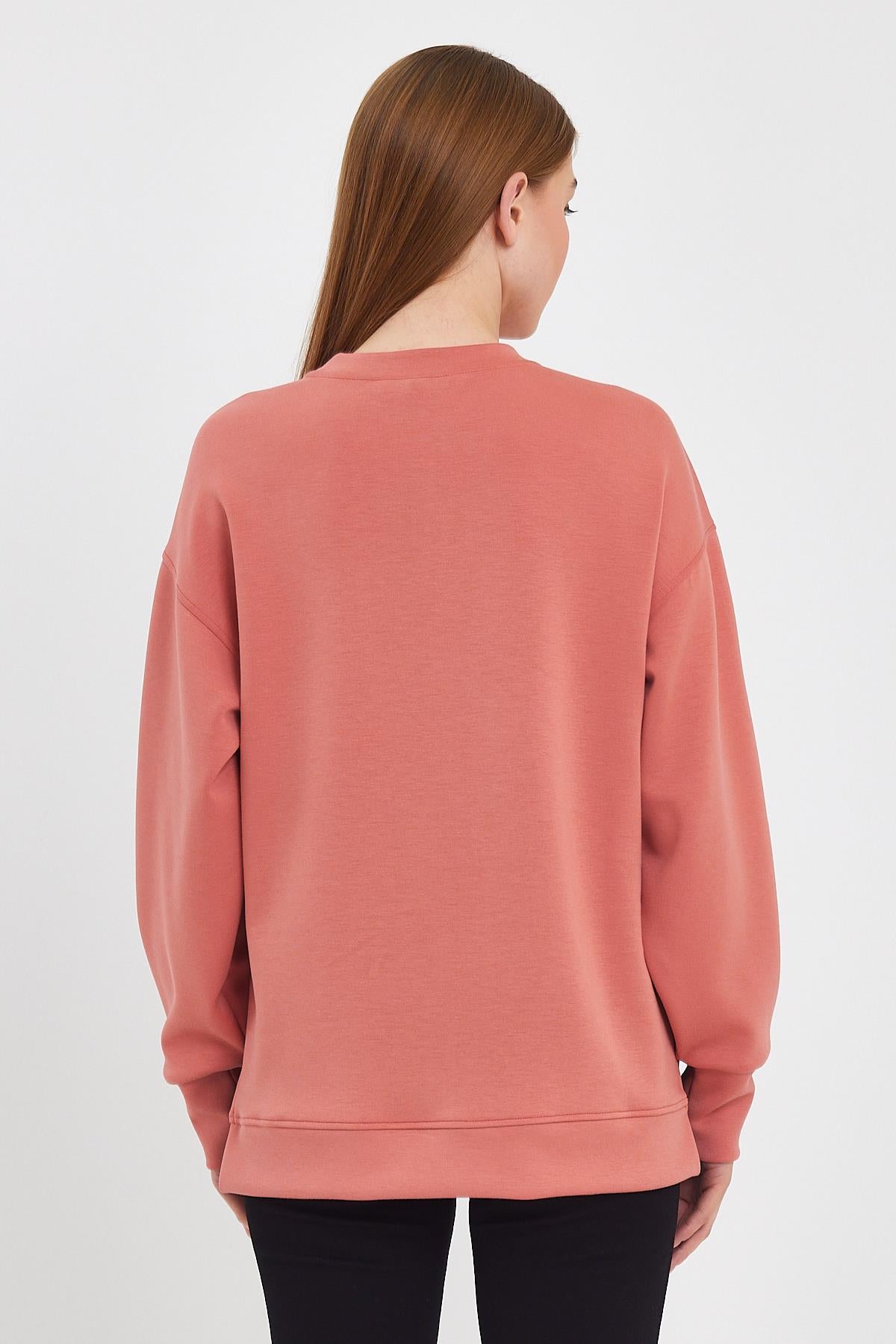 Kadın Bisiklet Yaka Yanı Yırtmaçlı Yumuşak Dokulu Sweatshirt (CUPRO) - Somon