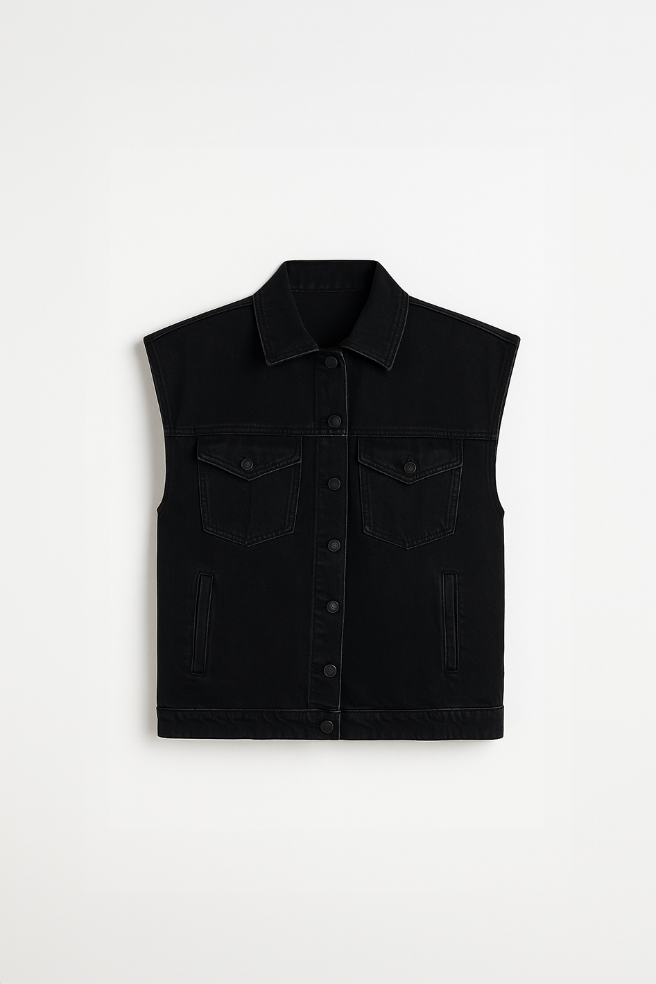 Kadın Black Oversize Jean Yelek %100 Pamuk - Black