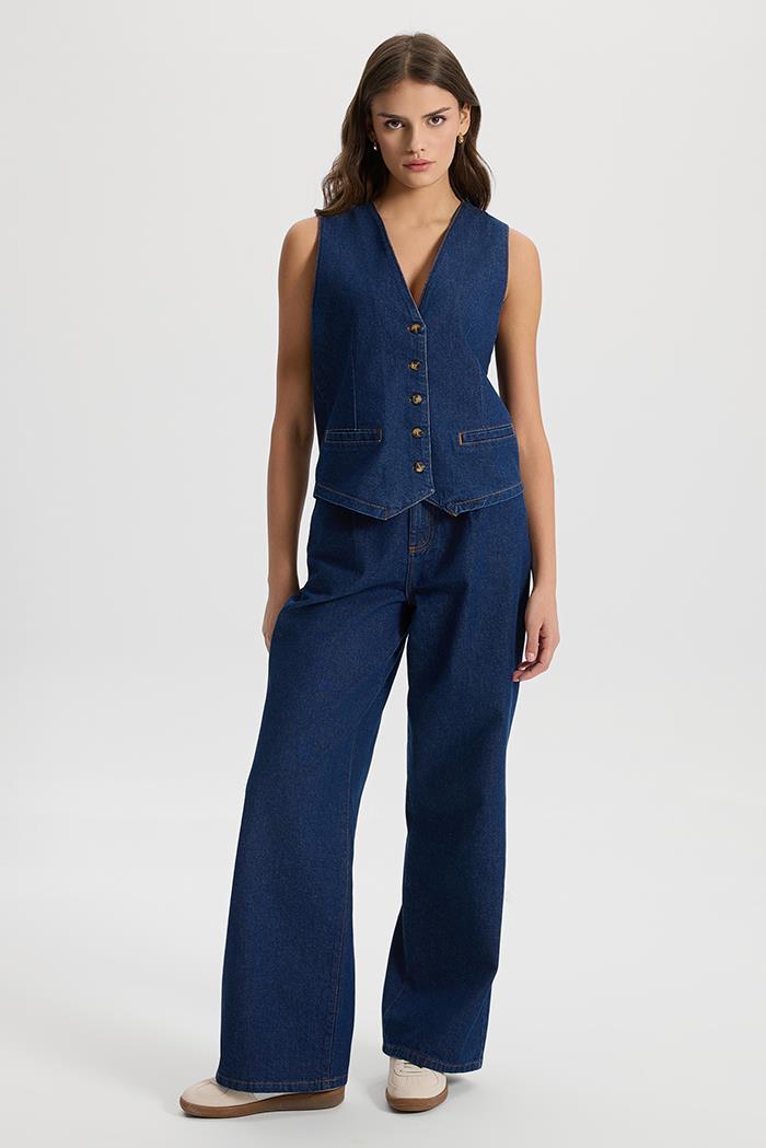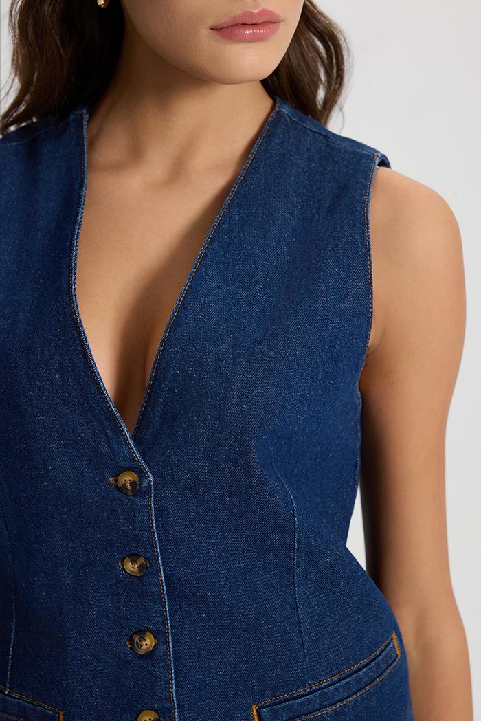 Kadın Dark Blue Jean Yelek %100 Pamuk - Dark Blue