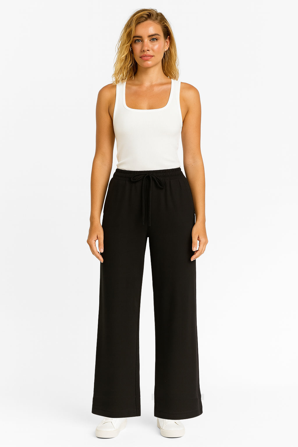 Kadın Geniş Paça Yumuşak Dokulu Pike Pantolon (CUPRO) - Siyah