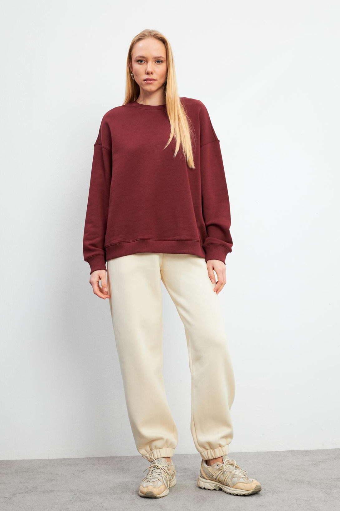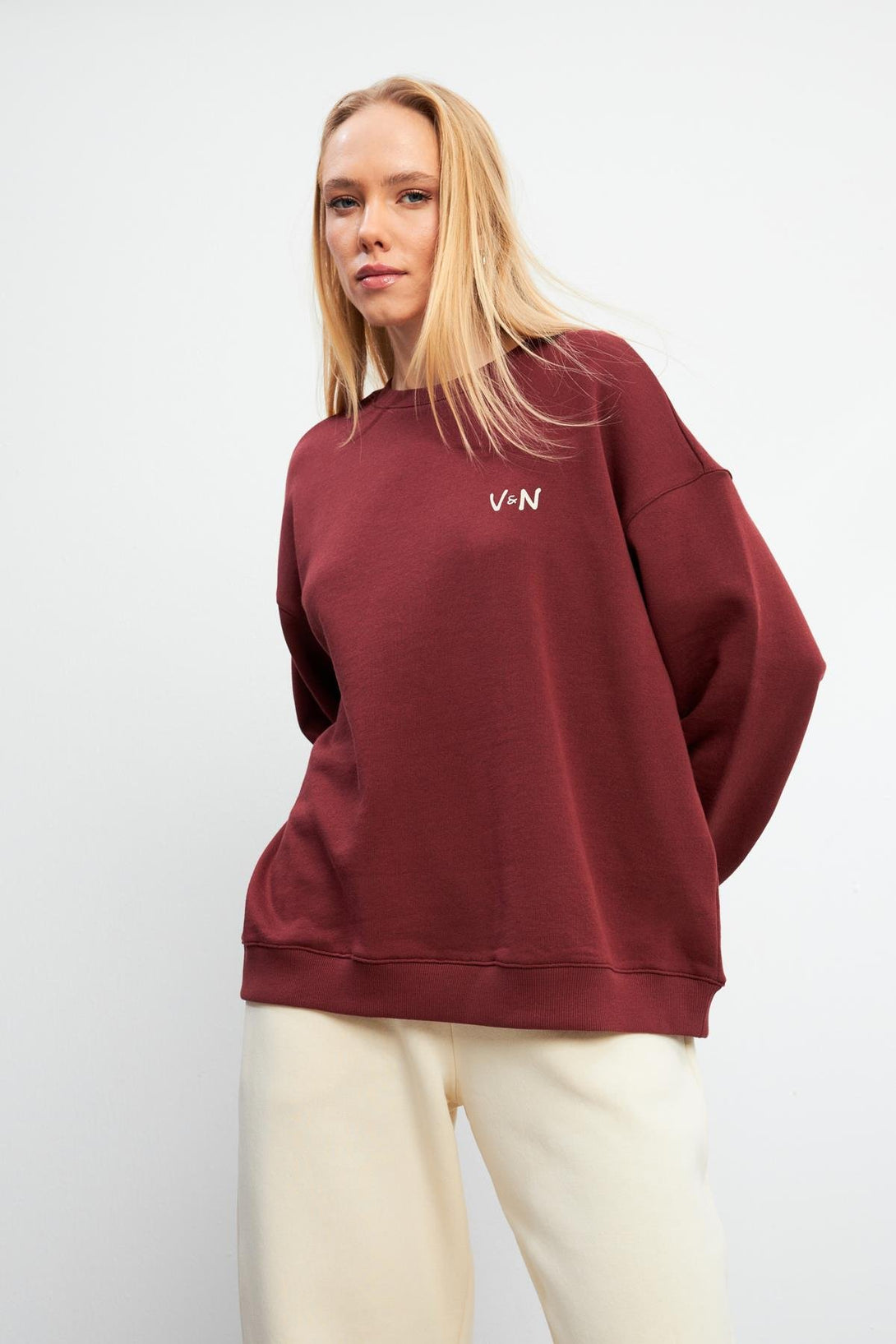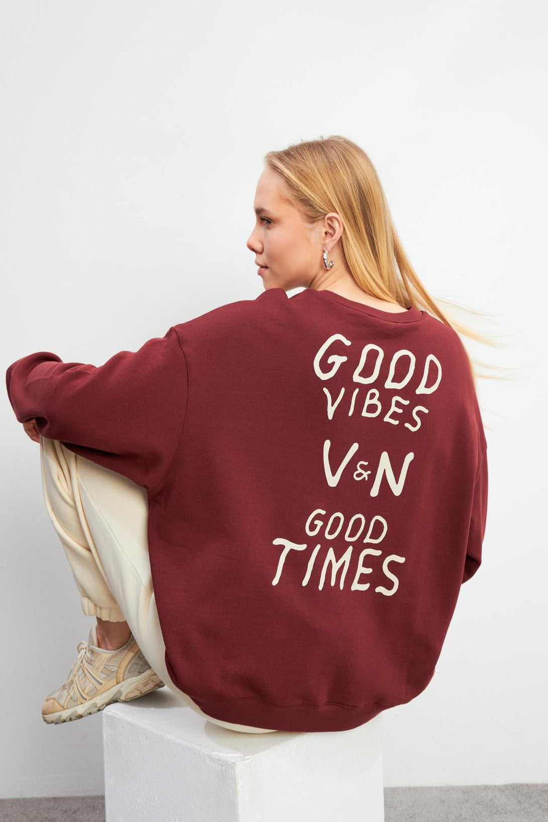 Kadın Good Wibes Kestane Baskılı Sweatshirt