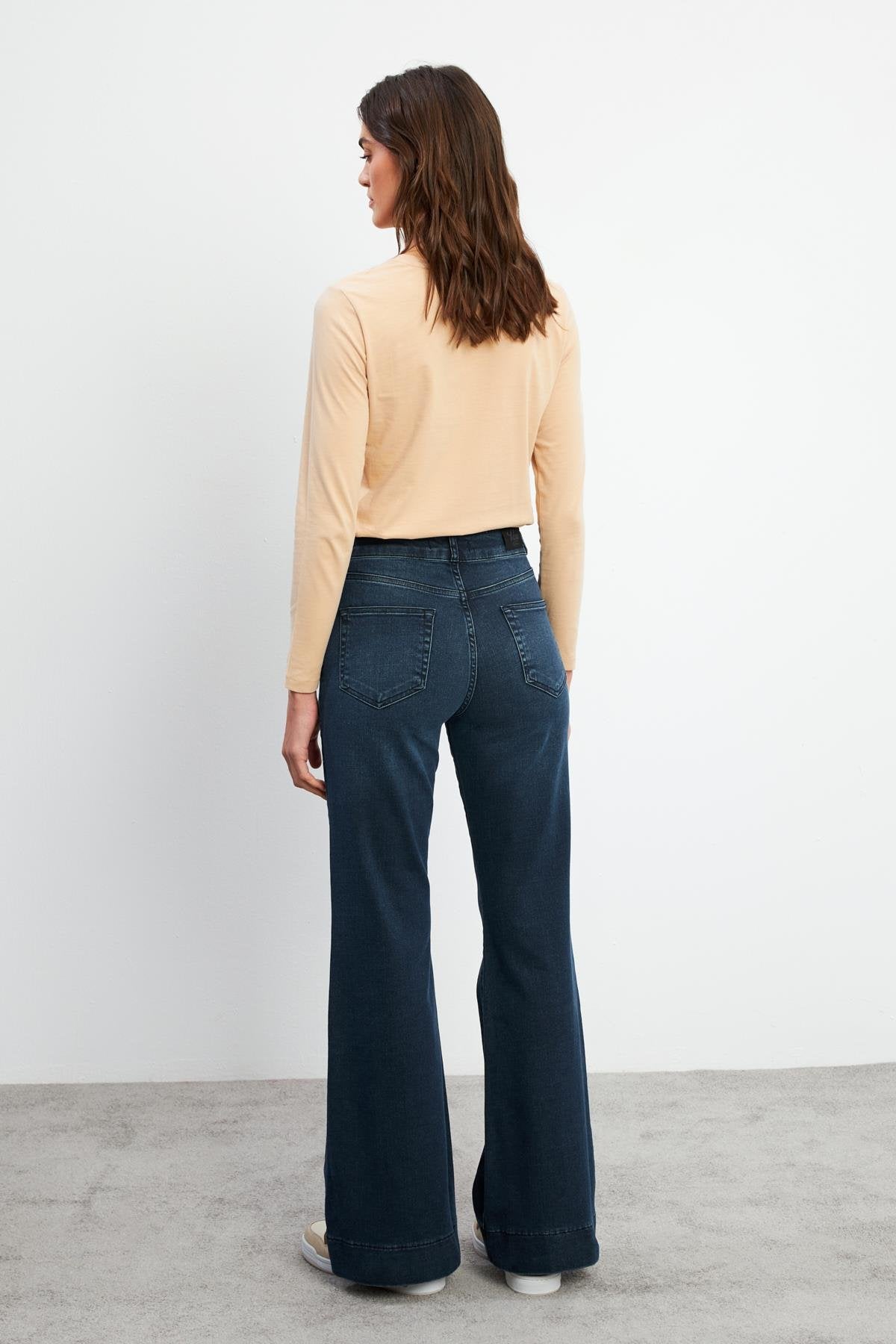 Kadın Jennifer İspanyol Paça Yüksek Bel Deep Dark Blue Jean Pantolon - Deep Dark Blue