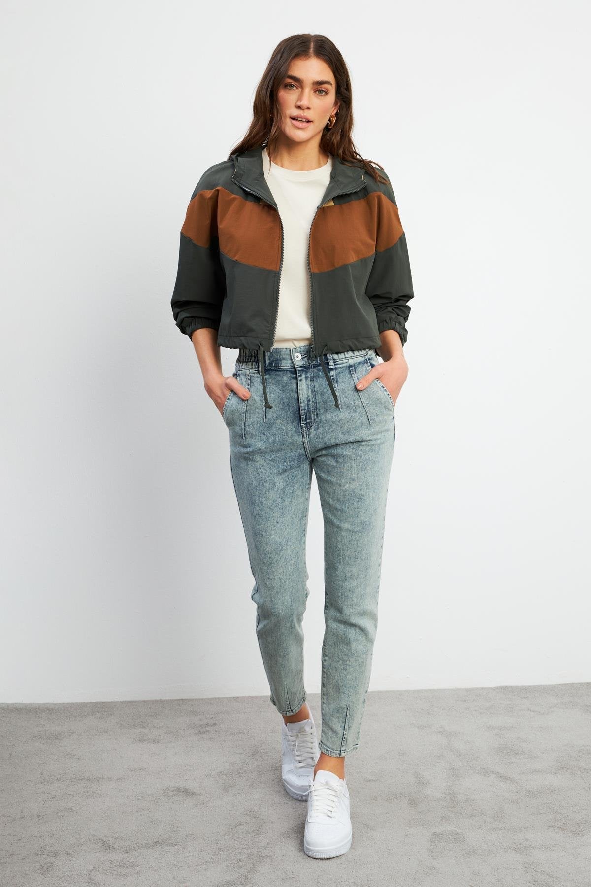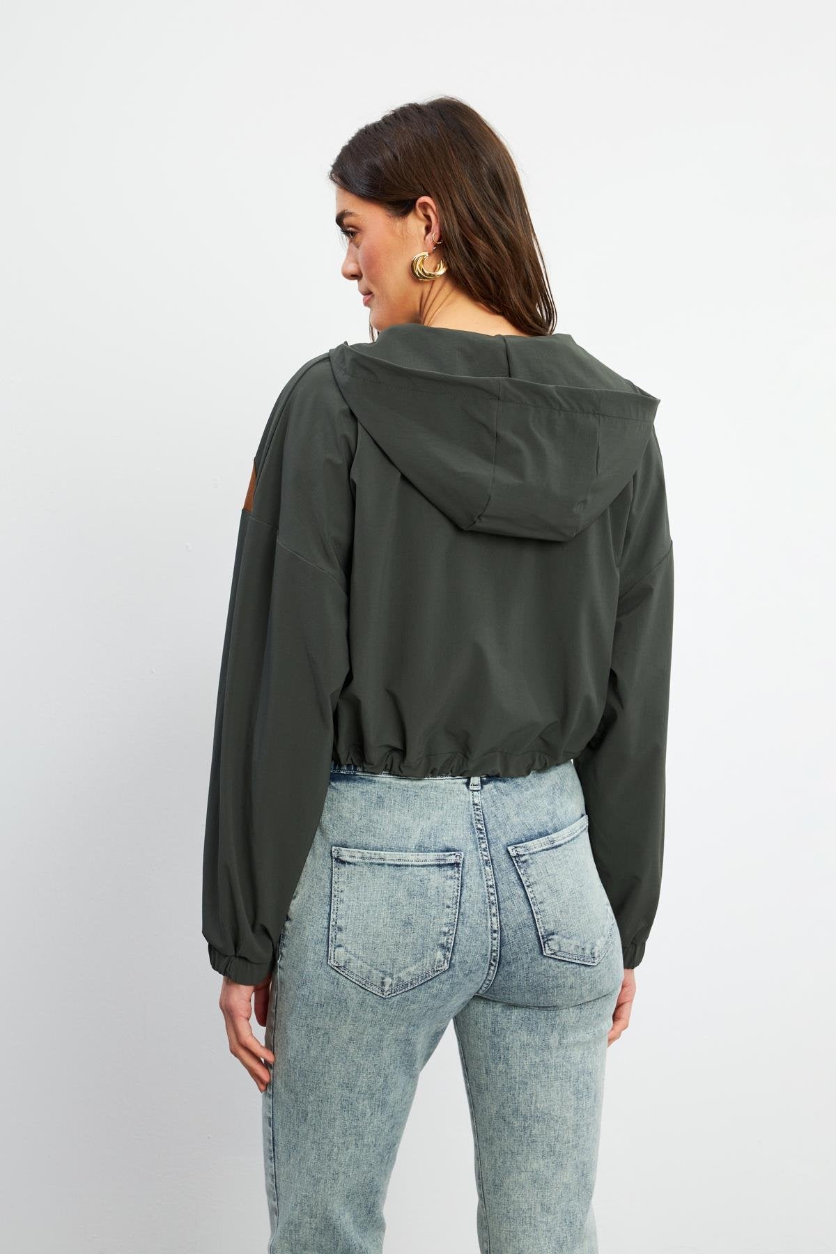 Kadın Lilian Kapüşonlu Fermuarlı Paraşüt Sweatshirt - Haki