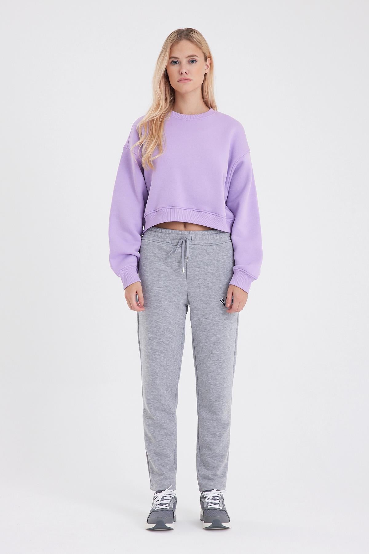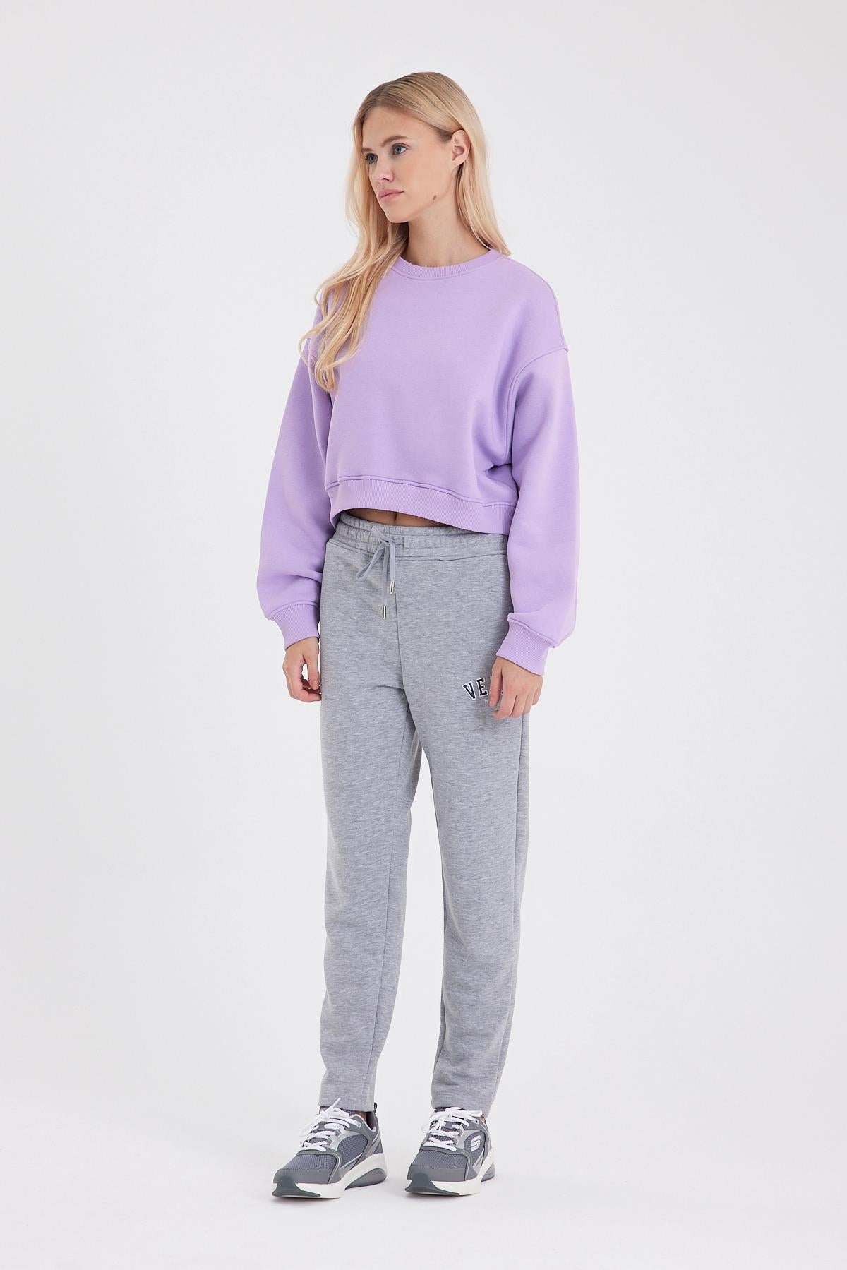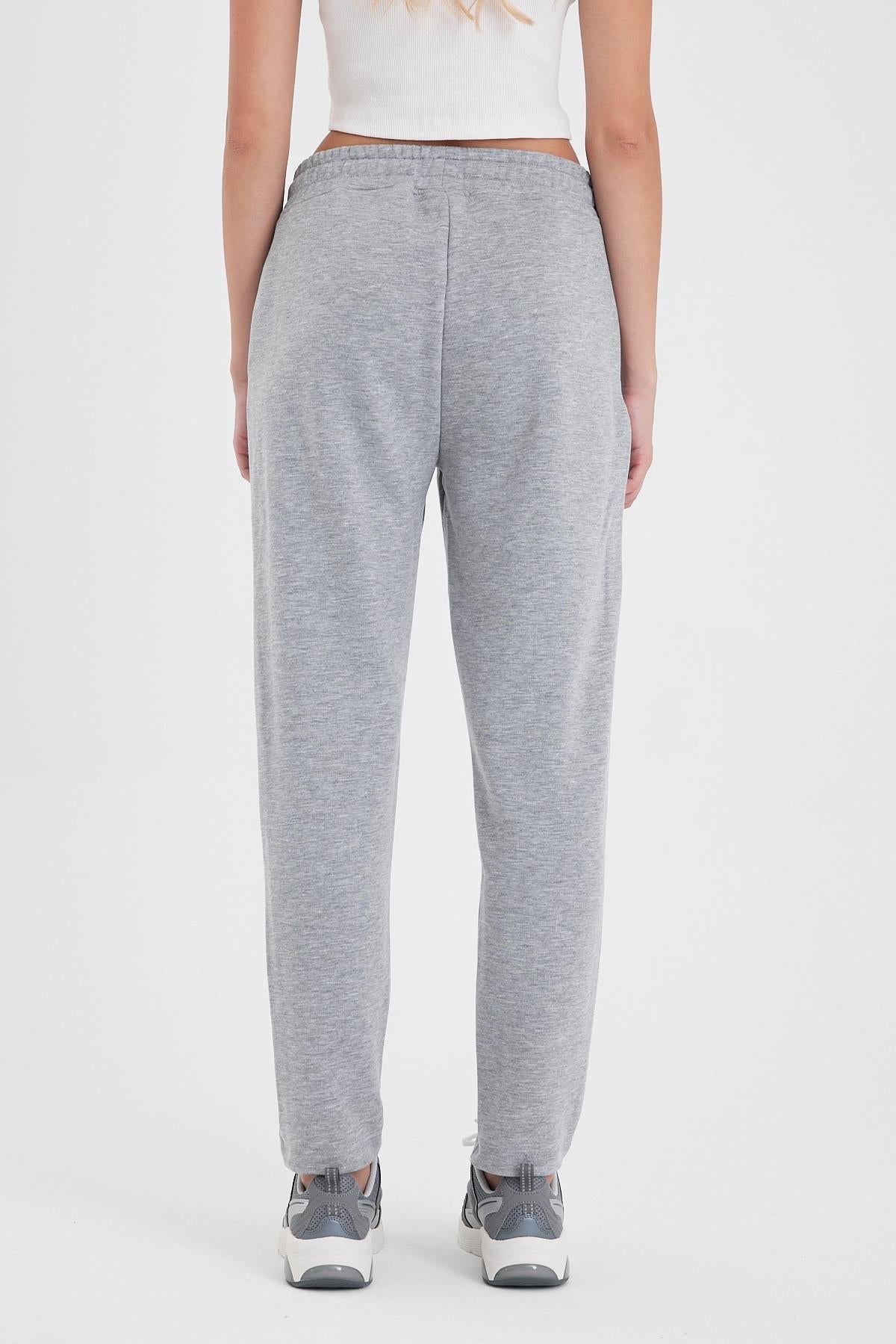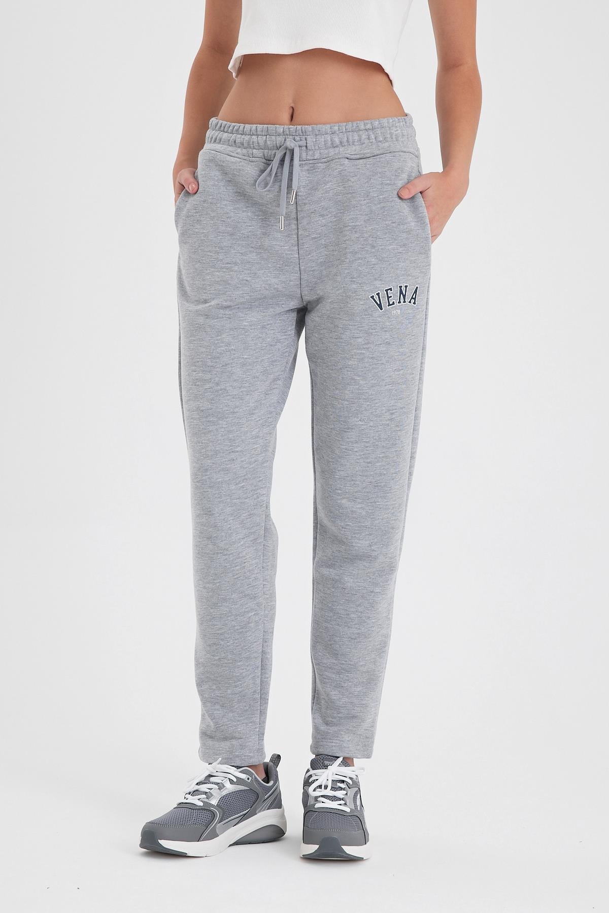 Kadın Logo Baskılı Regular Fit Pamuklu Eşofman Altı - Gri Melanj