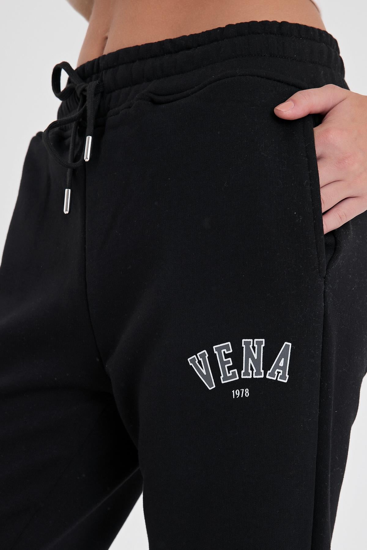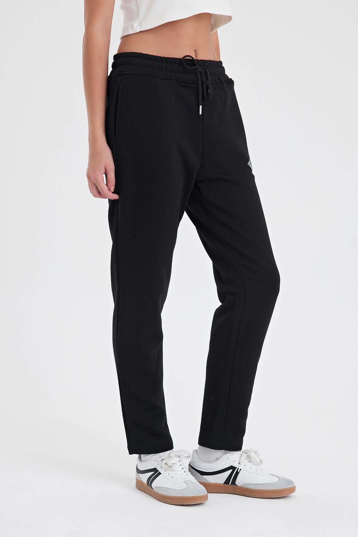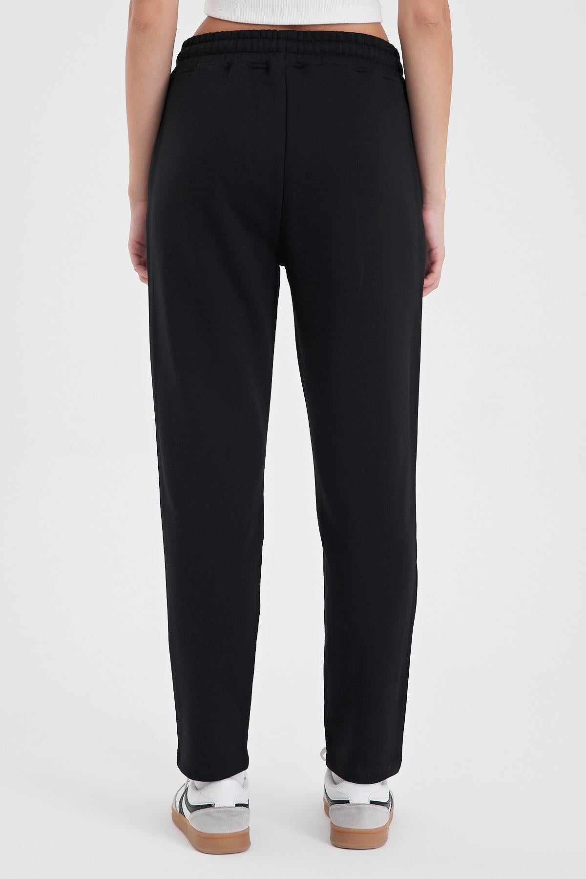 Kadın Logo Baskılı Regular Fit Pamuklu Eşofman Altı - Siyah