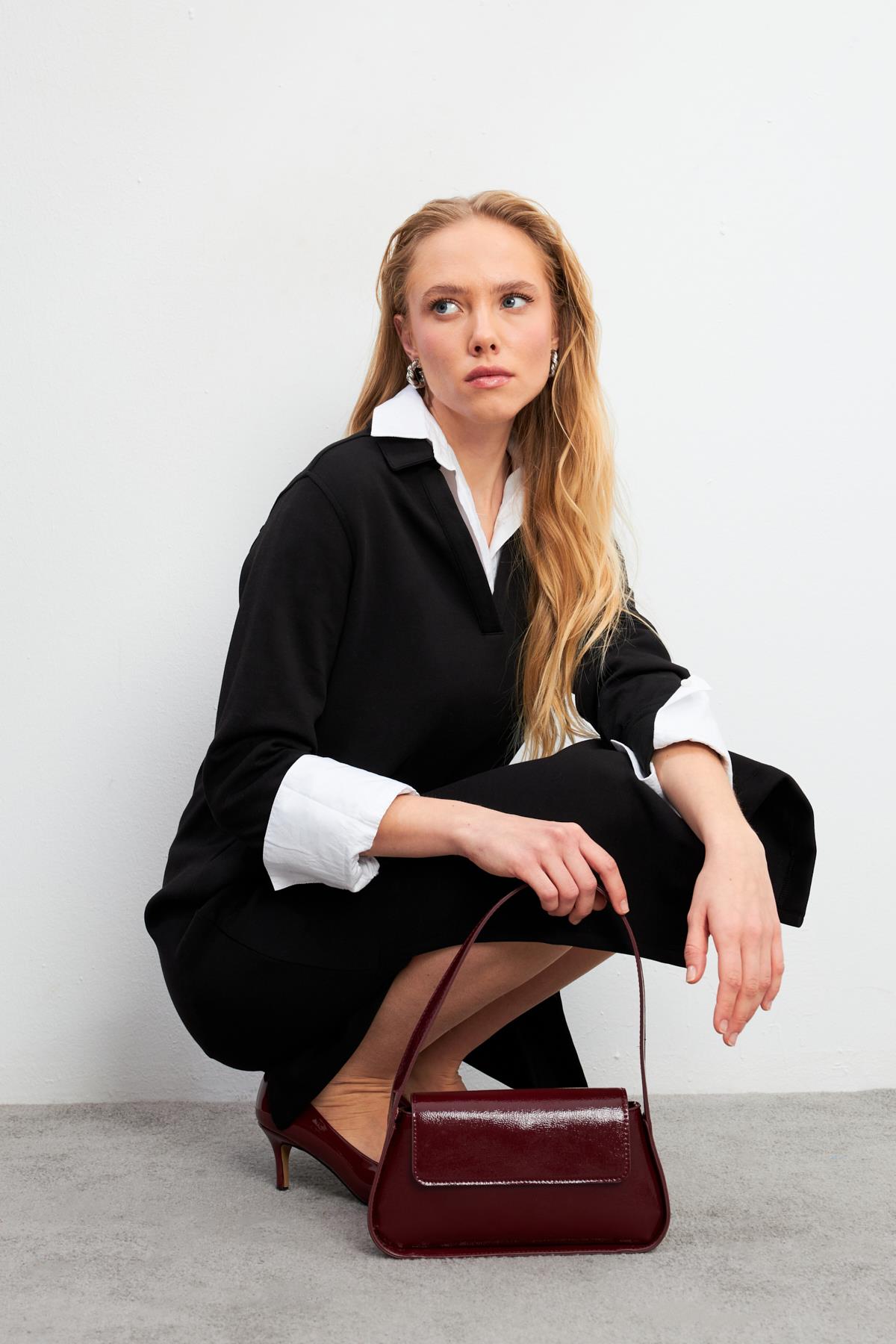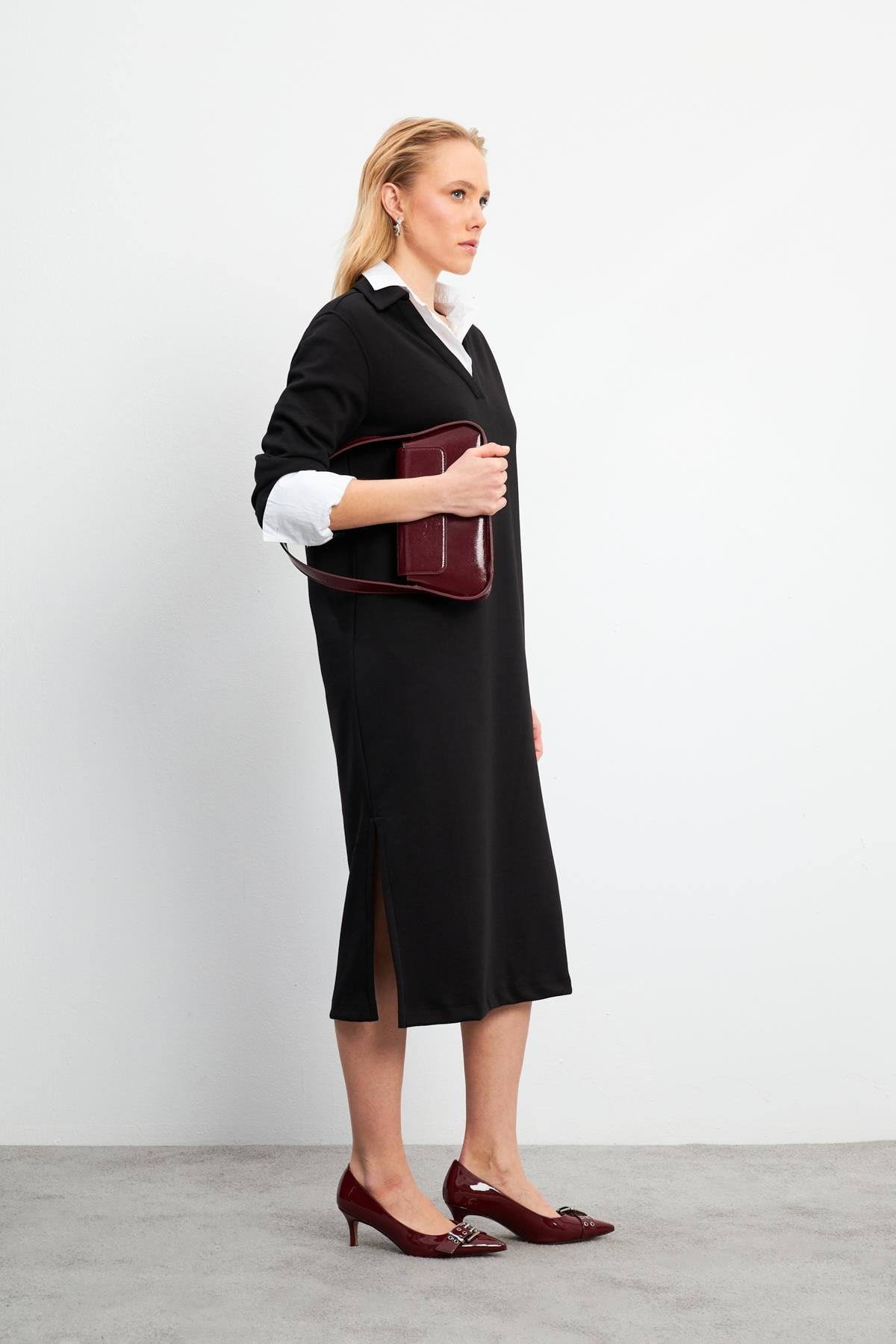 Kadın Marine Uzun Kollu İnterlok Elbise - Siyah