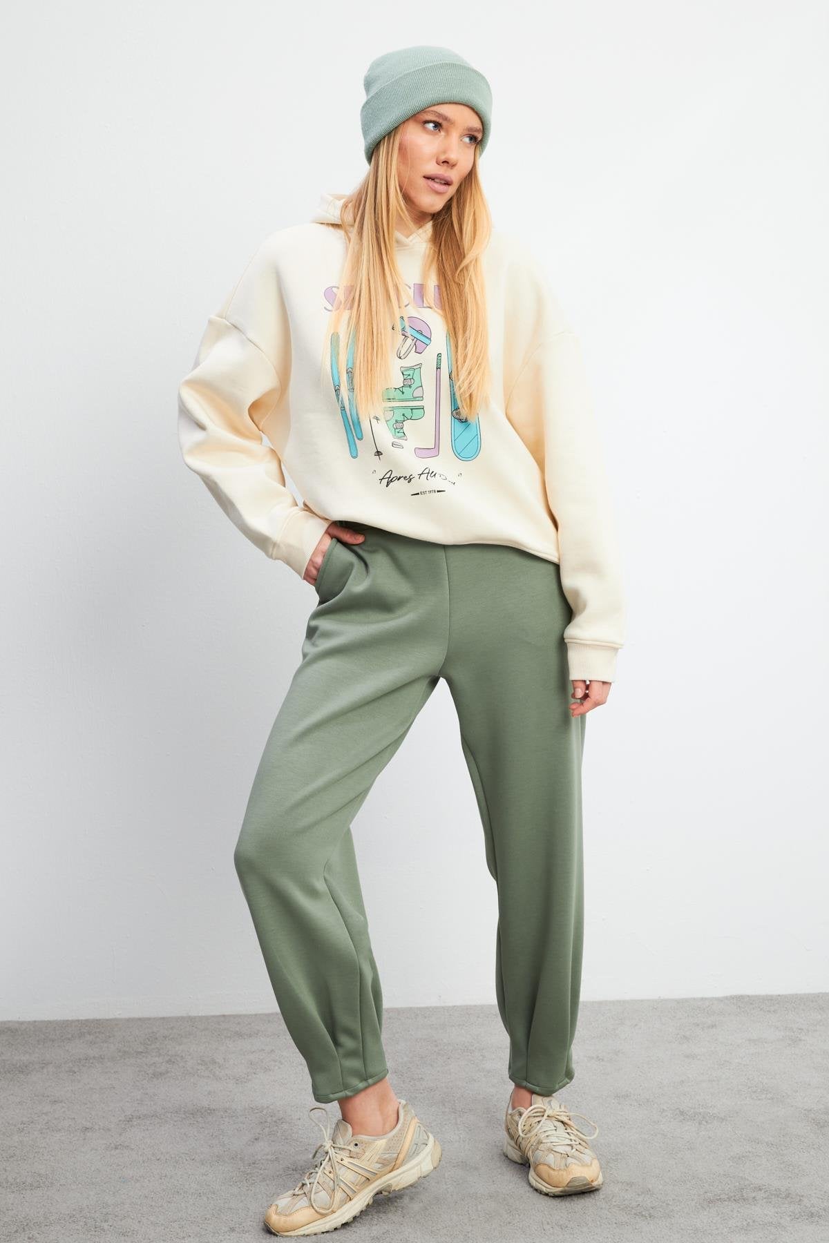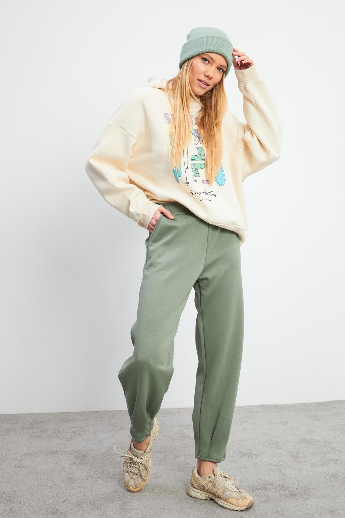 Kadın Mary Regular Fit Paçası Detaylı Yumuşak Dokulu Jogging Pantolon (CUPRO) - Ada Çayı