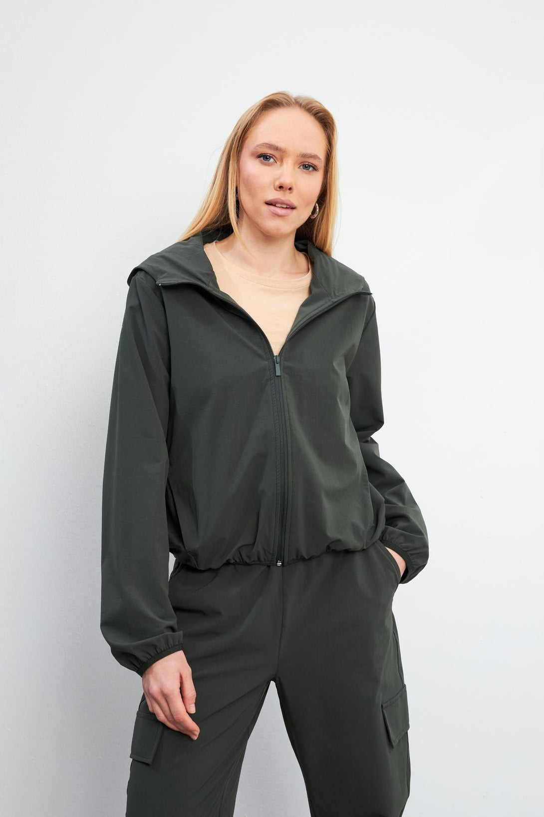 Kadın Mary Haki Kapüşonlu Paraşüt Ceket