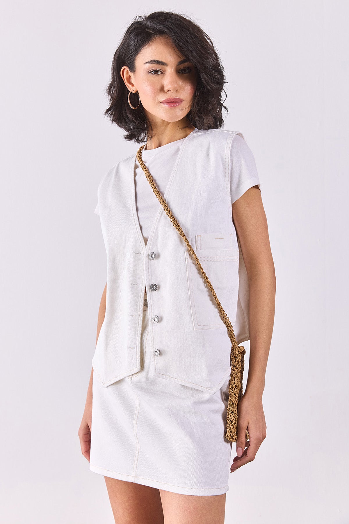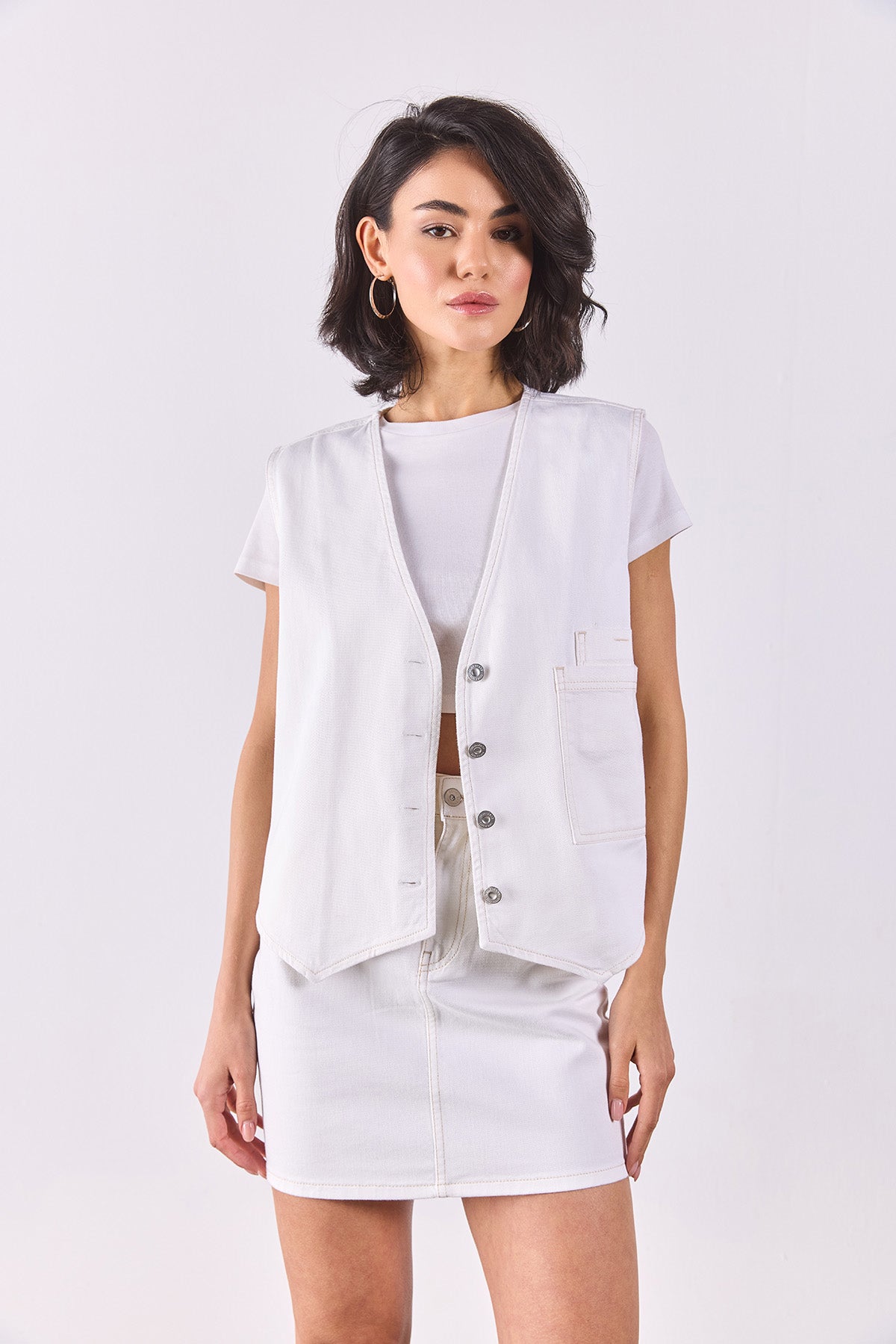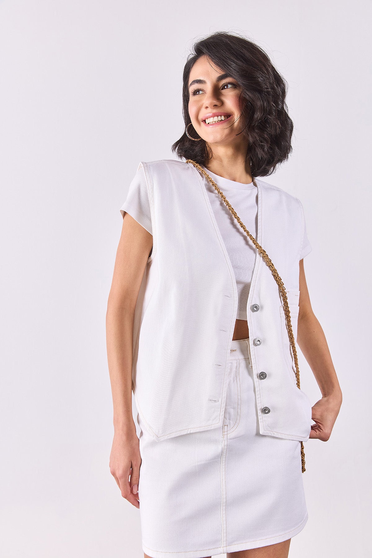 Kadın Oversize Renkli Jean Yelek - Beyaz