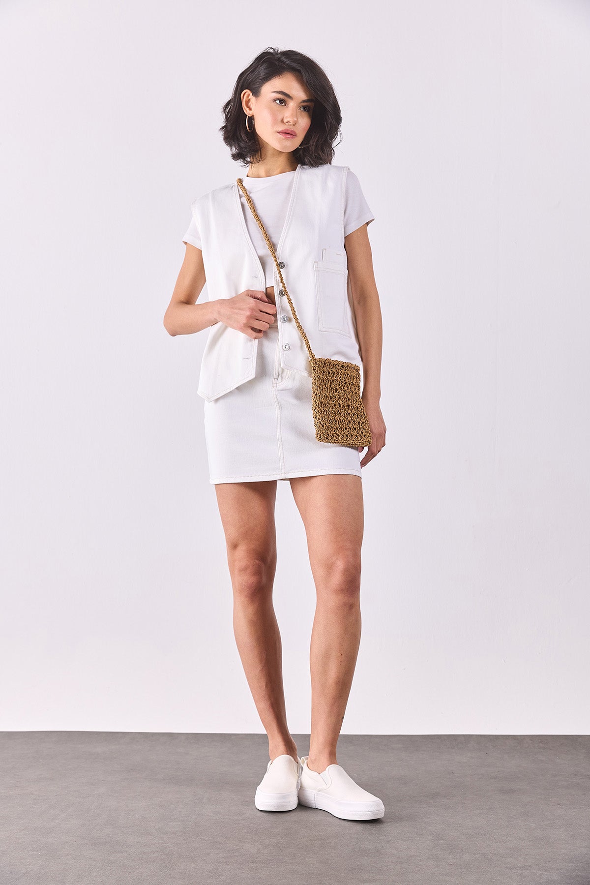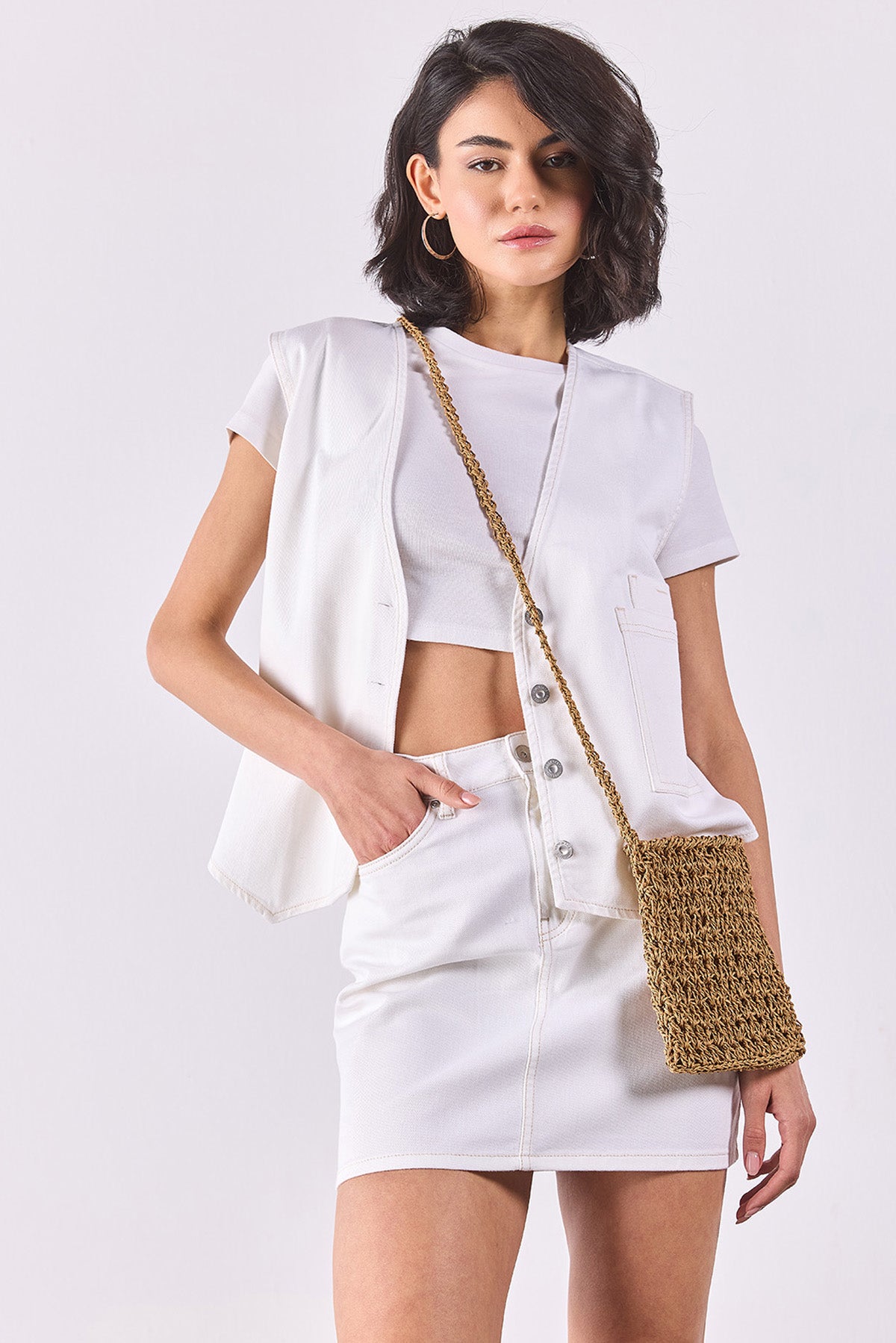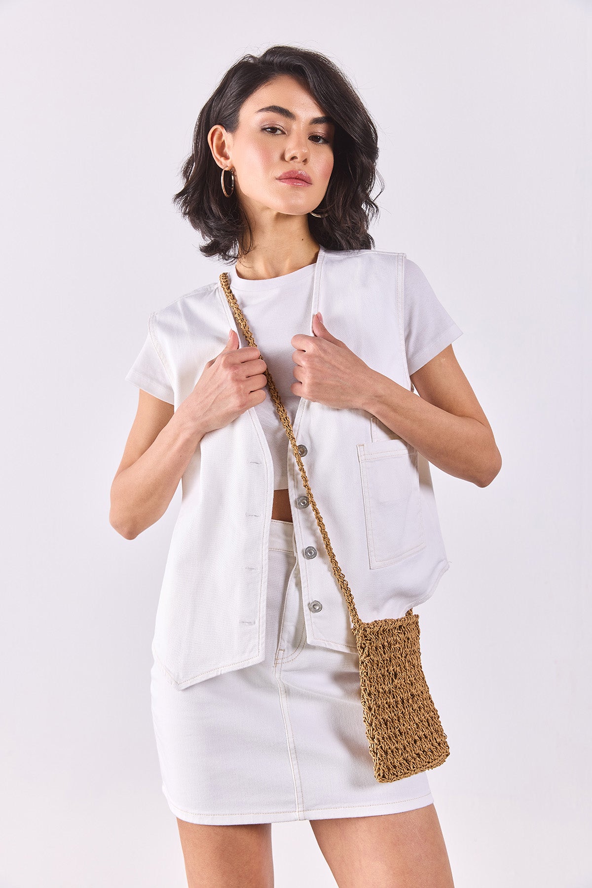 Kadın Oversize Renkli Jean Yelek - Beyaz
