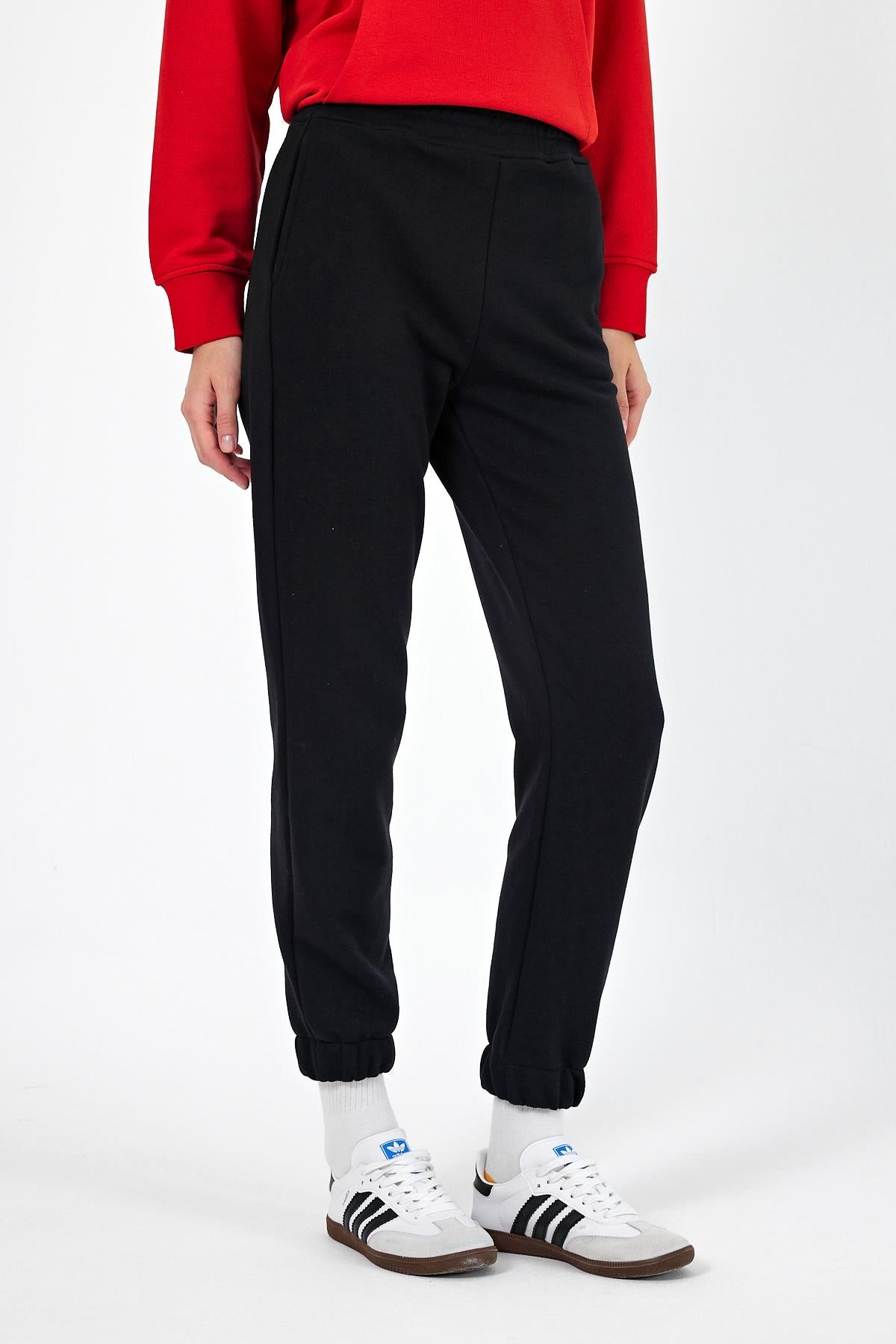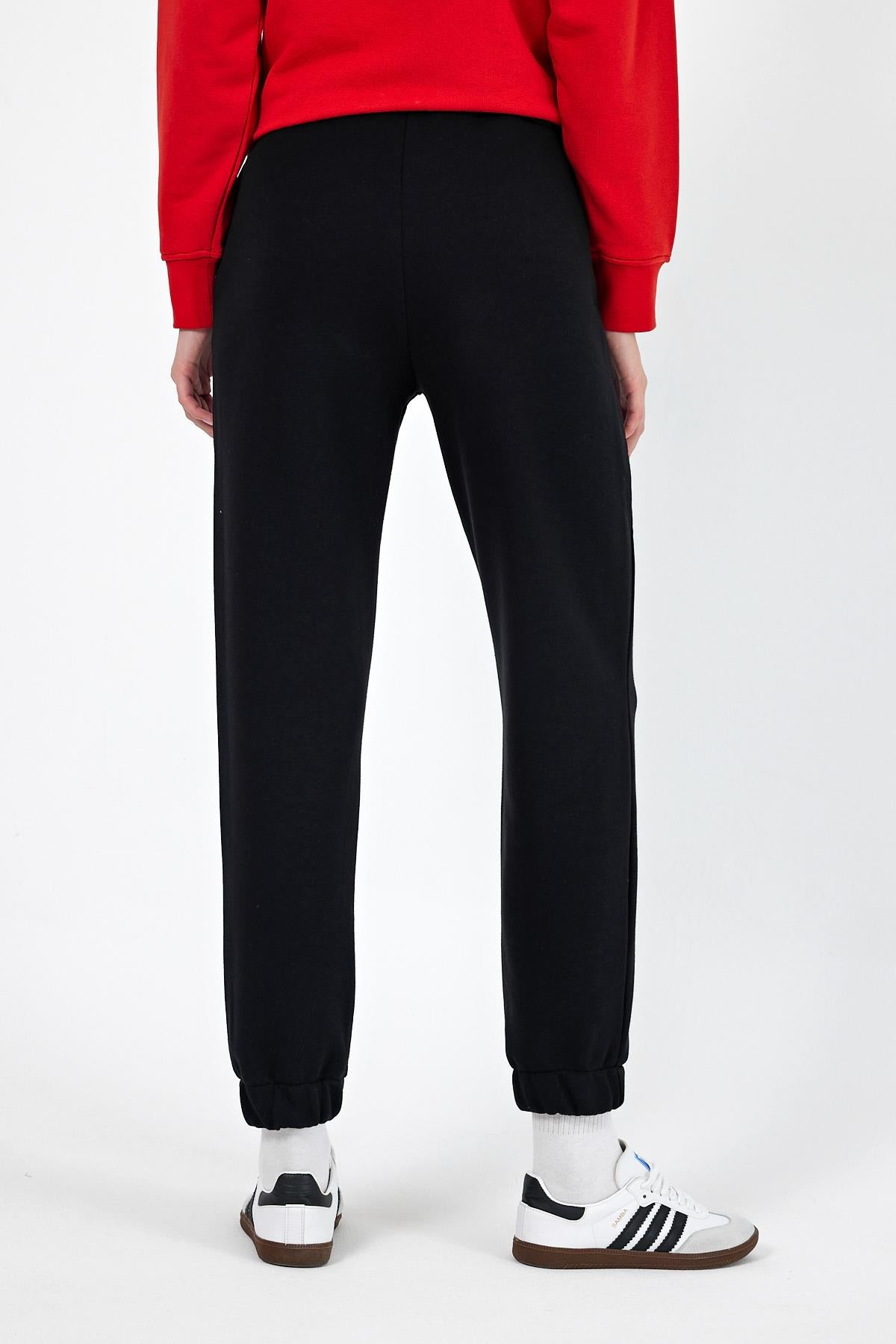 Kadın Paçası Lastikli Regular Fit Basic Eşofman Altı - Siyah