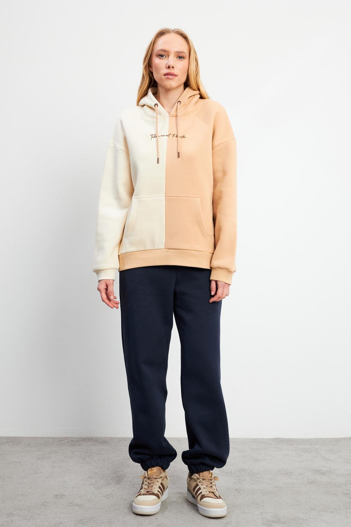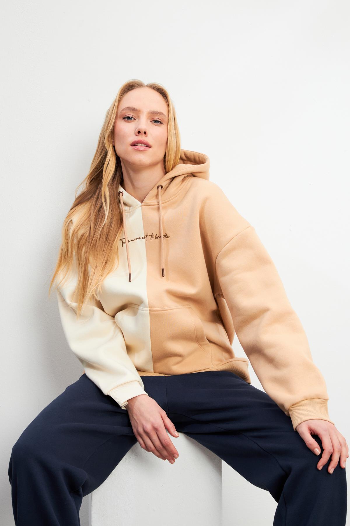 Kadın Parçalı Oversize Sweatshirt - Kemik - Bej