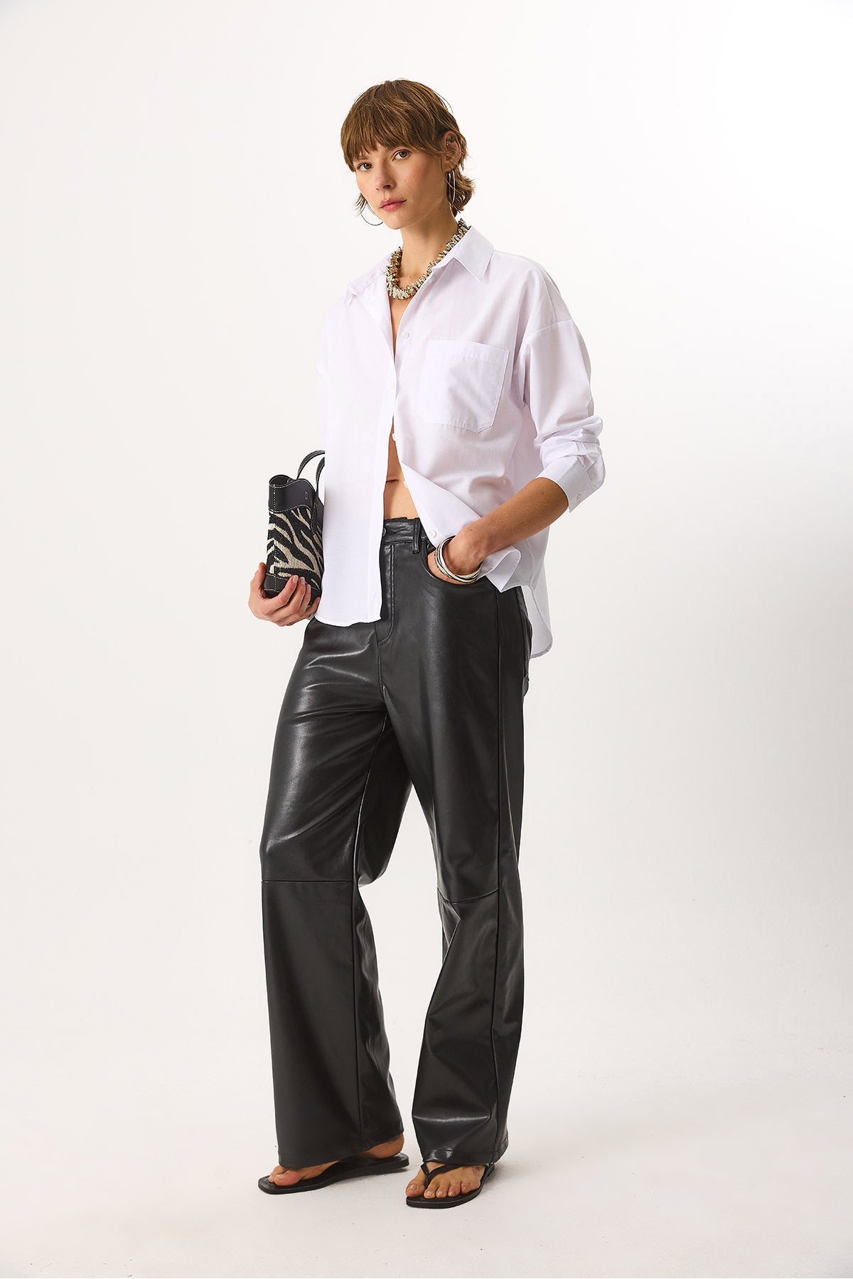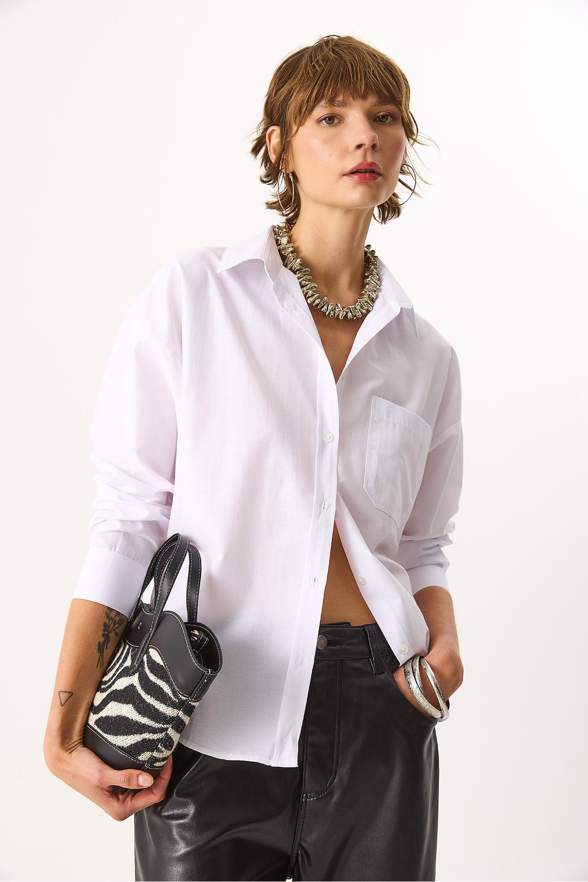 Kadın Regular Fit Cepli Poplin Gömlek %100 Pamuk - Beyaz