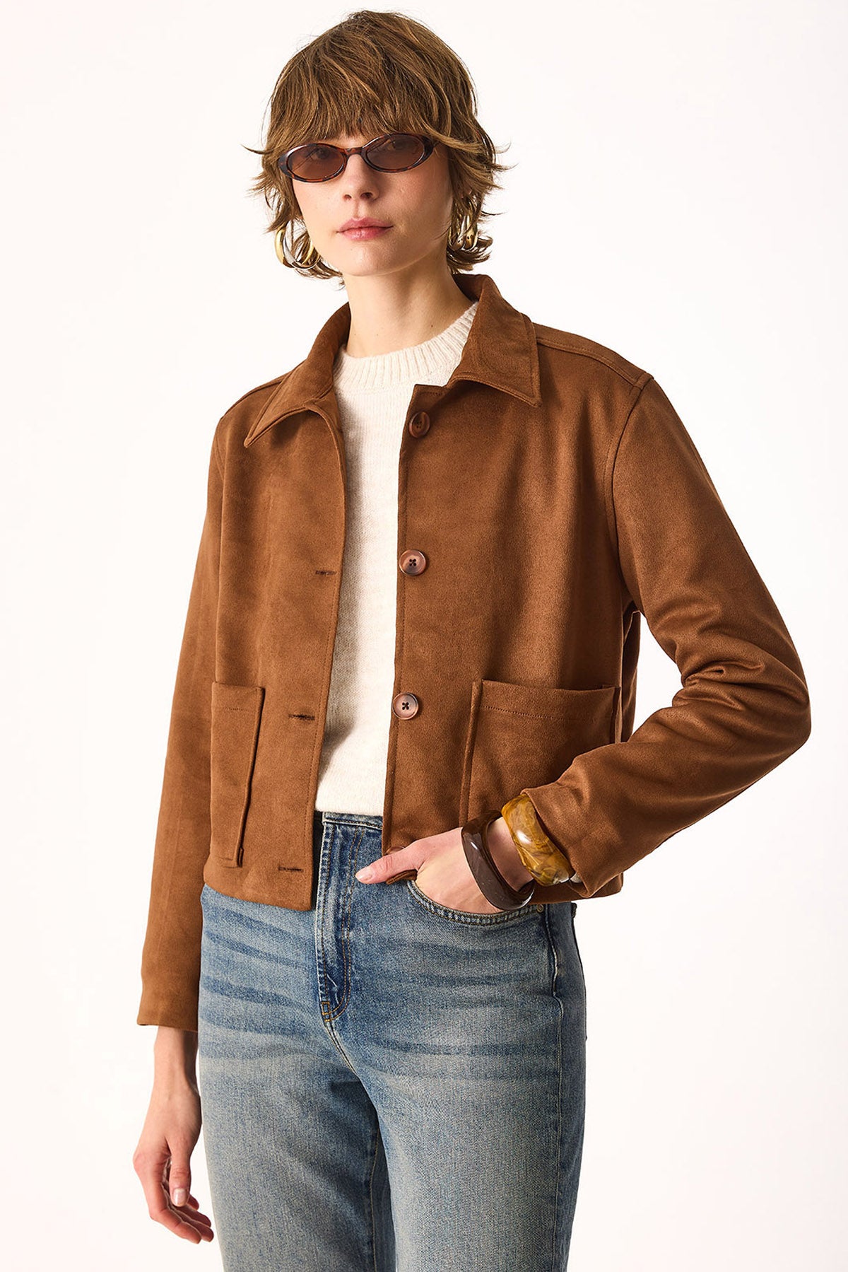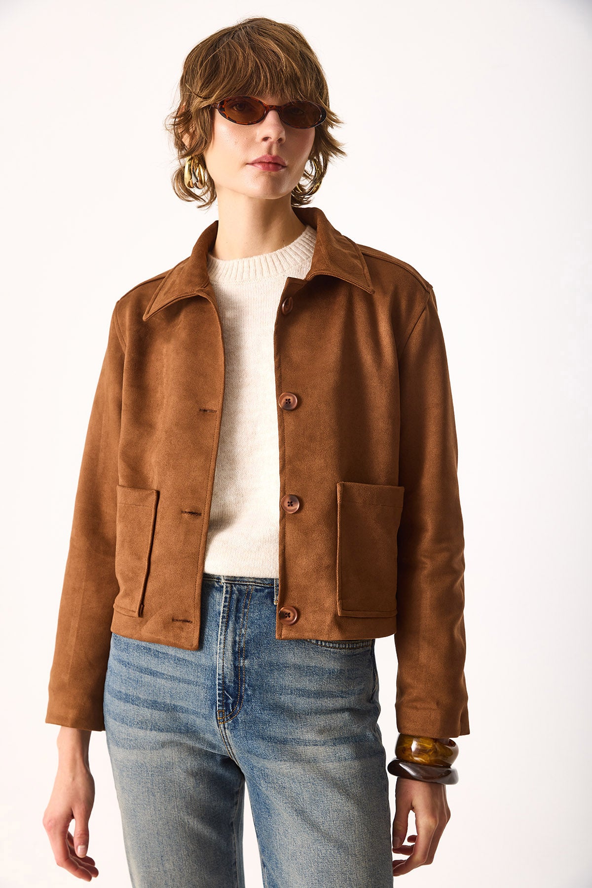 Günlük şıklığını rahatlıkla yakalayacağın Kadın Regular Fit Süet Ceket, elastan dokusu sayesinde hareket özgürlüğü sağlar. Hem ofiste hem günlük hayatta rahatlıkla tercih edebileceğin şık bir parça!