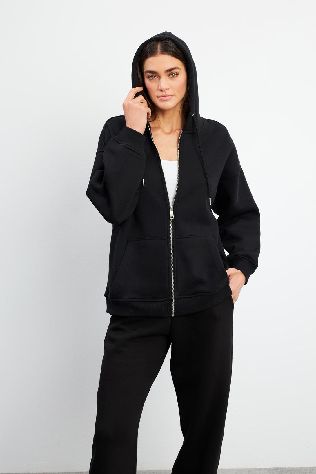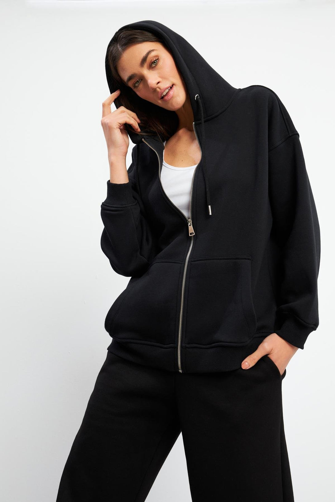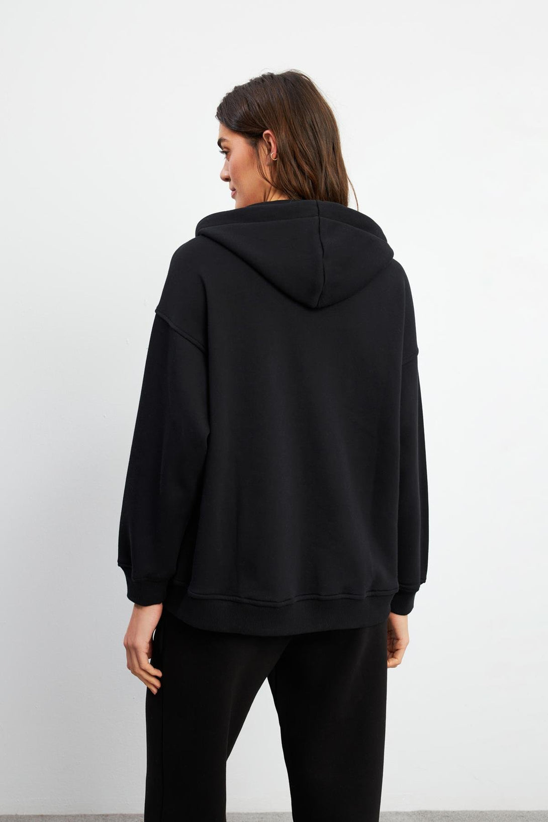 Kadın Sallina Kapüşonlu Fermuarlı Oversize Sweatshirt - Siyah