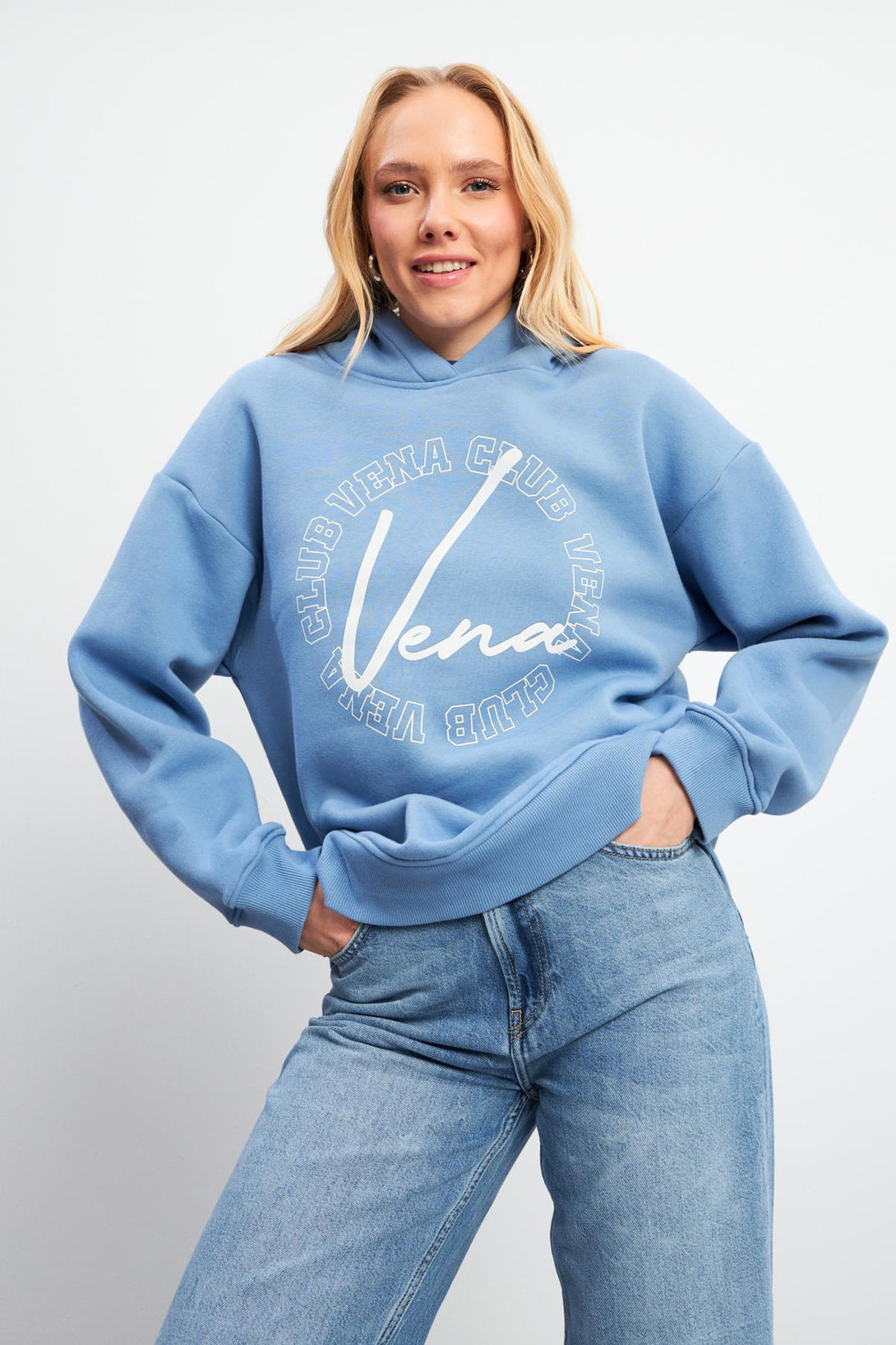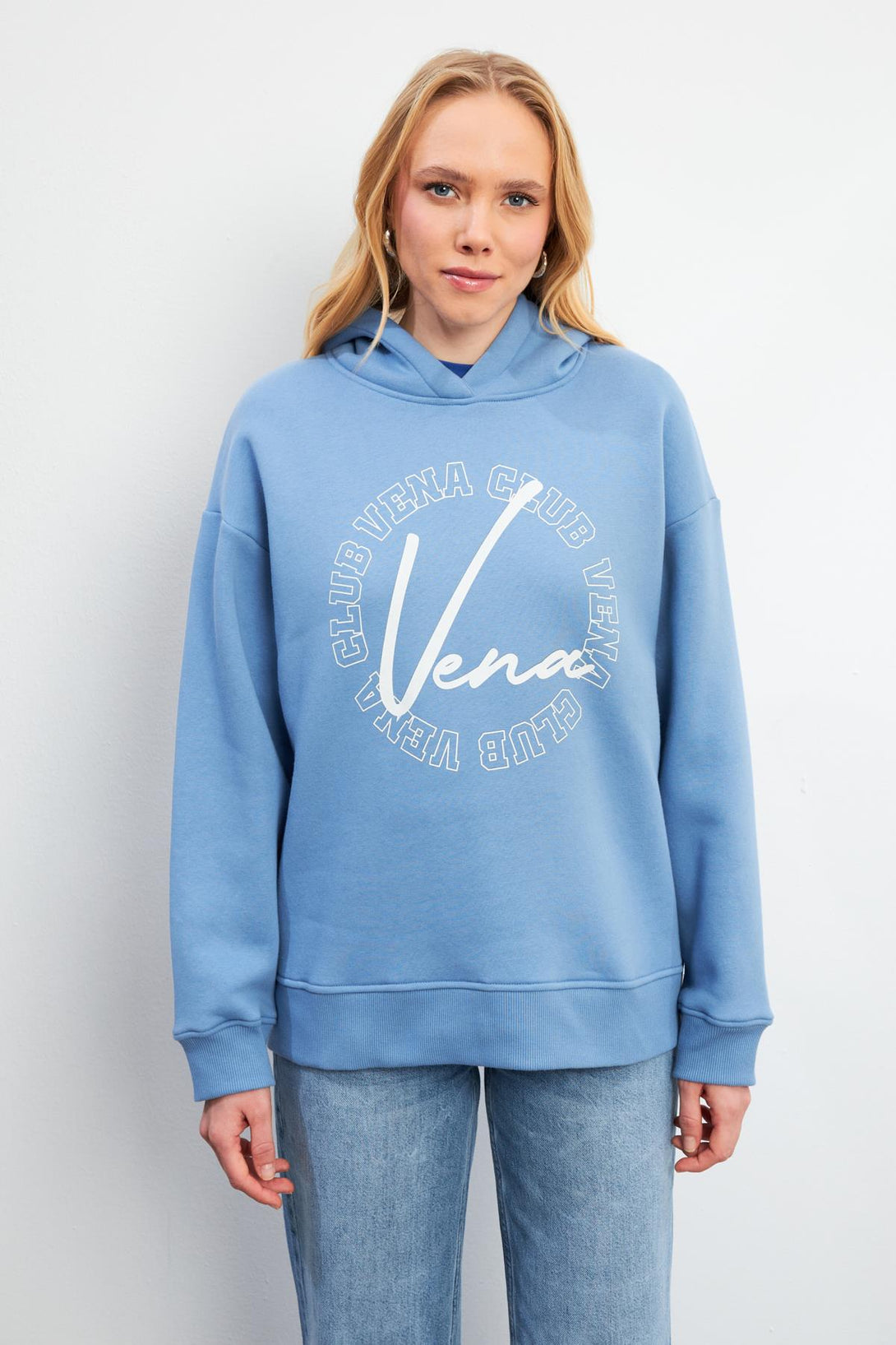 Kadın Vena Club Baskılı Mavi Sweatshirt