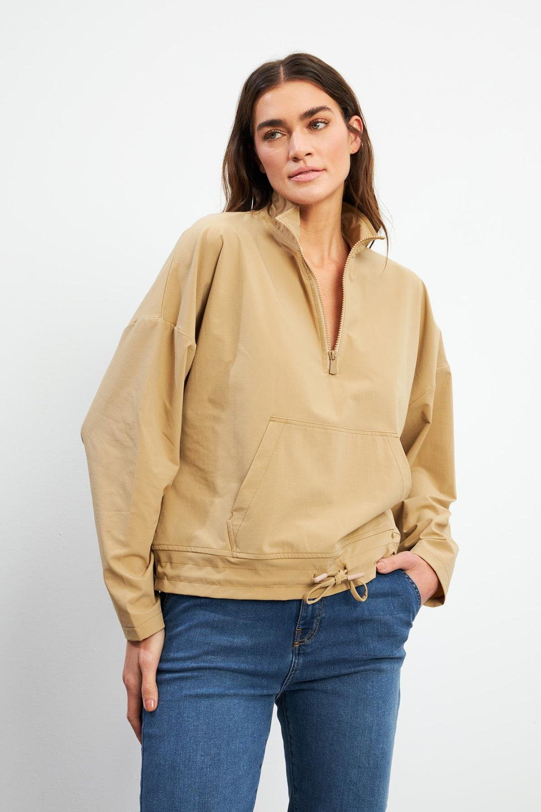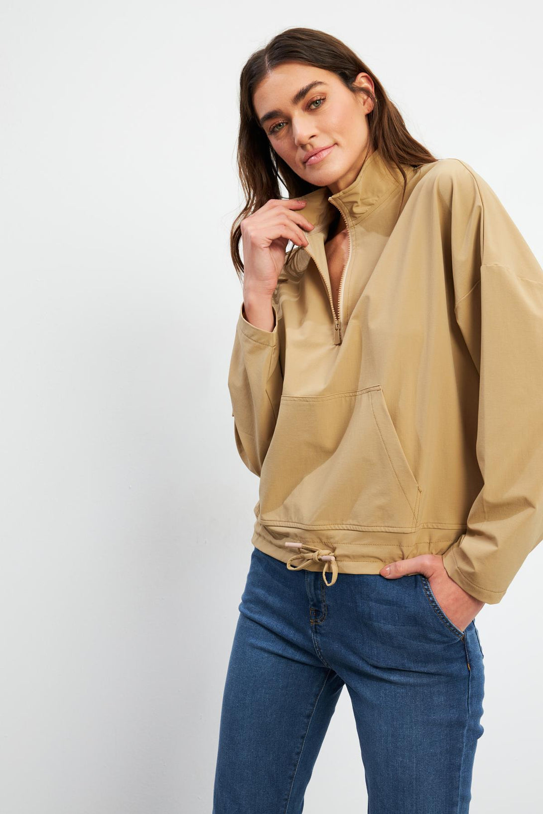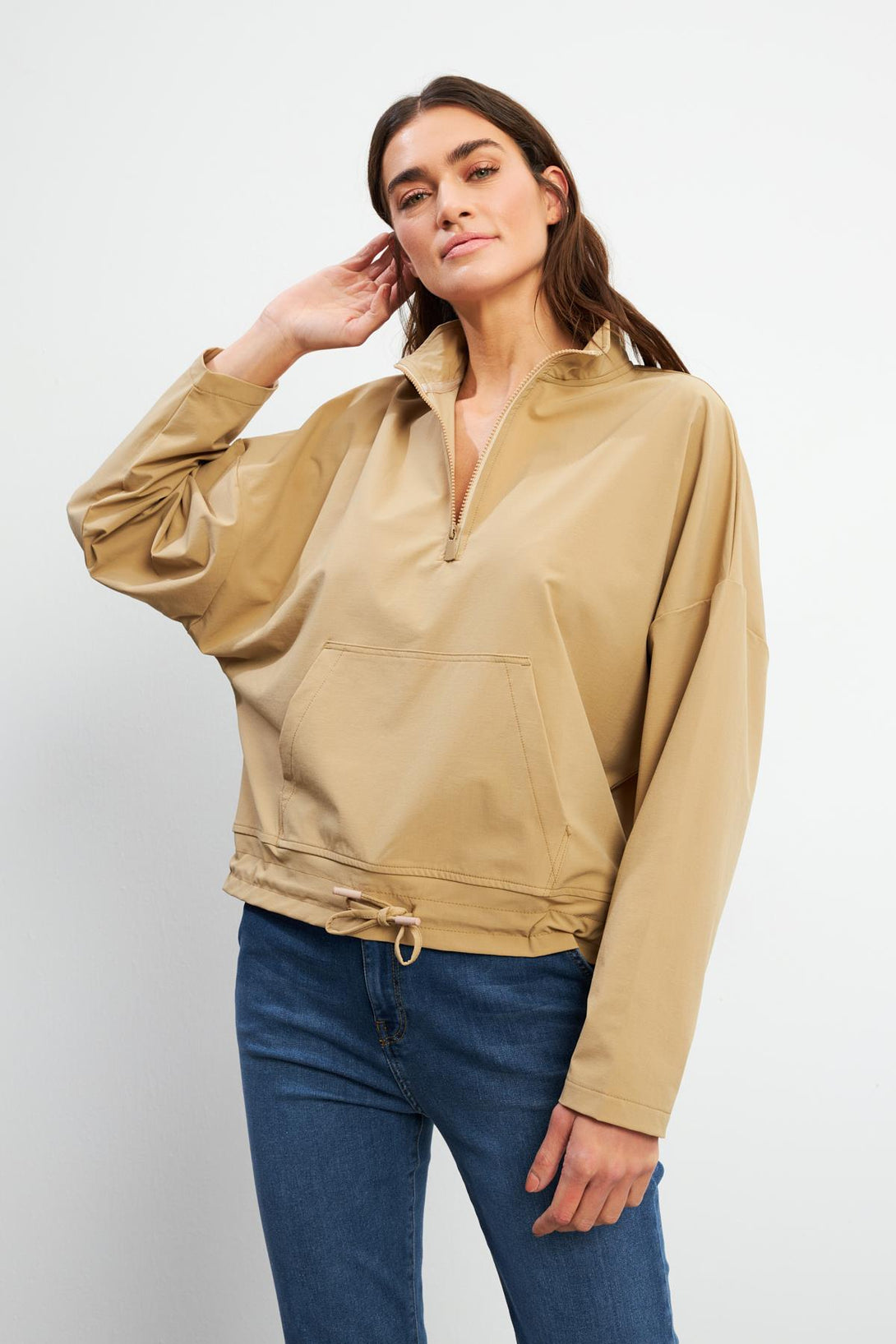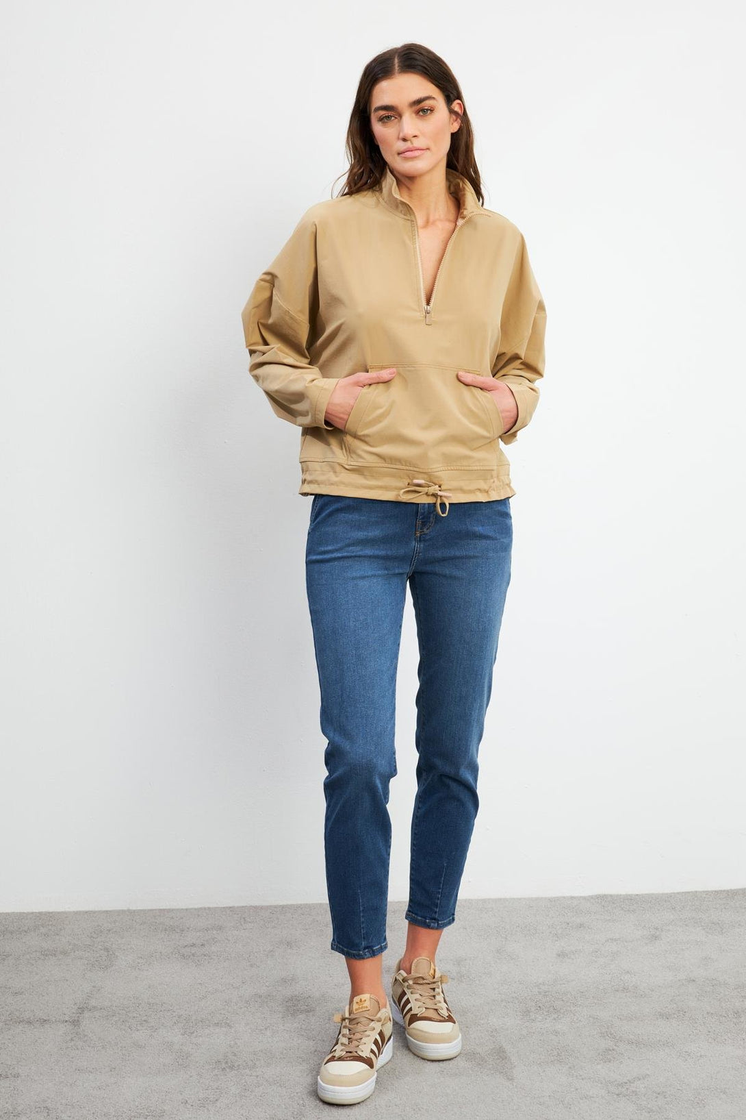Kadın Yarım Fermuarlı Bej Paraşüt Sweatshirt