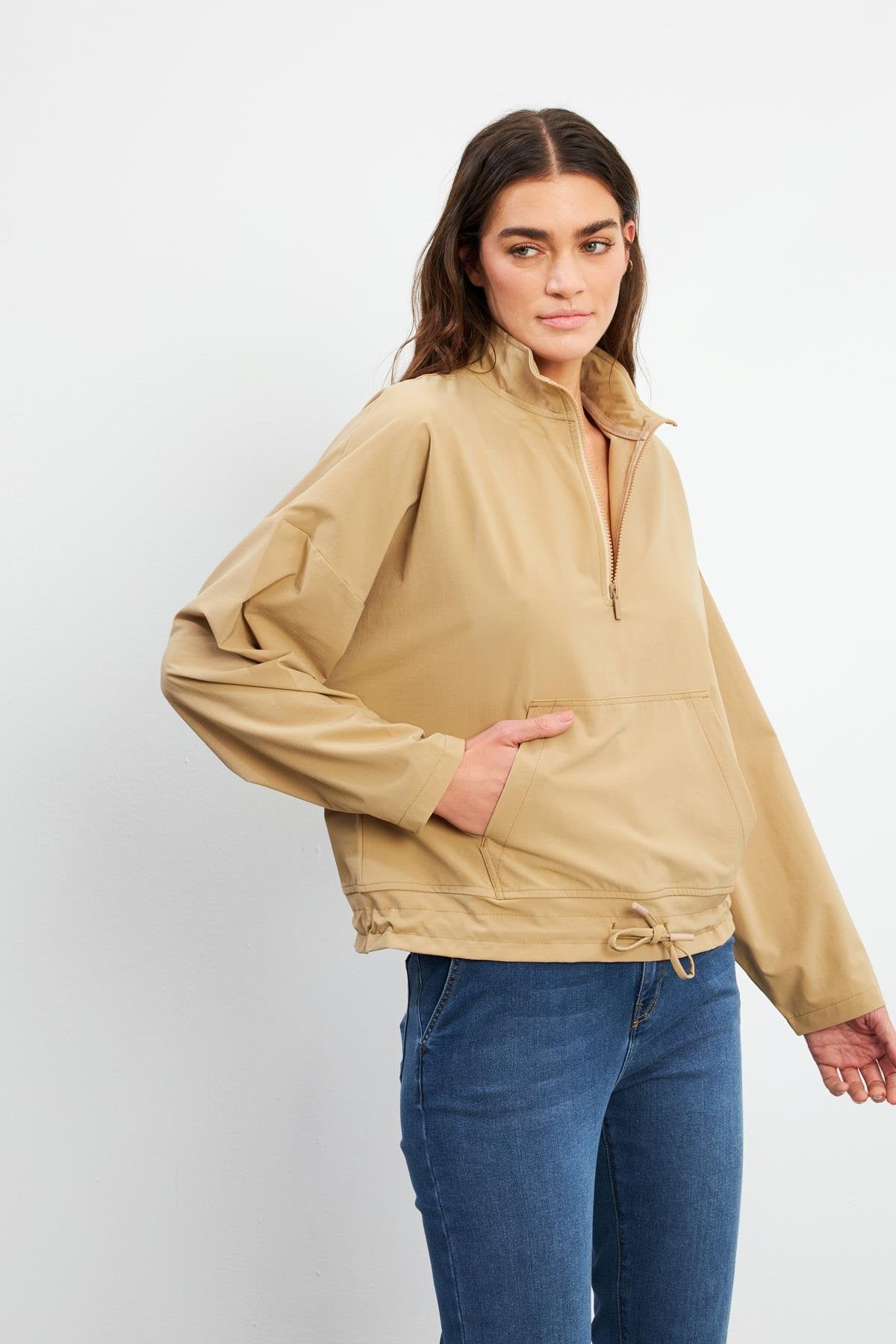 Kadın Yarım Fermuarlı Paraşüt Sweatshirt - Bej