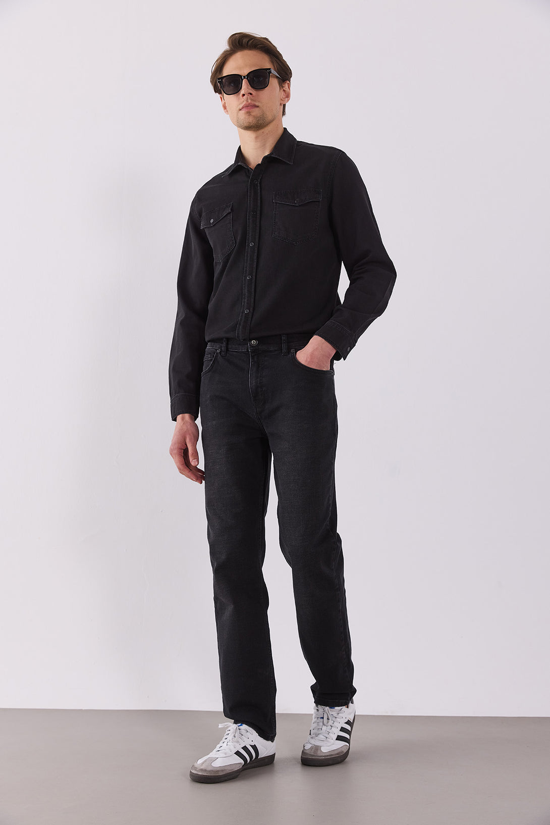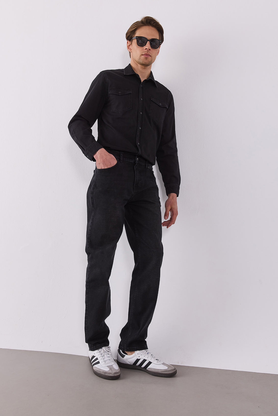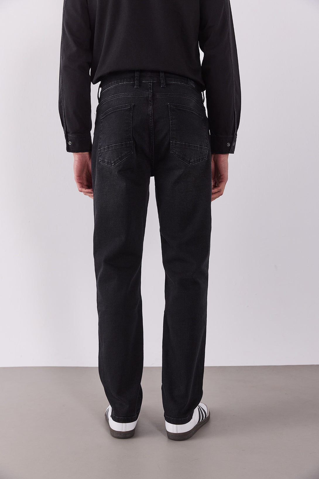 Siyah Kalimnos Comfort Fit jean pantolon, yüksek bel ve düz paça kesimiyle hem günlük hem smart-casual stiline uygun modern bir siluet sunar. %98,7 pamuk ve %1,3 elastan karışımı sayesinde yumuşak, nefes alabilir ve esnek yapısı ile gün boyu rahatlık sağlar.