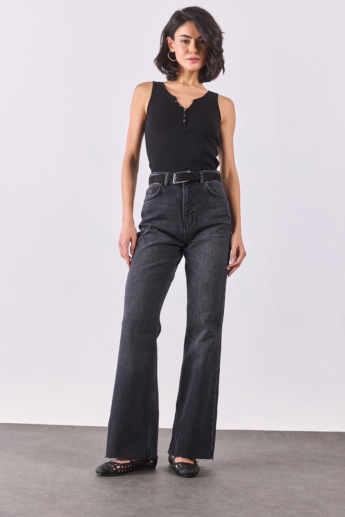 Kadın Kate Yüksek Bel Bootcut Black Jean Pantolon - Black