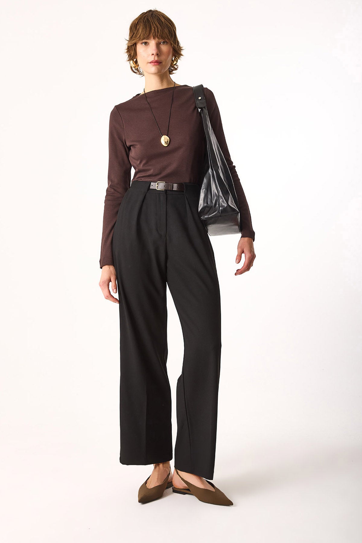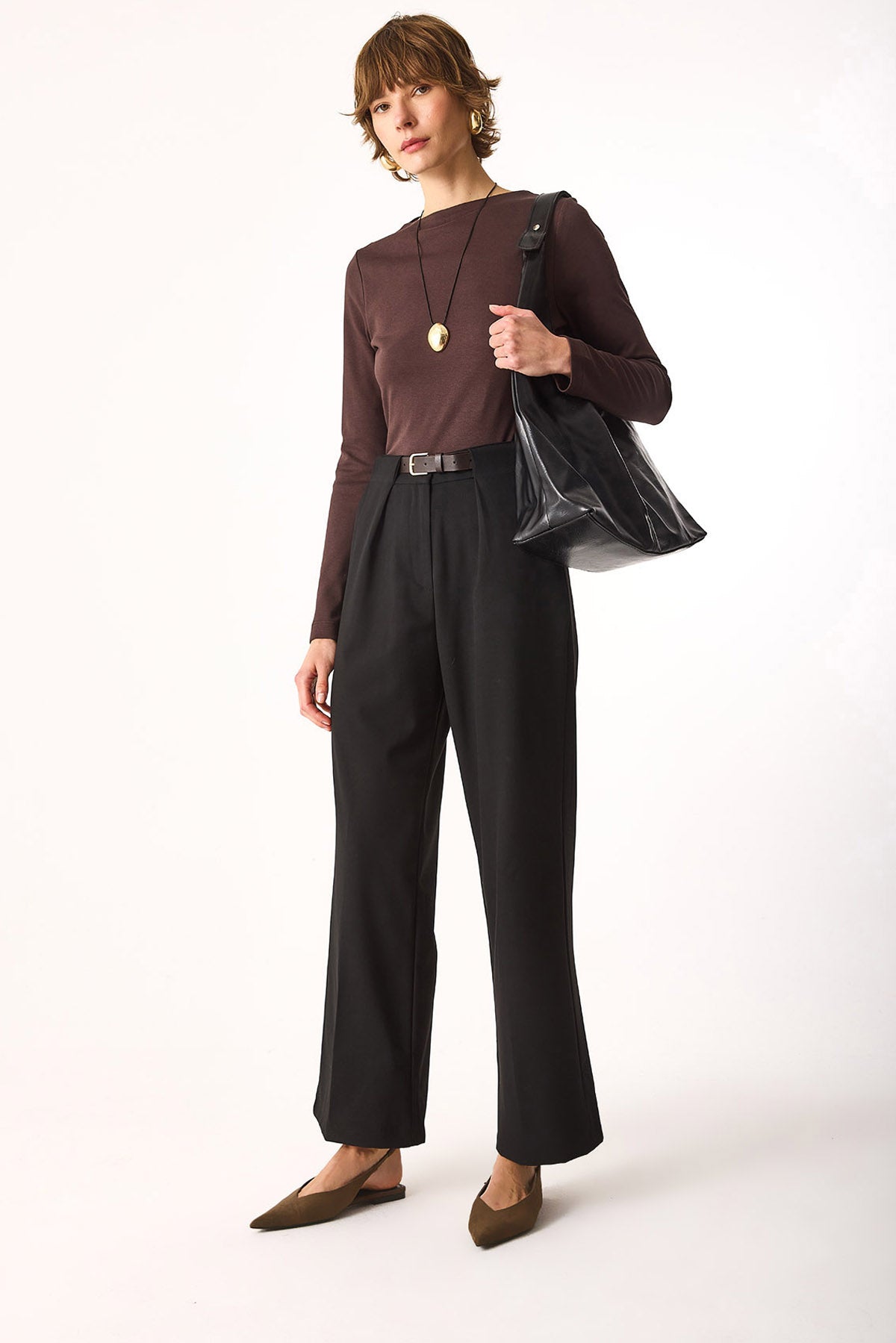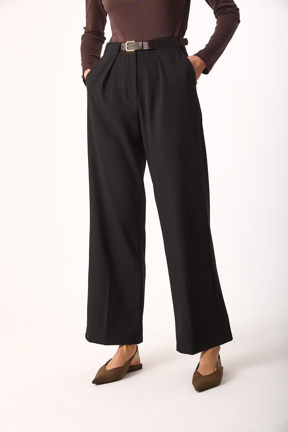 Kadın Kemer Detaylı Chino Pantolon - Siyah