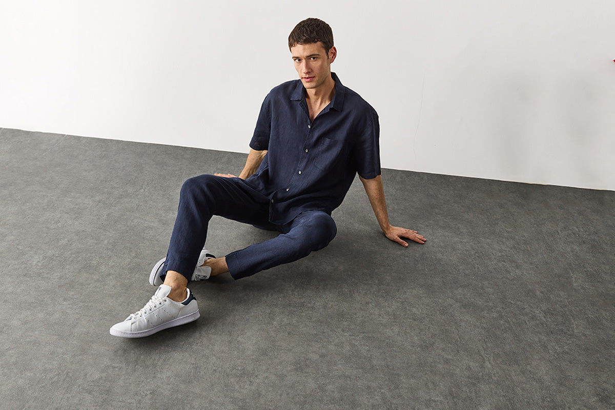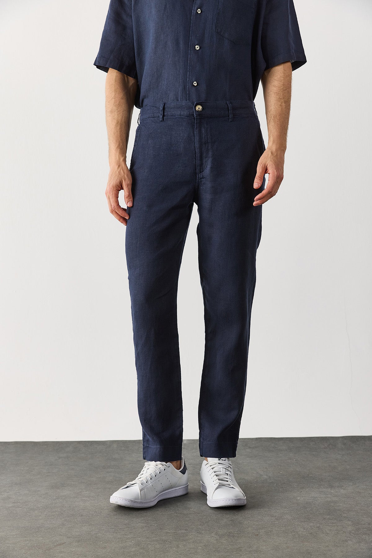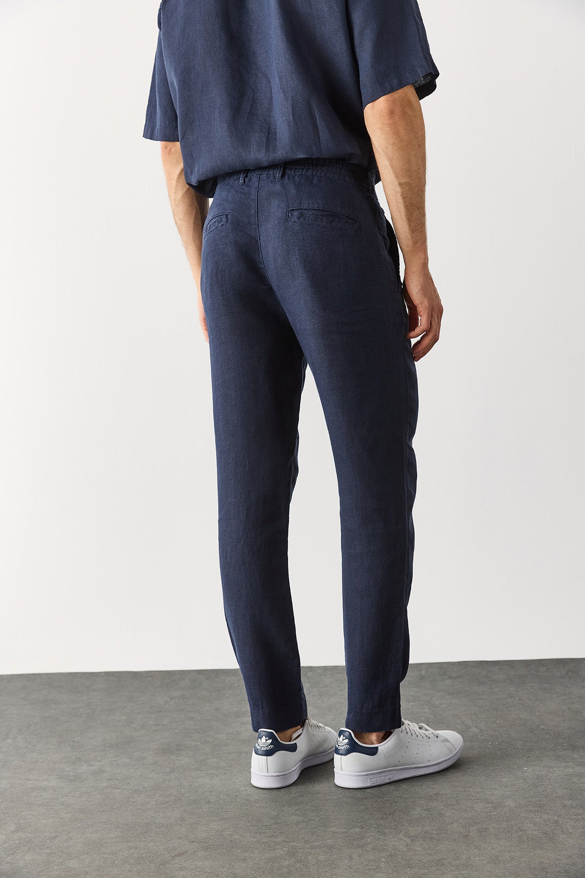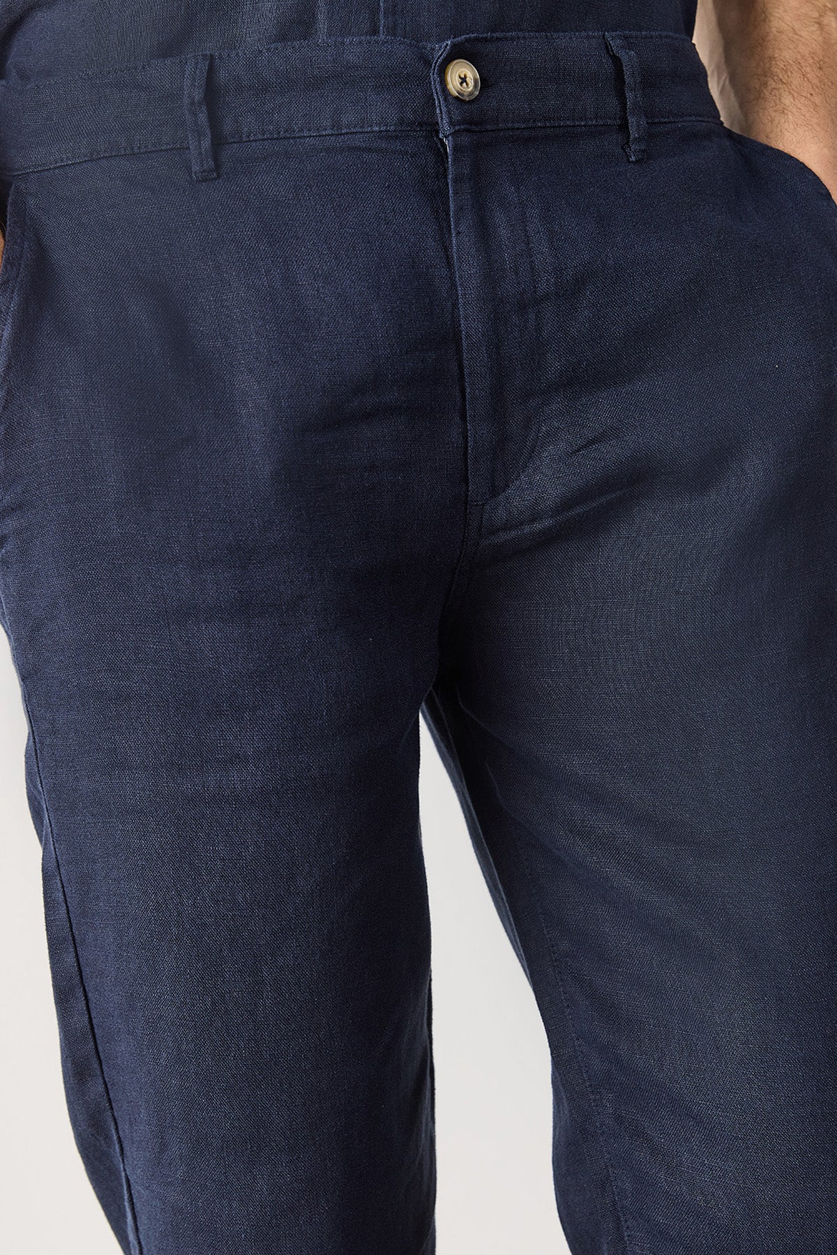 Erkek Ken Beli Lastikli Chino Pantolon %100 Keten - Lacivert
