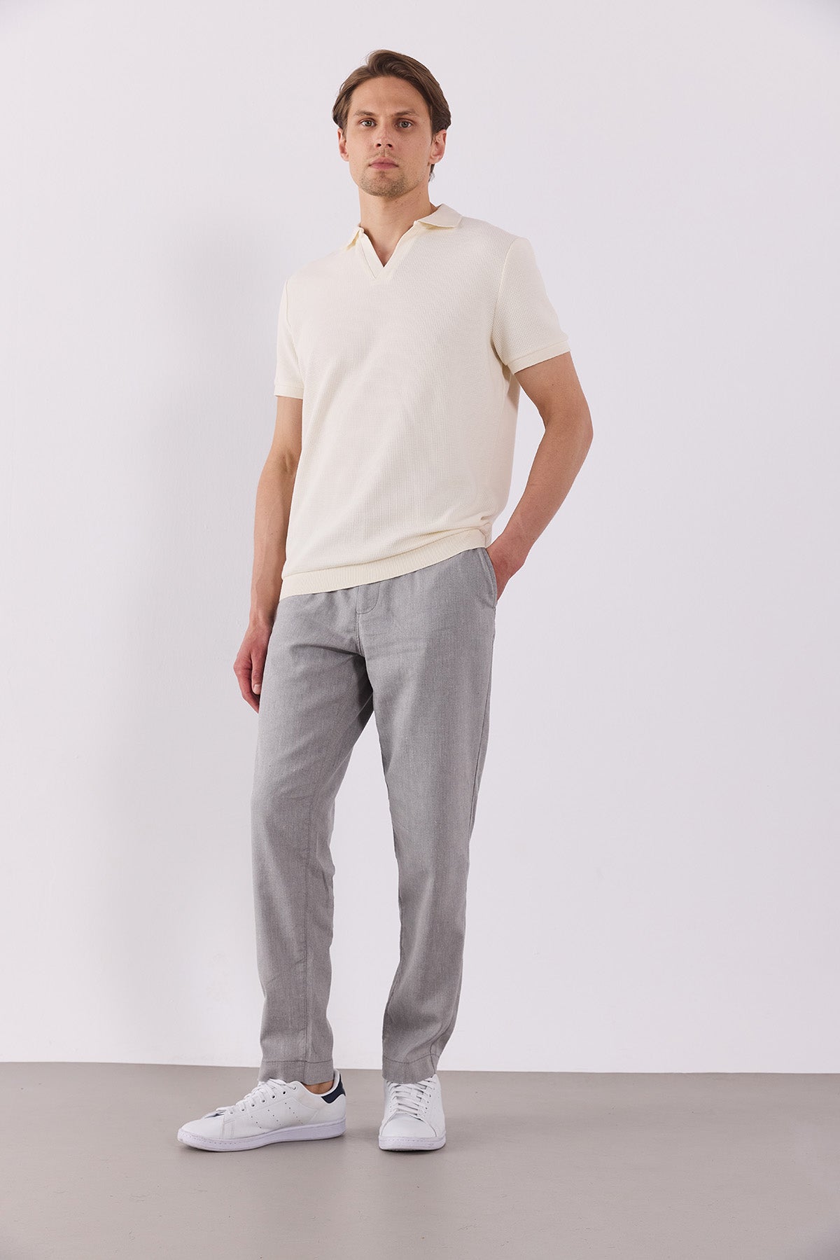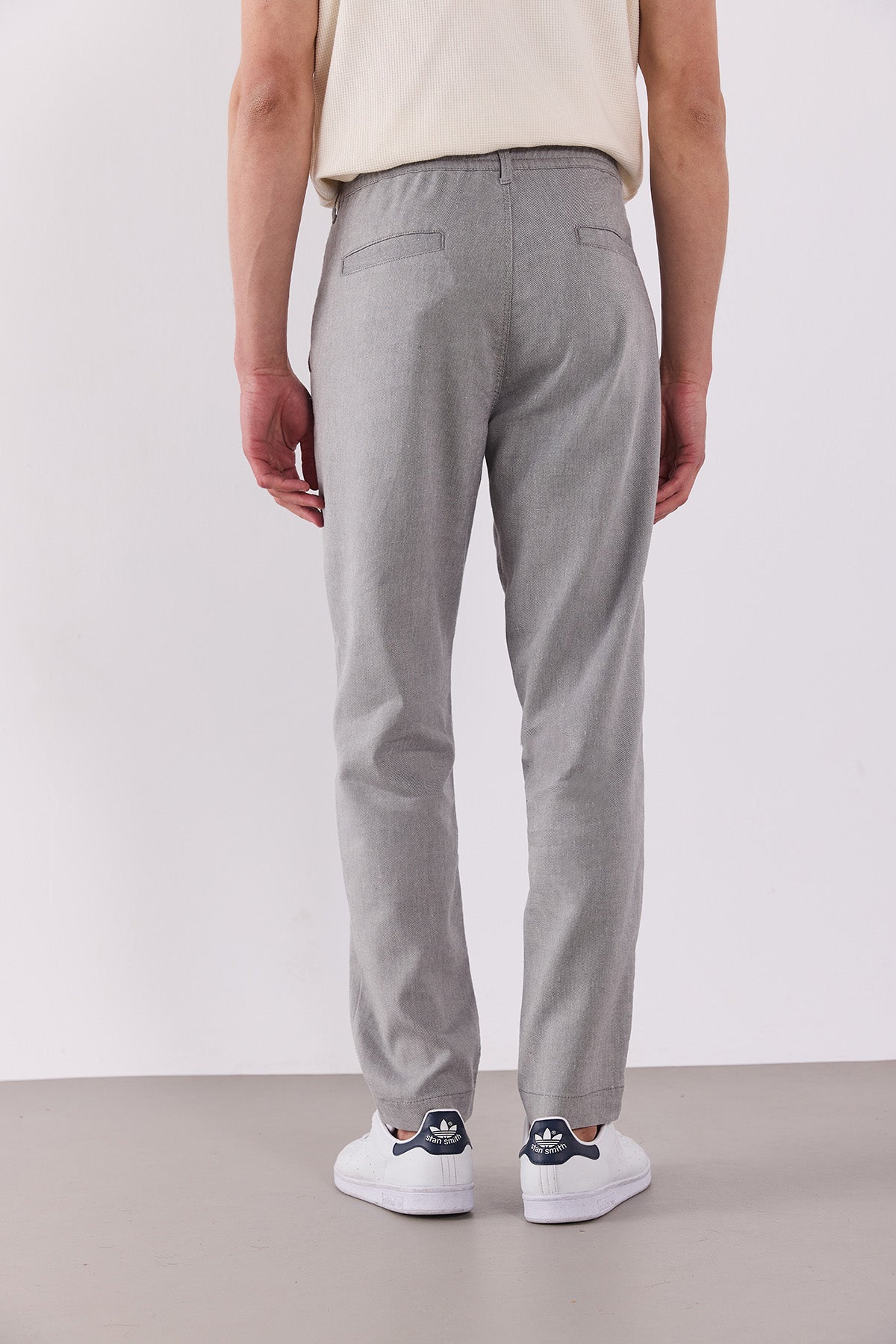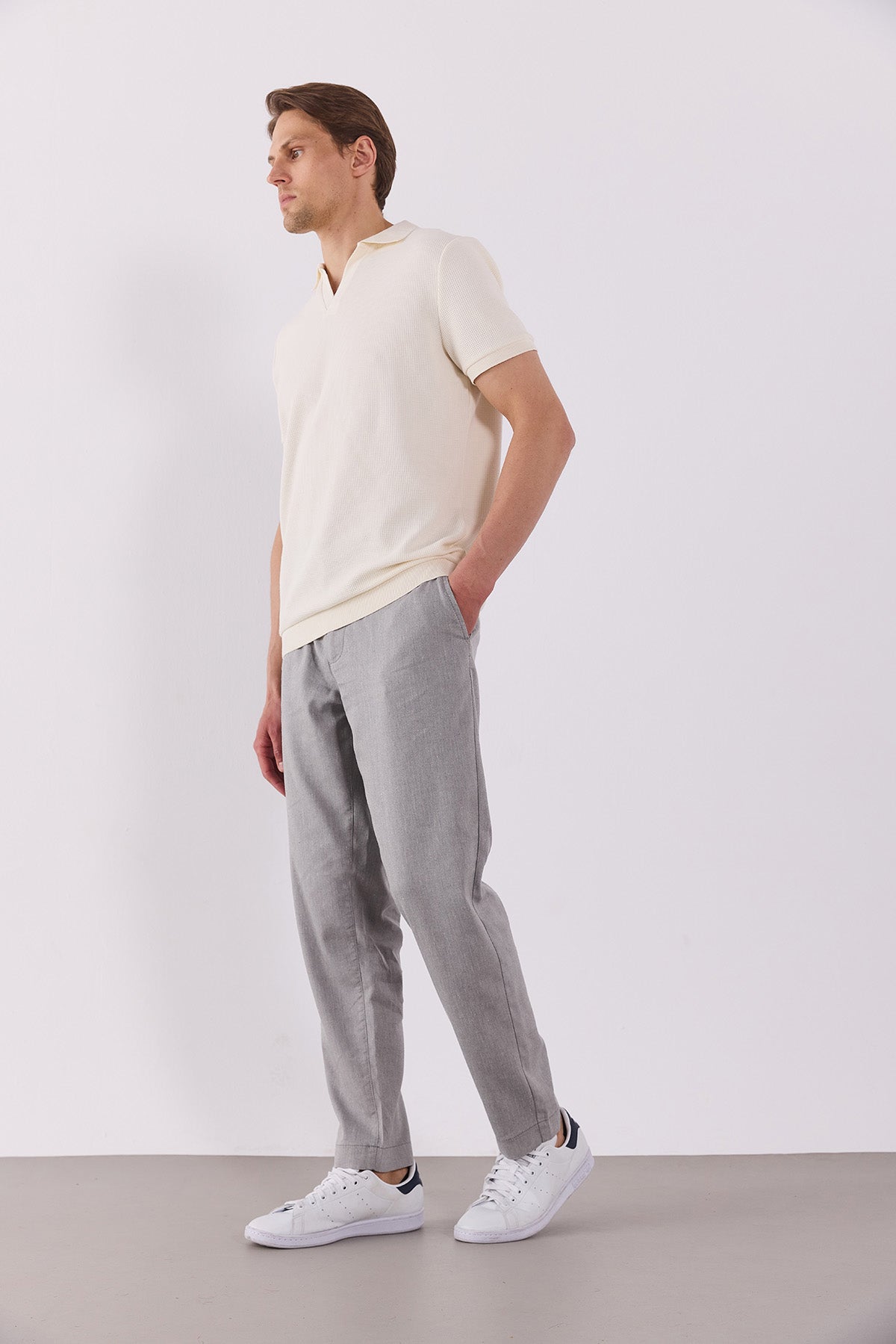 Erkek Ken Beli Lastikli Keten Karışımlı Chino Pantolon - Gri