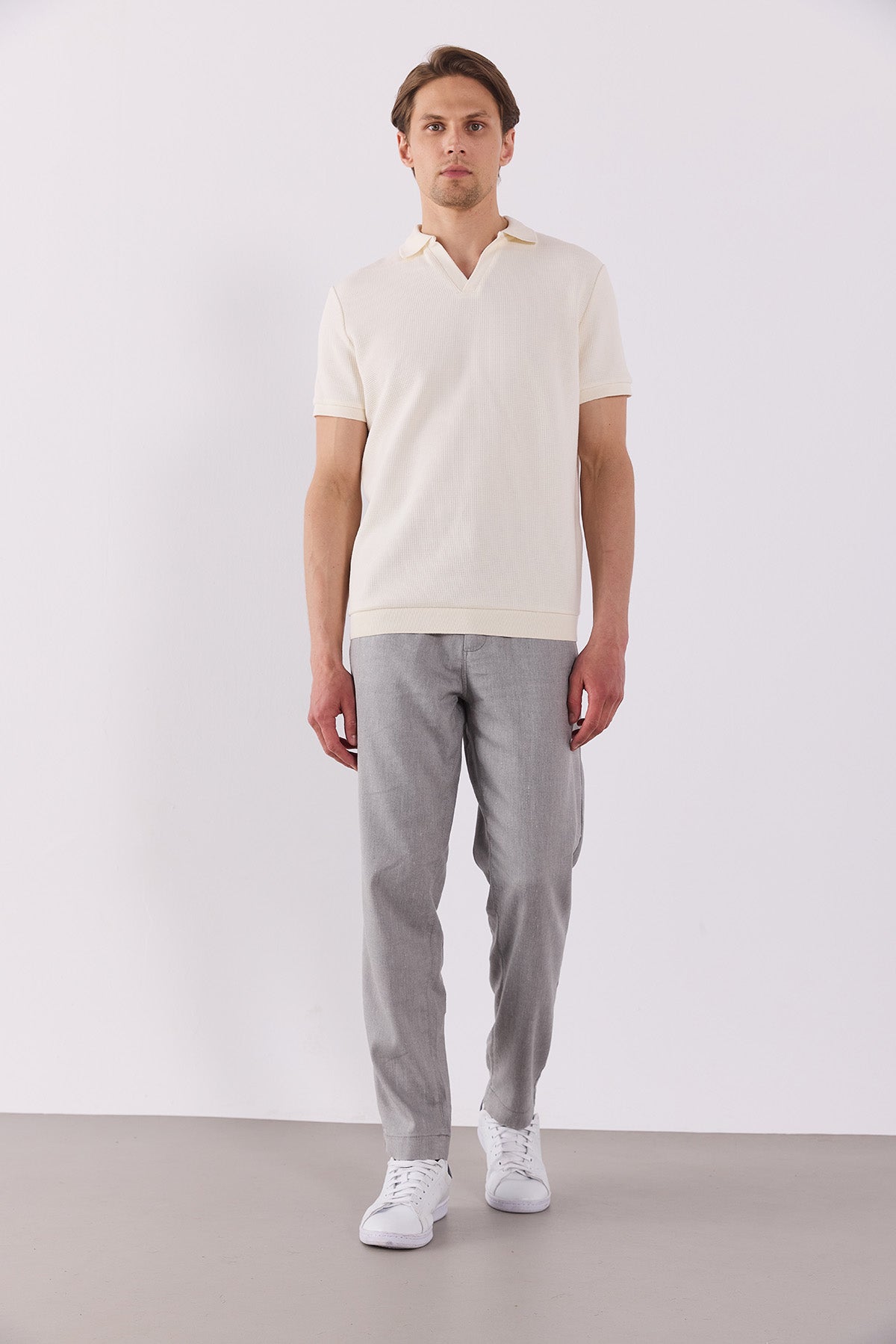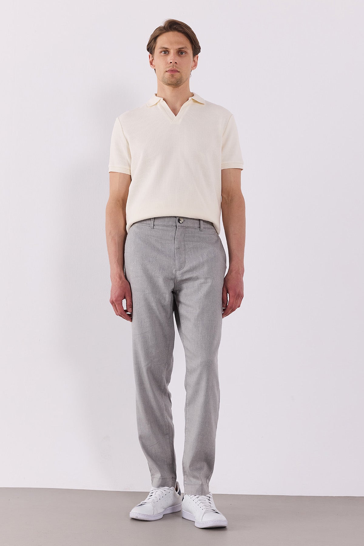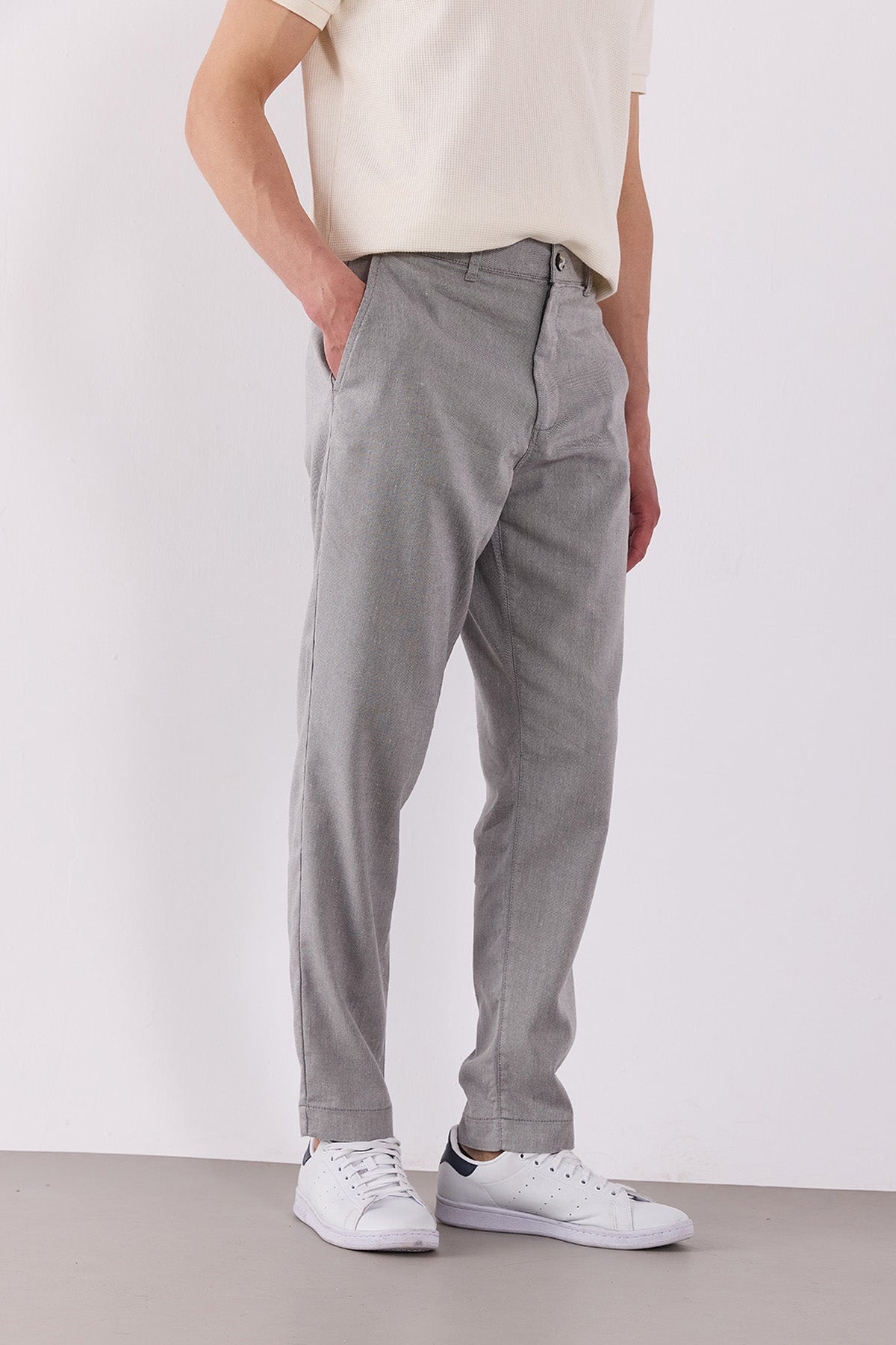 Erkek Ken Beli Lastikli Keten Karışımlı Chino Pantolon - Gri