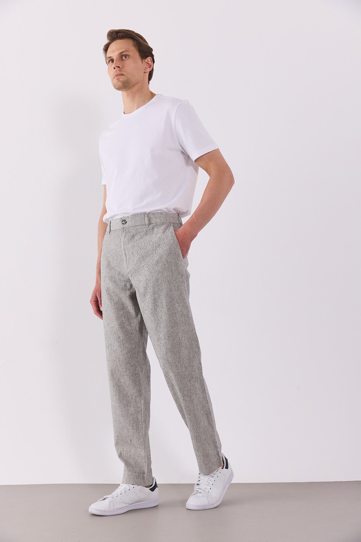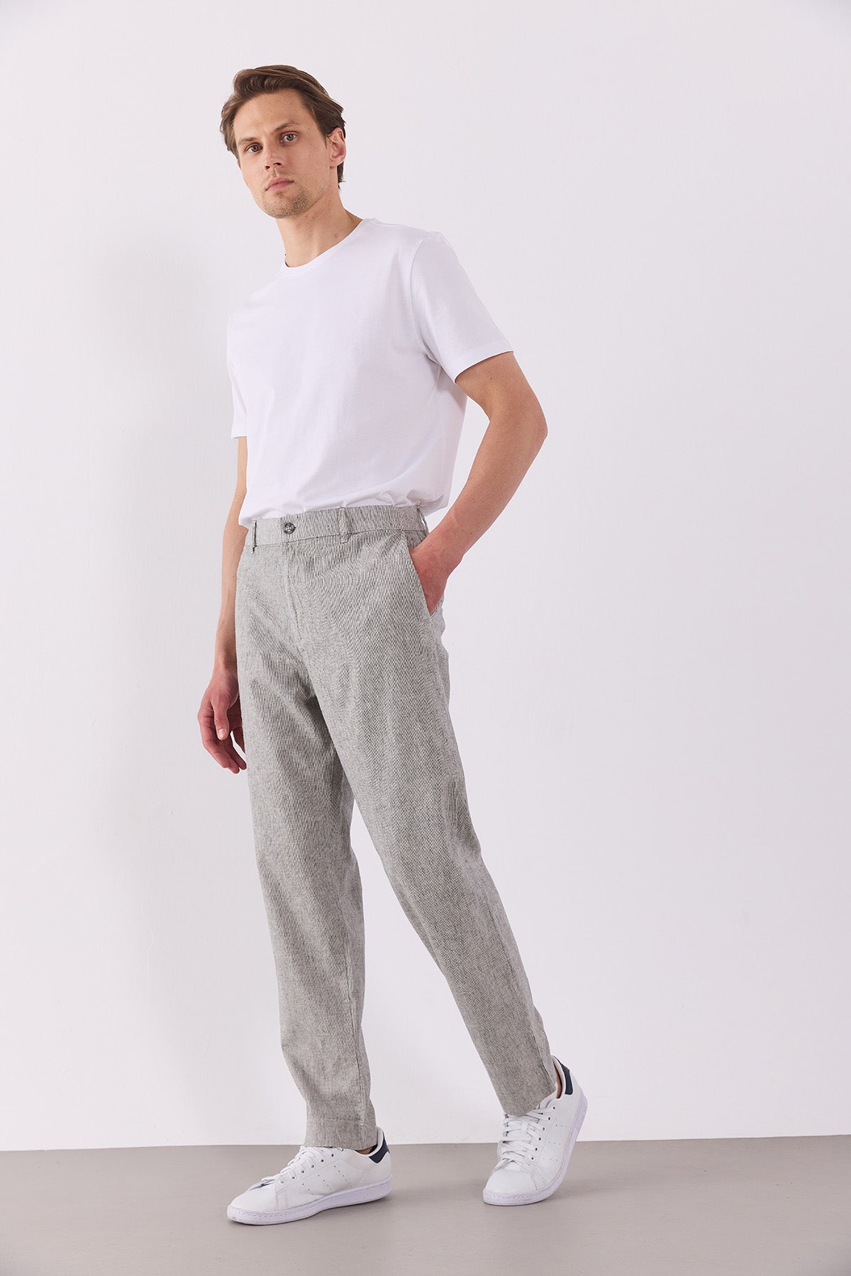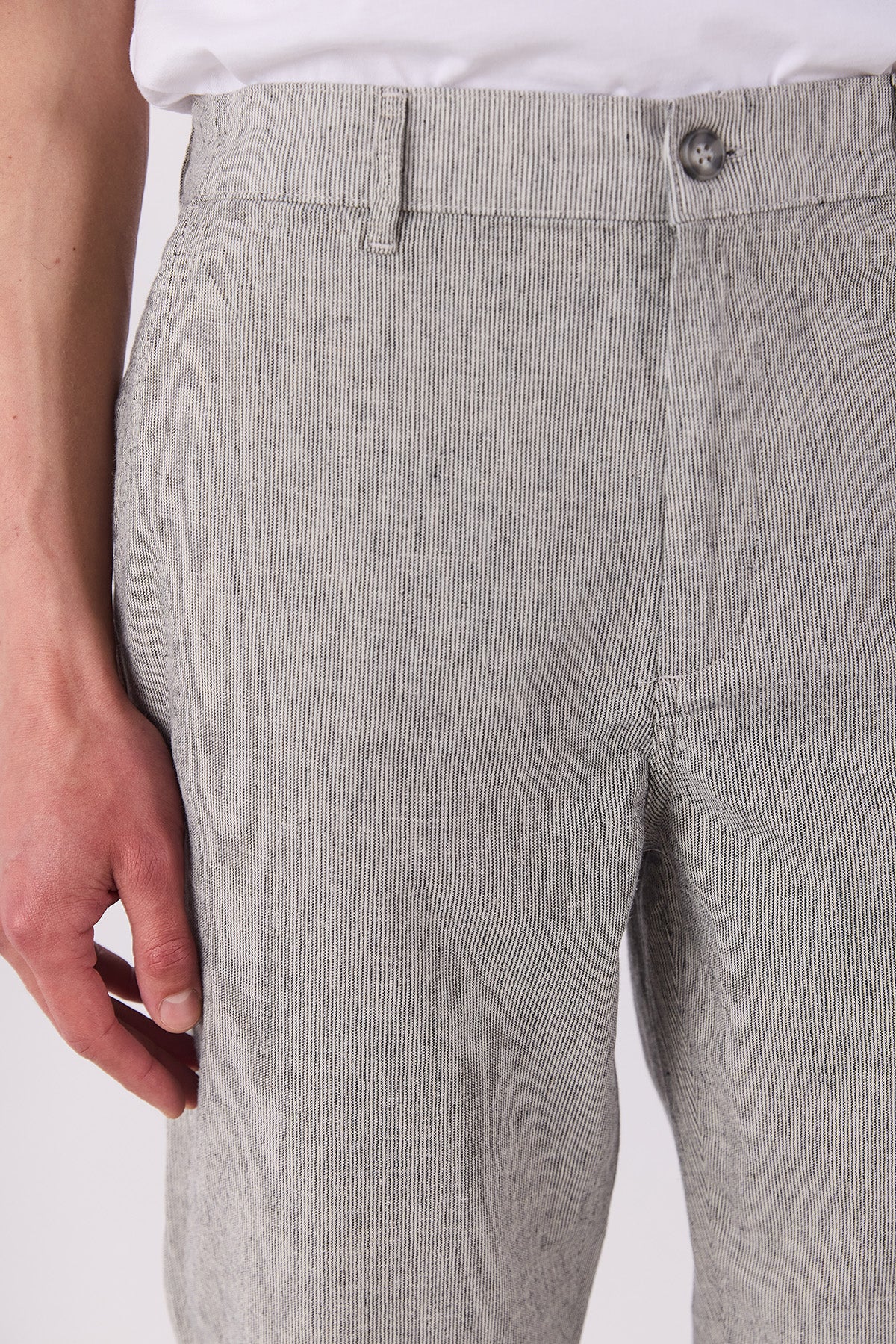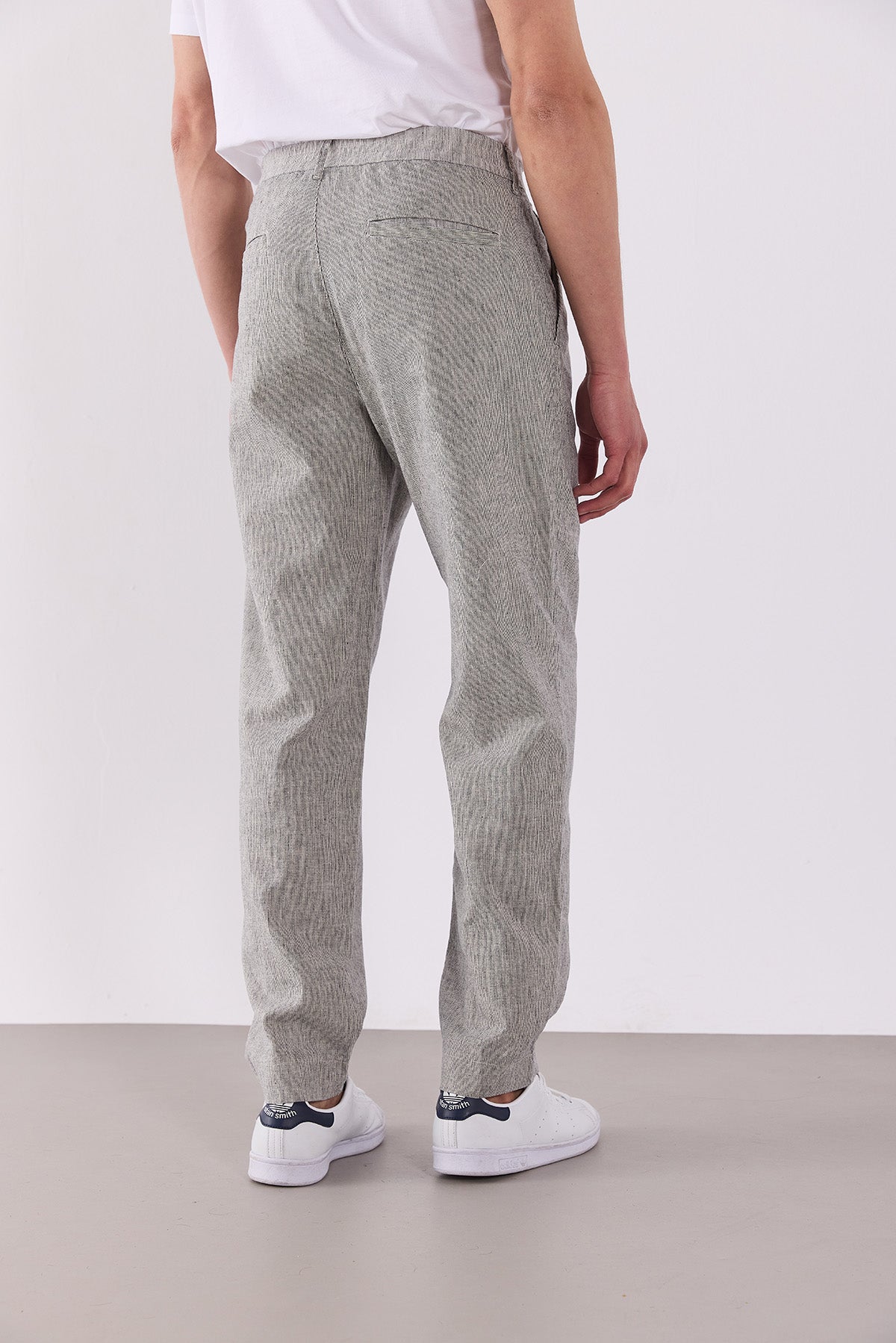 Erkek Ken Beli Lastikli Lycra Keten Chino Pantolon - Lacivert Çizgili