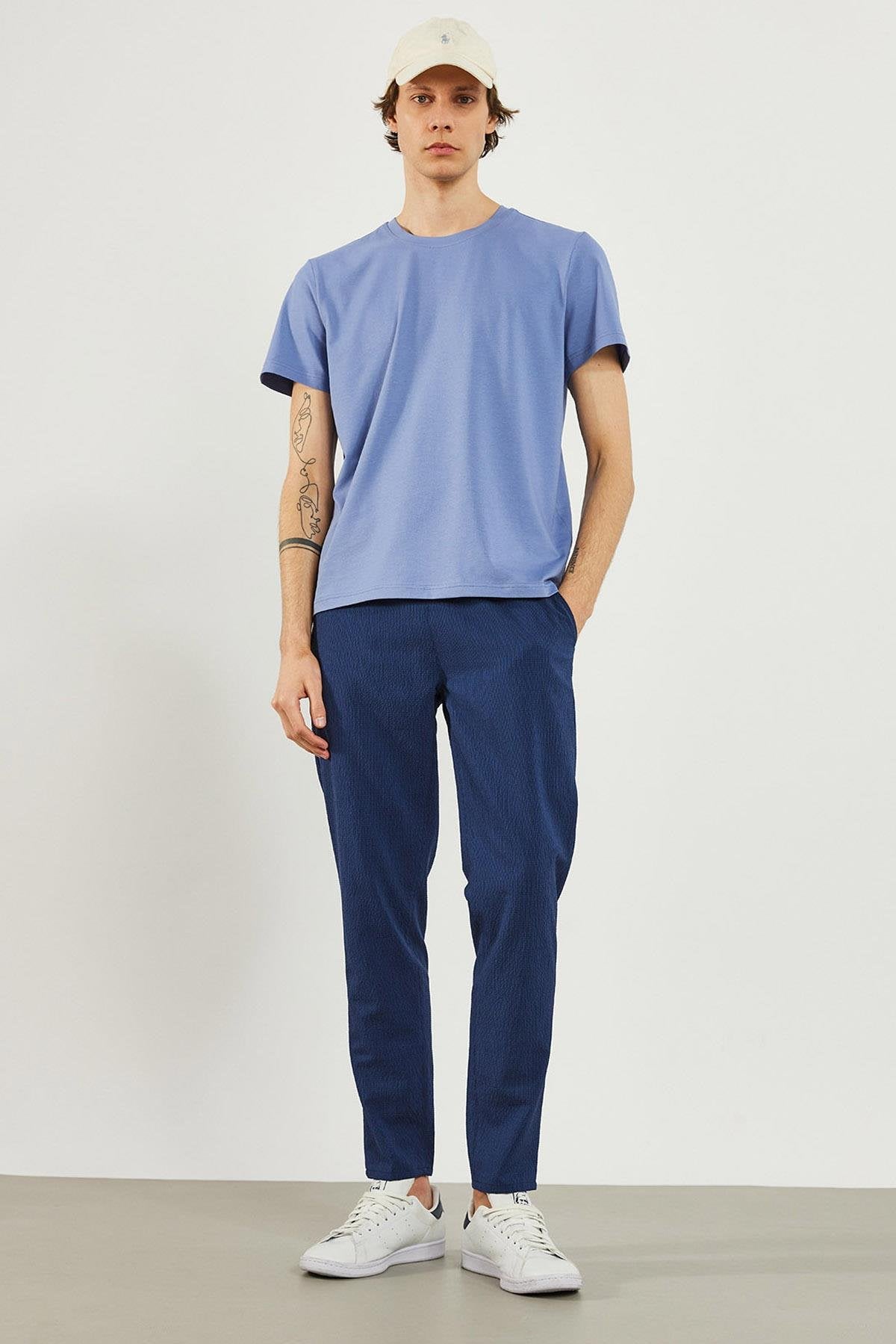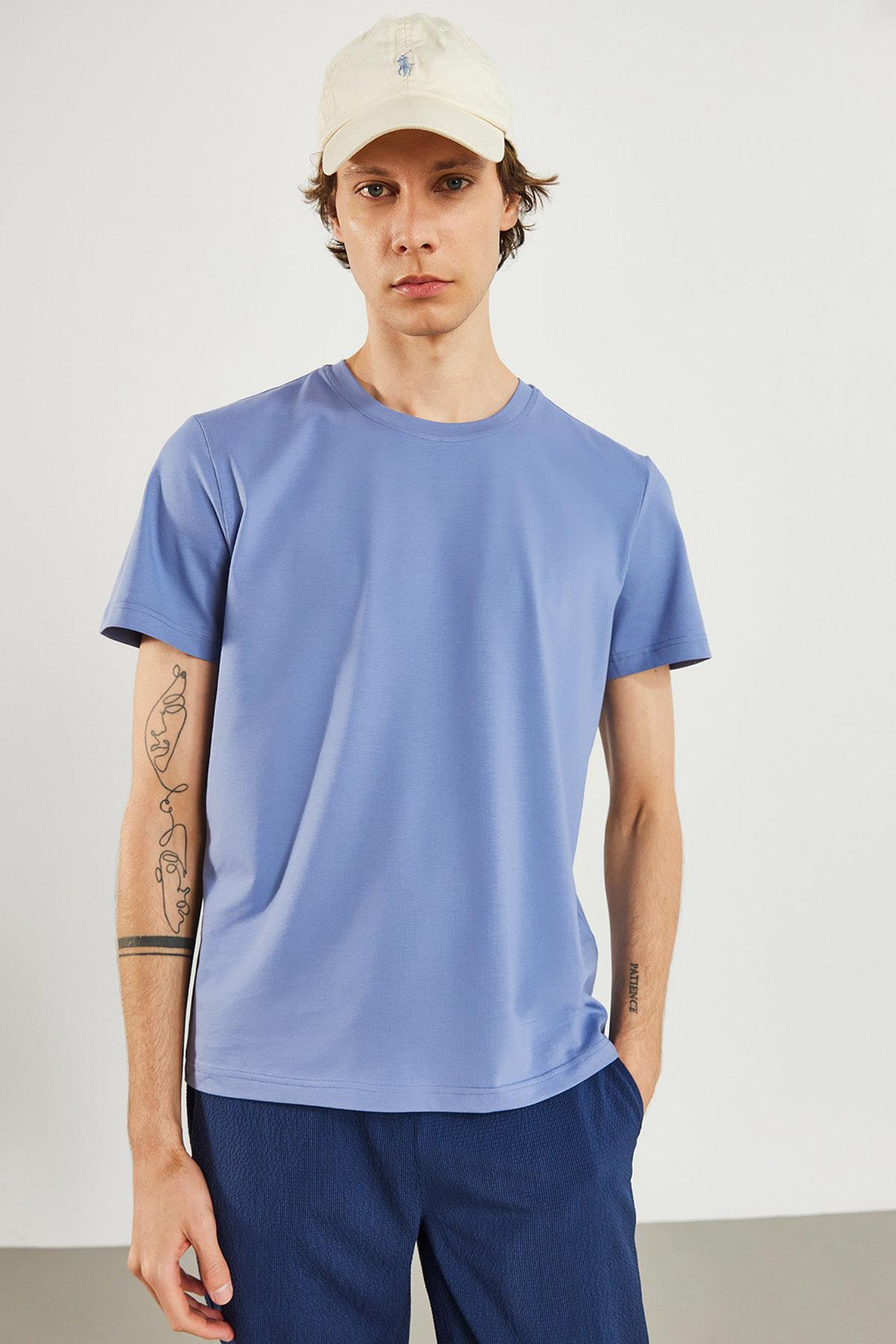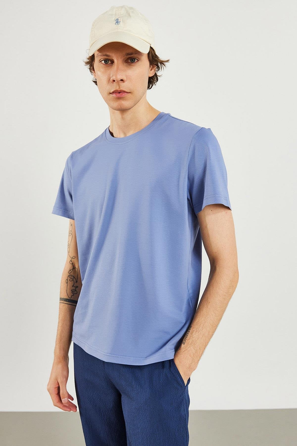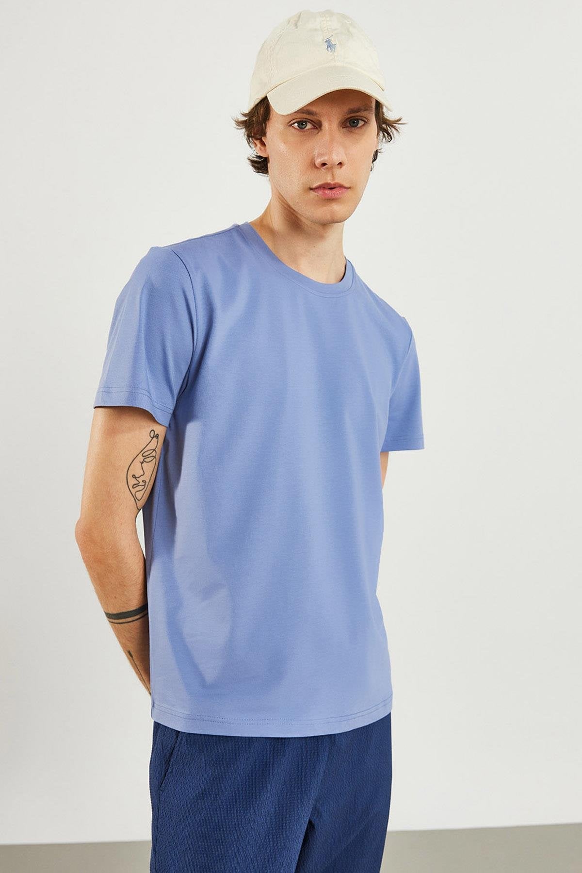 Erkek Ken Bisiklet Yaka Regular Fit Basic Tişört - Gök Mavisi