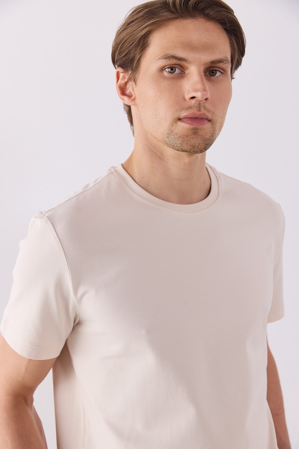 Erkek Ken Bisiklet Yaka Regular Fit Basic Tişört - Taş