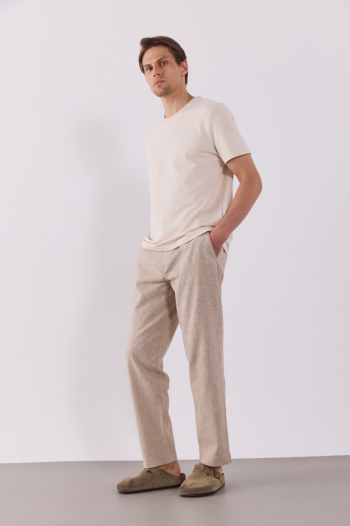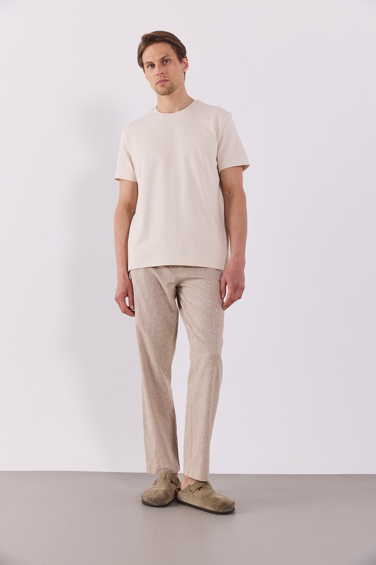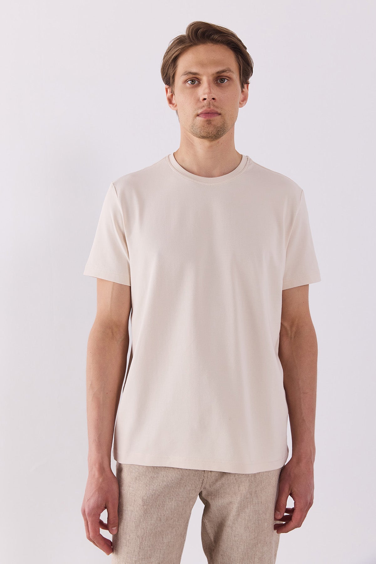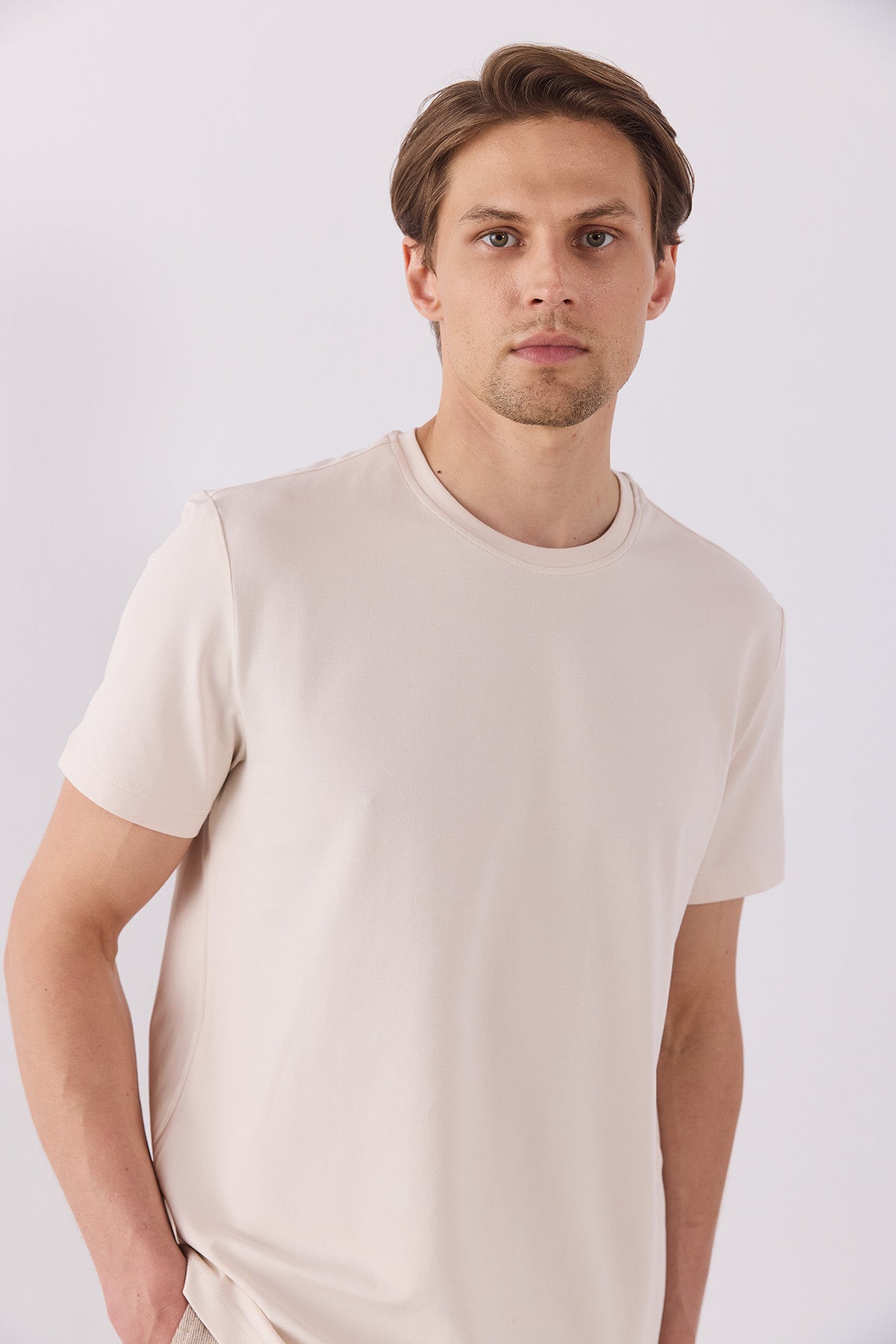 Erkek Ken Bisiklet Yaka Regular Fit Basic Tişört - Taş