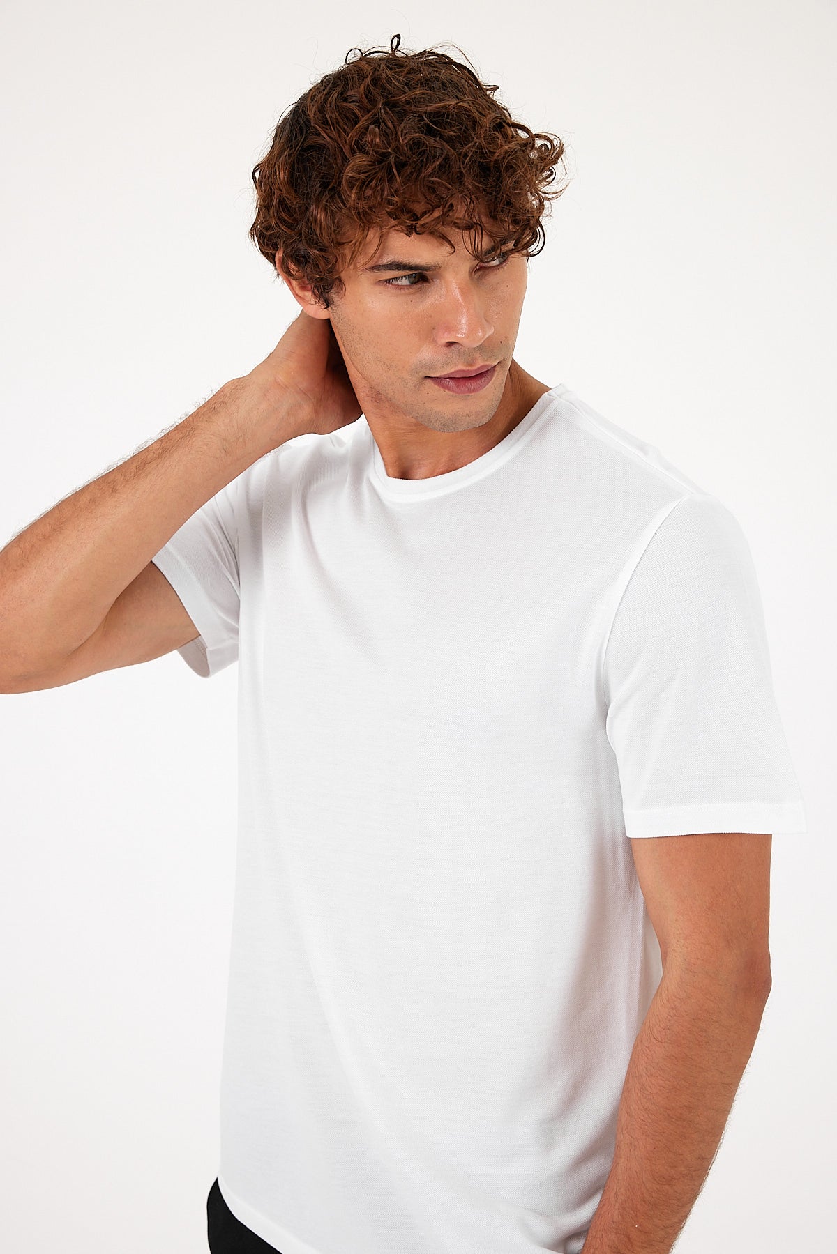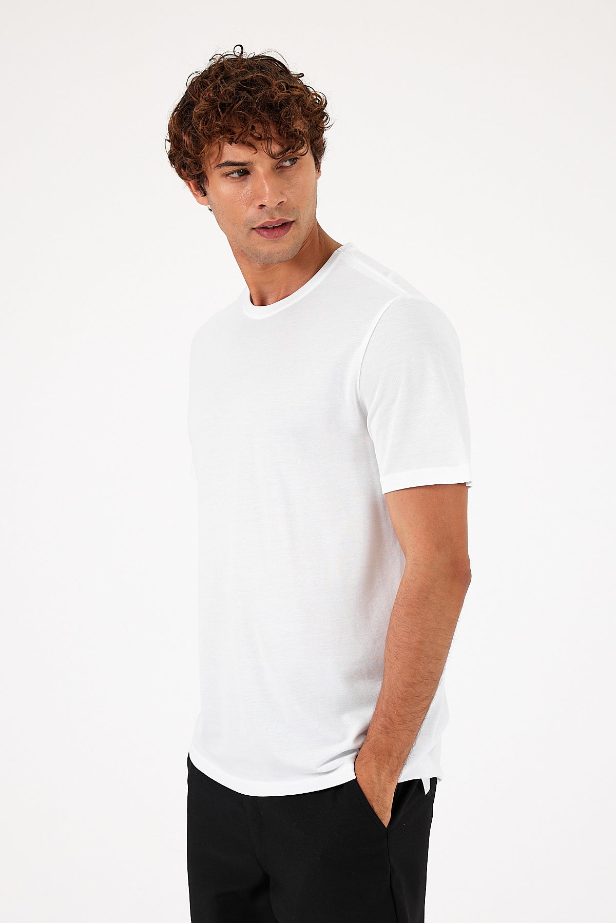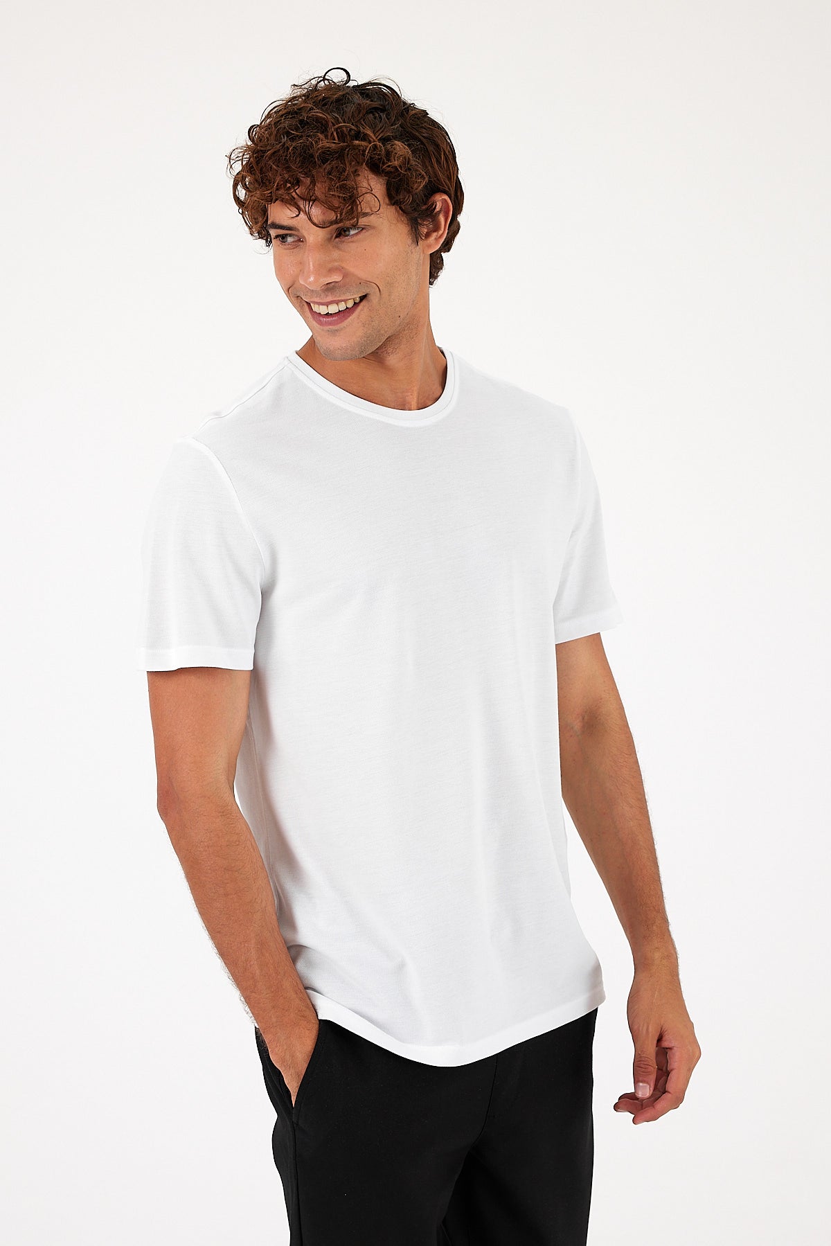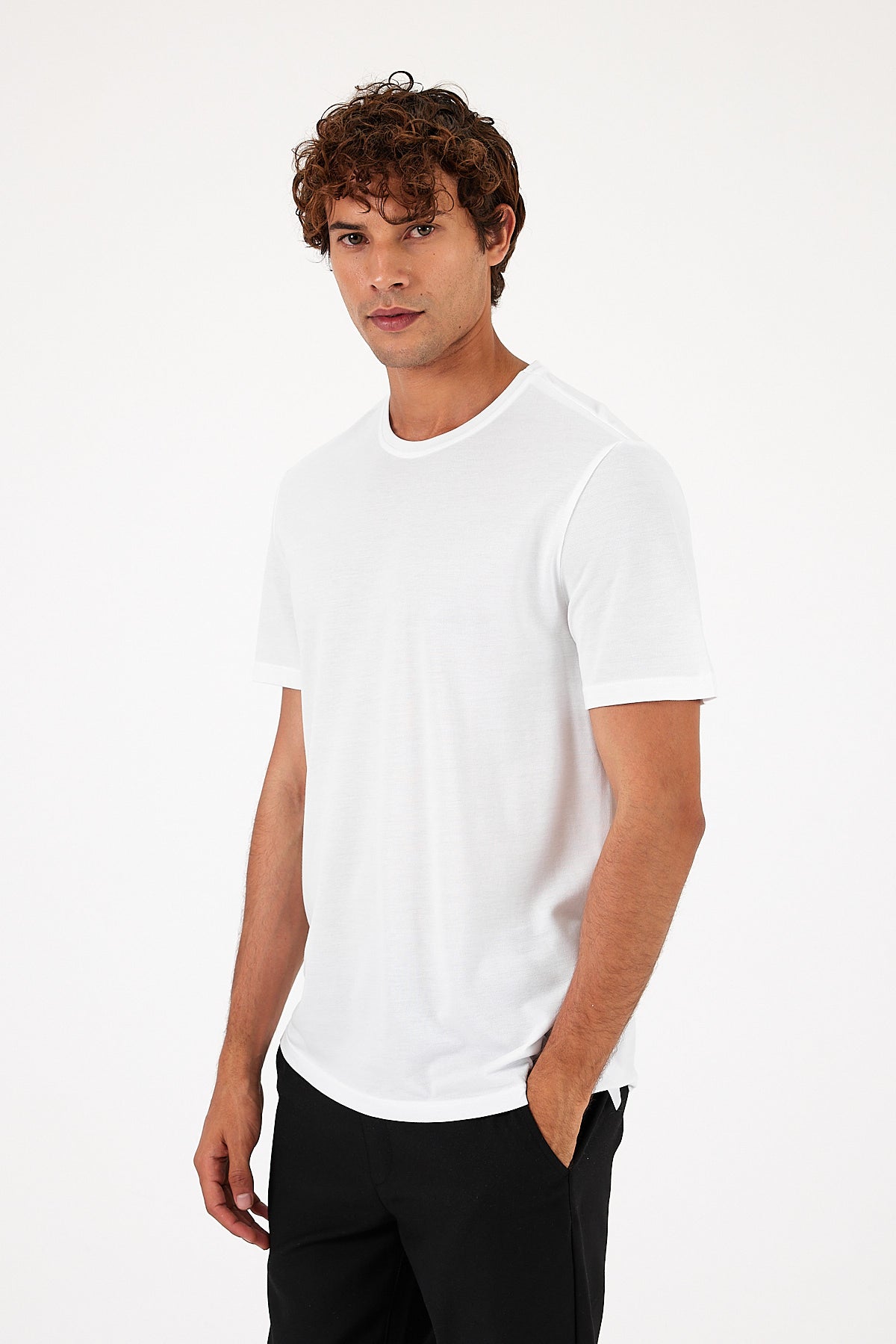 Erkek Ken Bisiklet Yaka Regular Fit Pike Basic Tişört - Beyaz