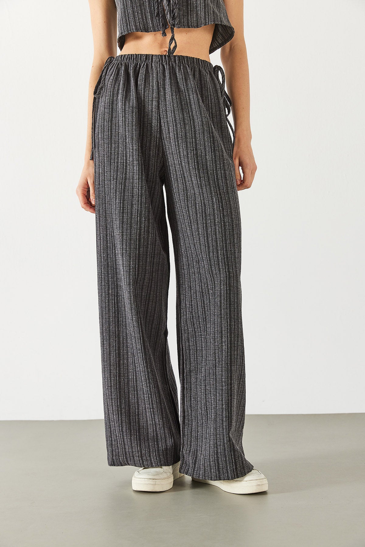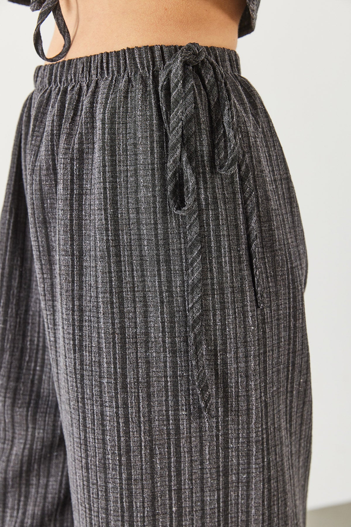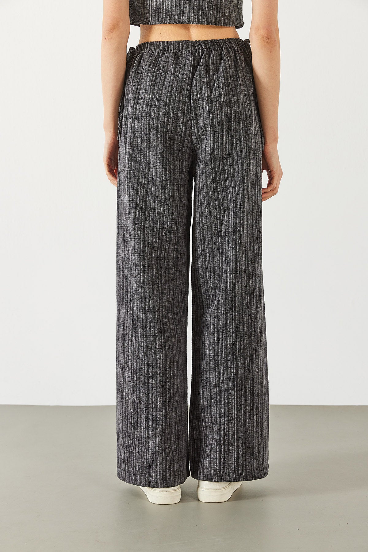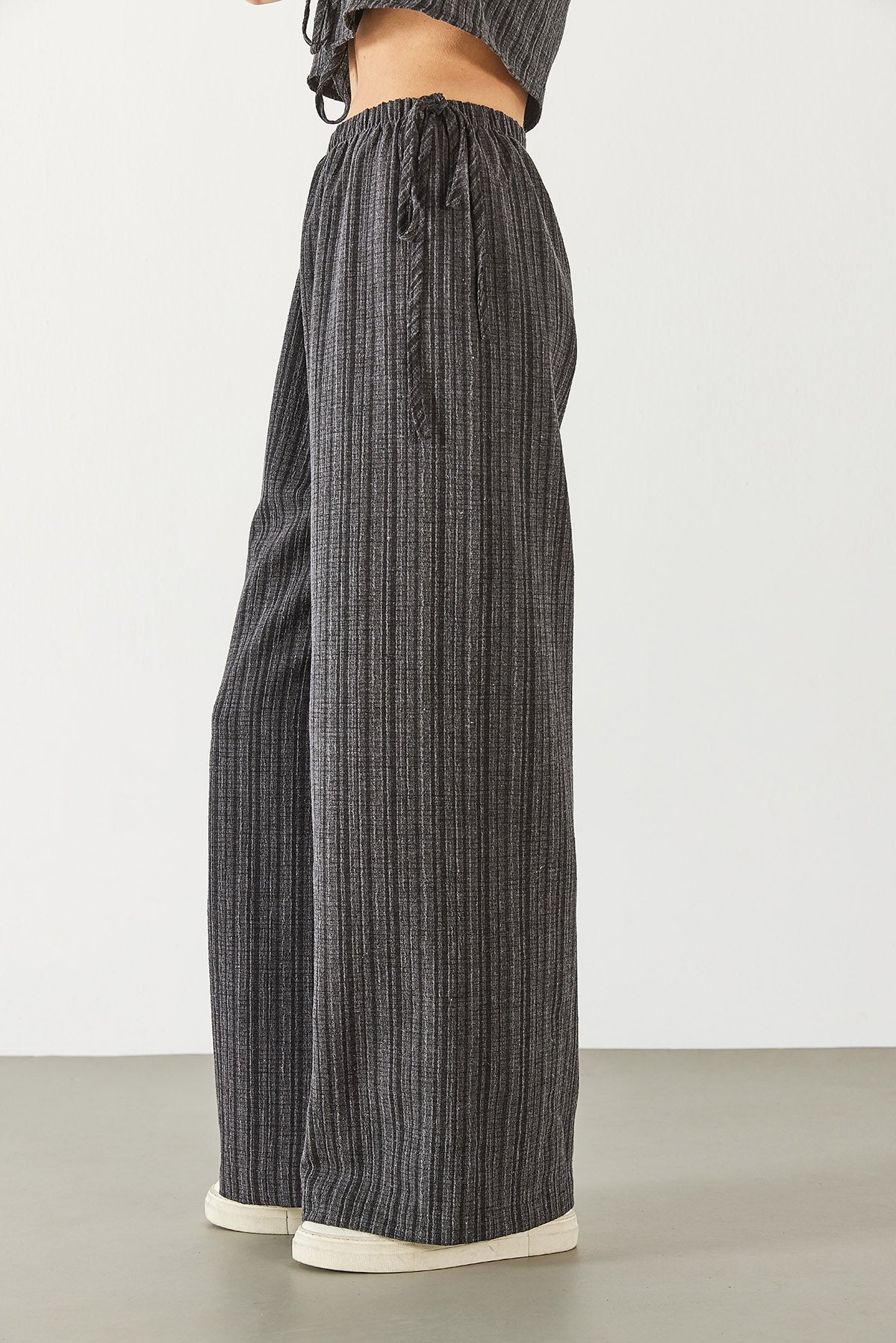 Kadın Keten Görünümlü Beli Lastikli Pantolon - Siyah