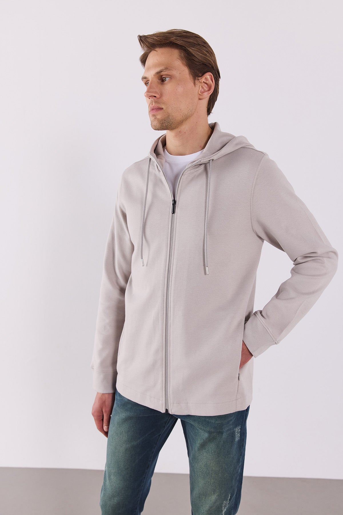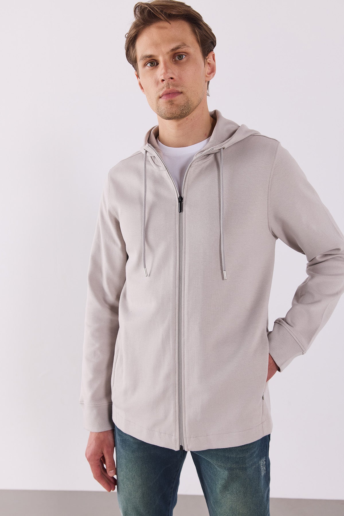 %45 pamuk, %22 lyocell, %21 polyester, %10 viskon ve %2 elastan karışımıyla rahat, esnek ve nefes alabilir bir kumaşa sahiptir.
