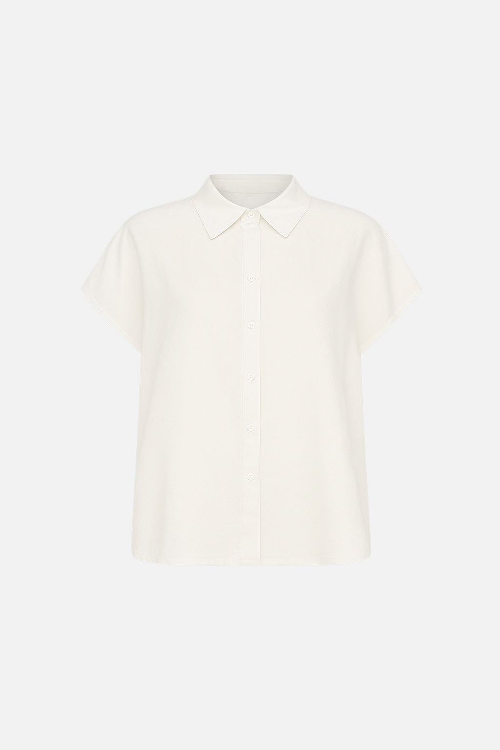 Kadın Kısa Kollu Regular Fit Keten Gömlek - Fildişi