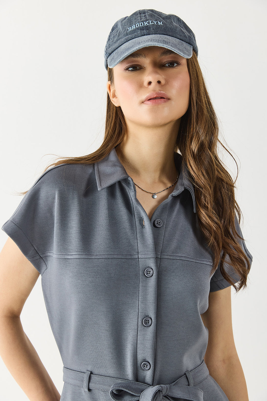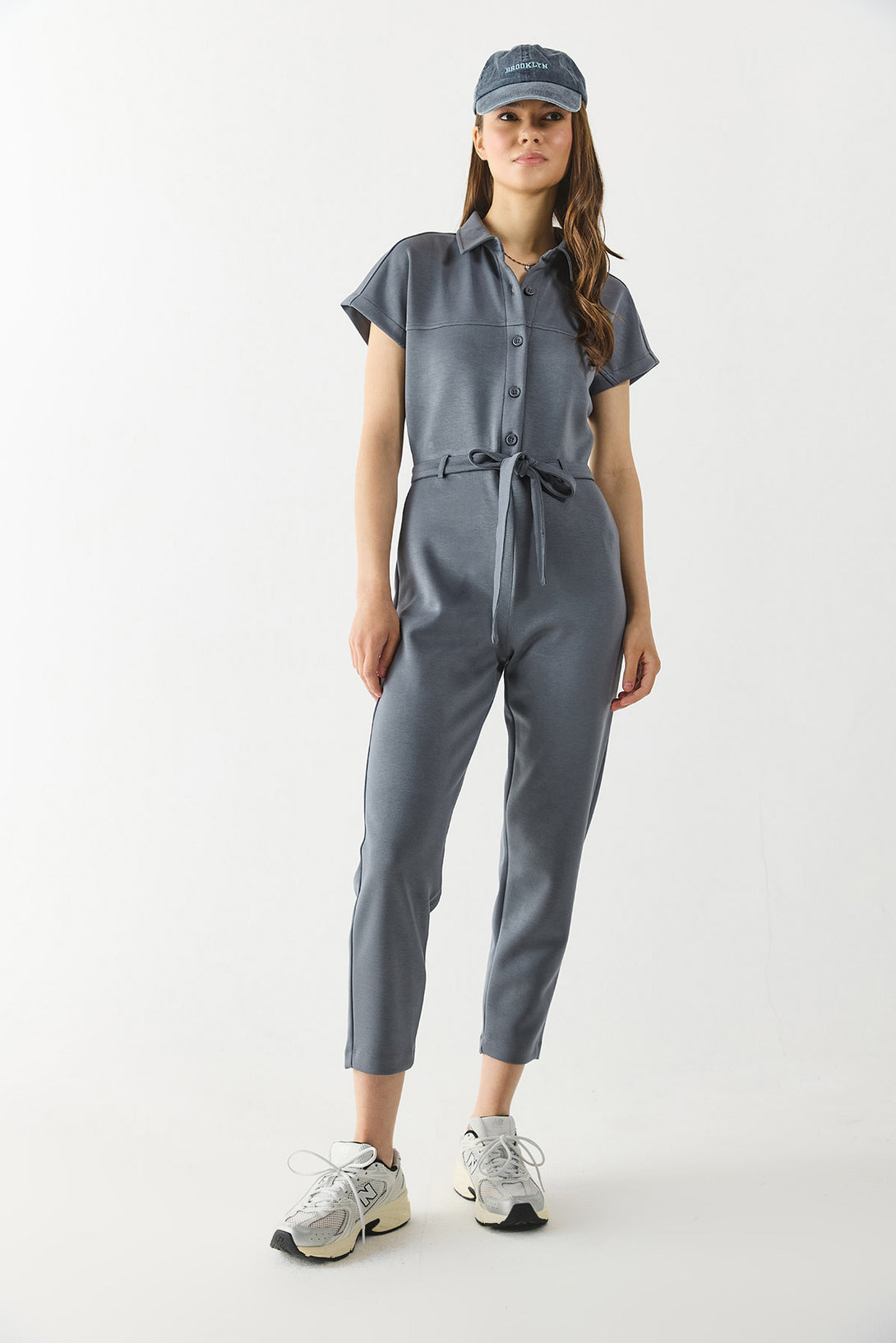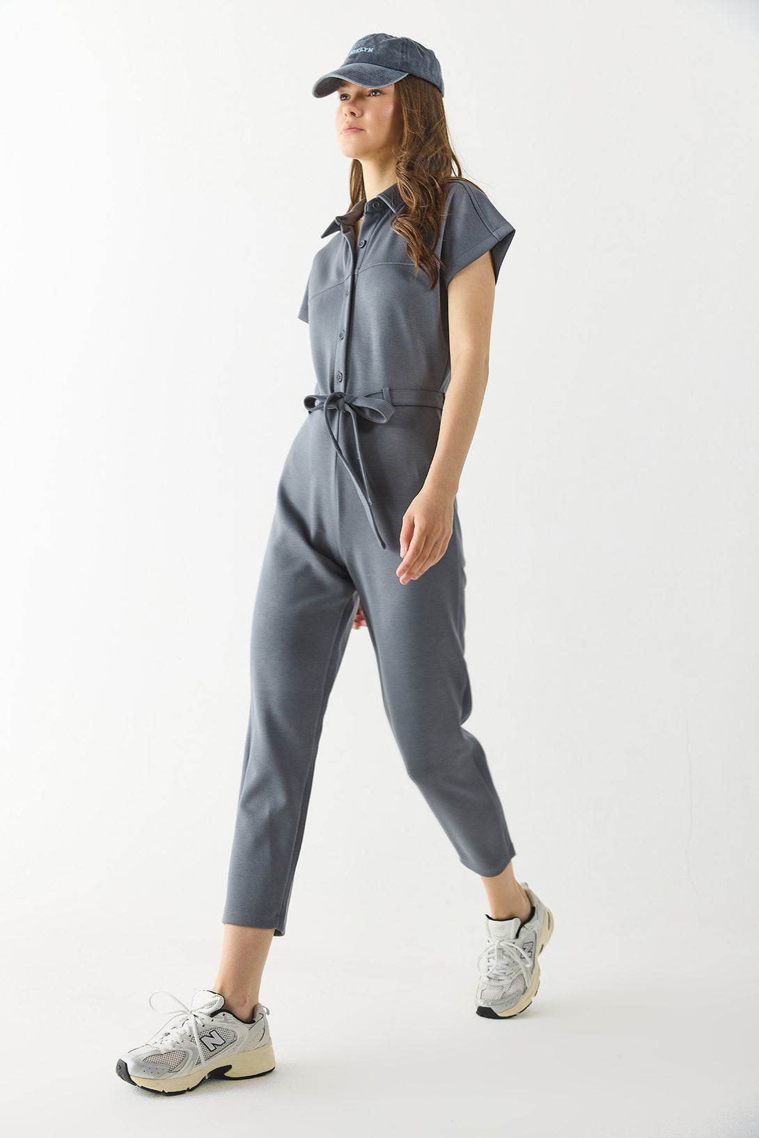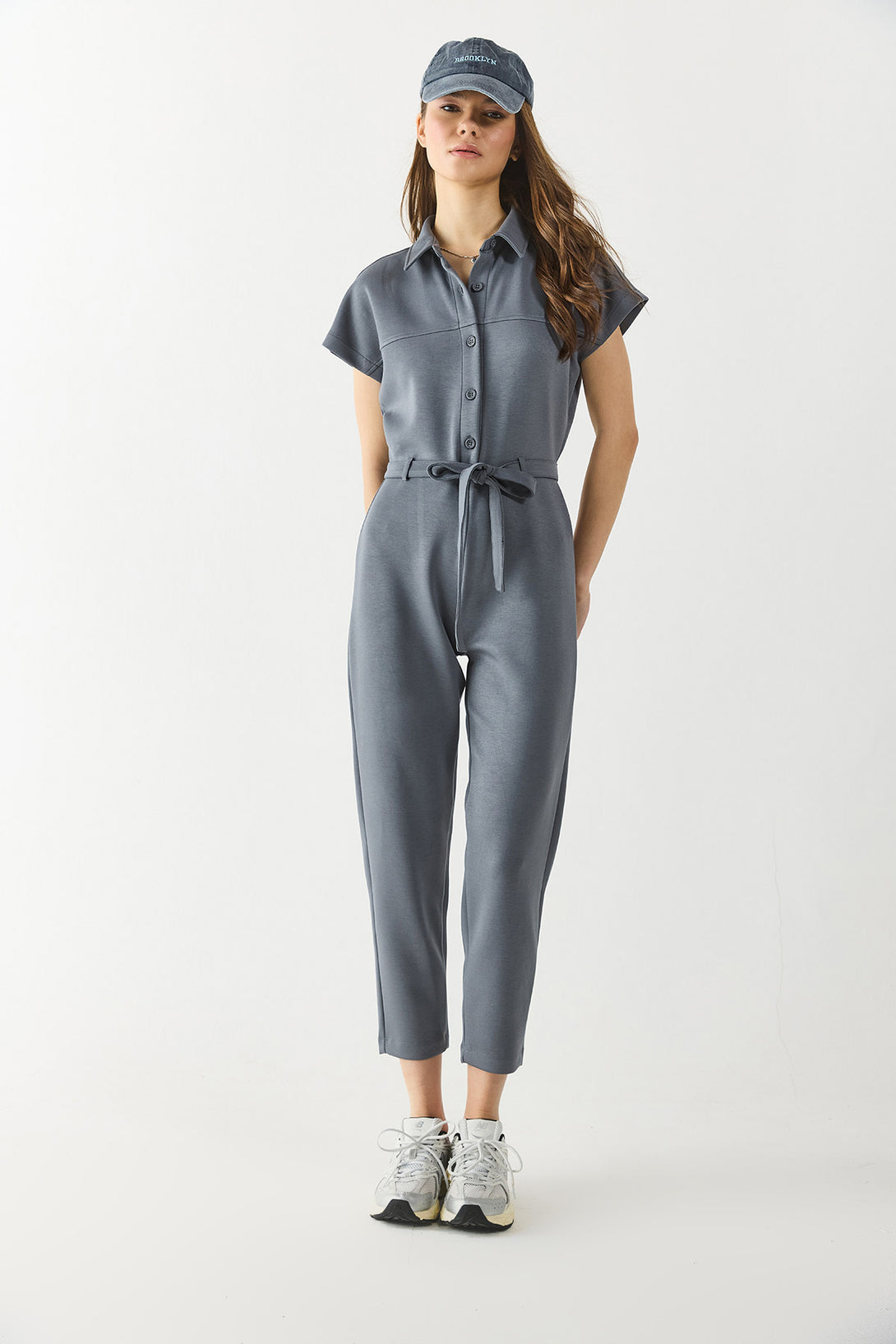 Kısa Kollu Tulum(CUPRO) - ANTRASİT