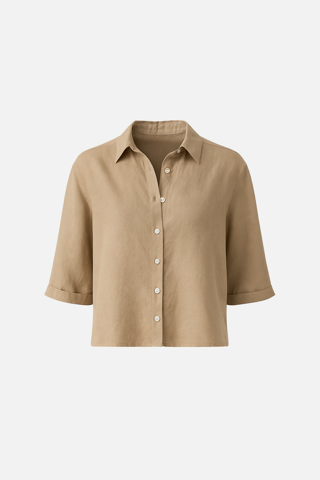 Kadın Kısa Kollu Yumuşak Dokulu Oversize Gömlek (CUPRO) - Vizon