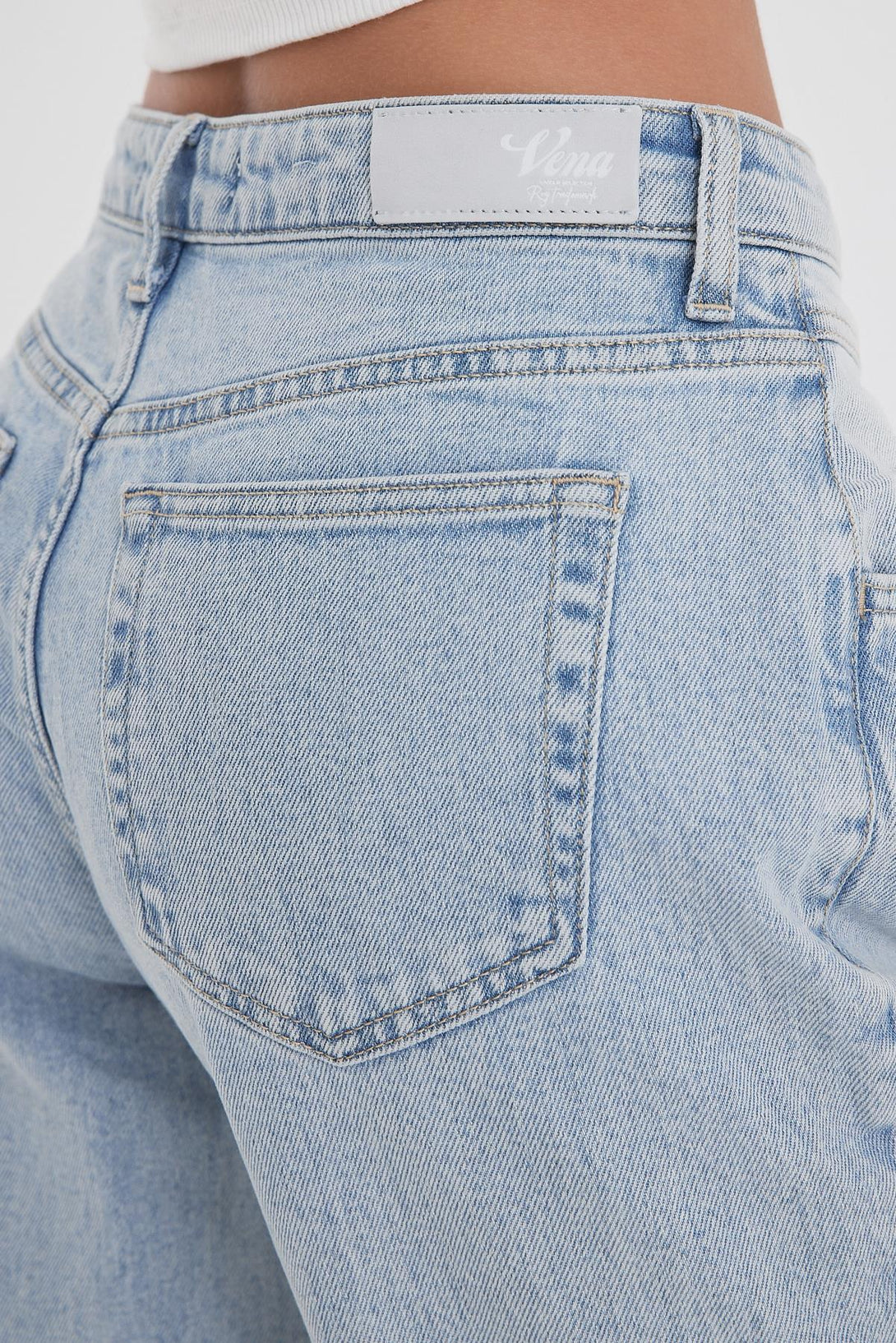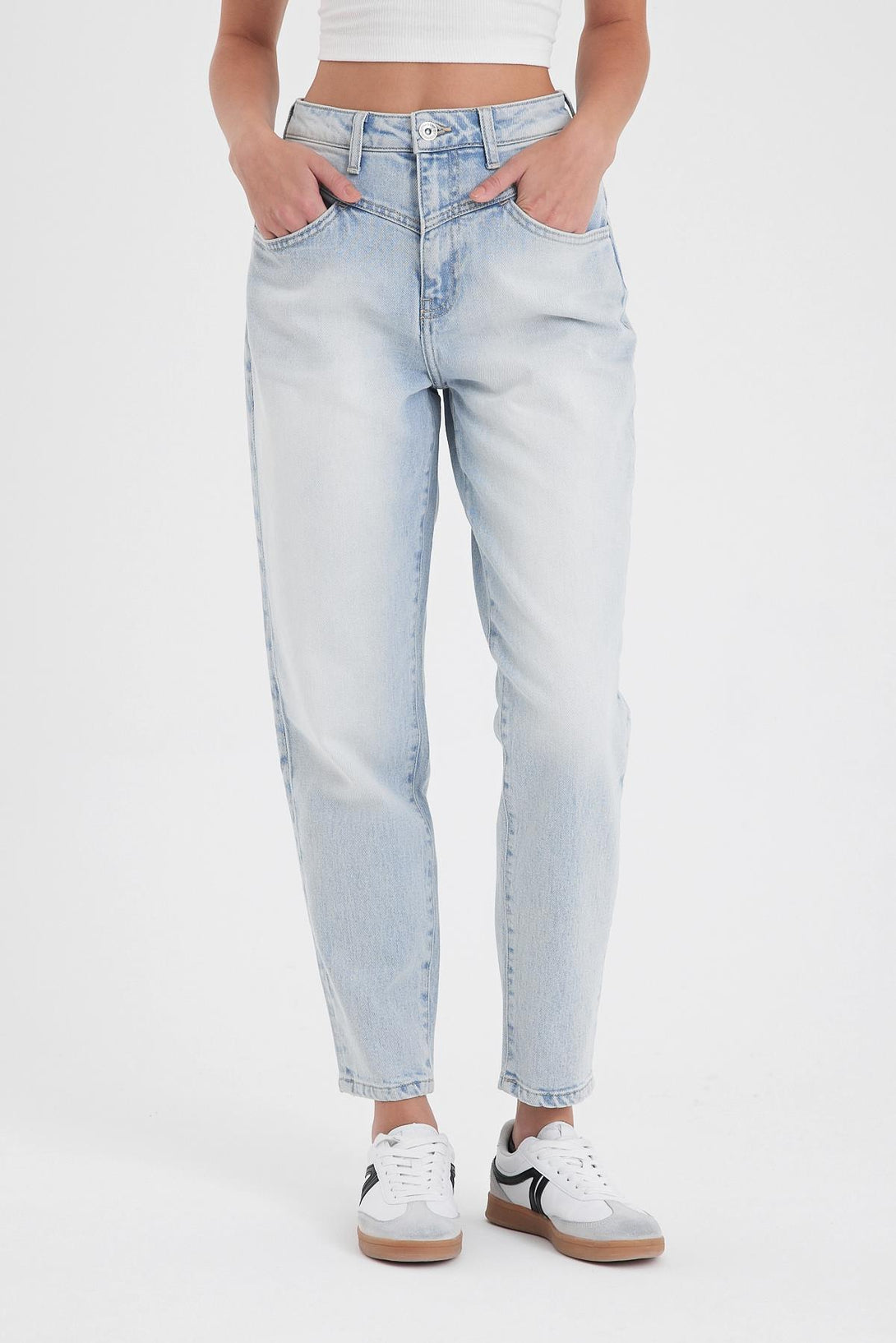 Kadın Kyla Sky Blue Yüksek Bel Yırtıklı Mom Jean Pantolon