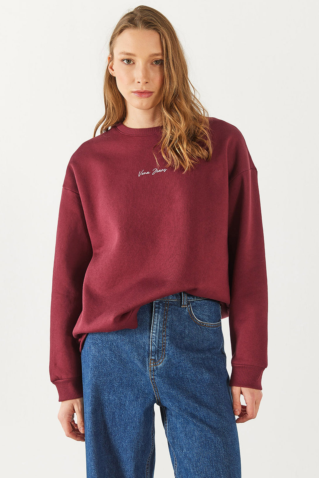 %65 pamuk ve %35 polyester karışımıyla üretilen bu sweatshirt, yumuşak ve konforlu bir giyim deneyimi sunar.