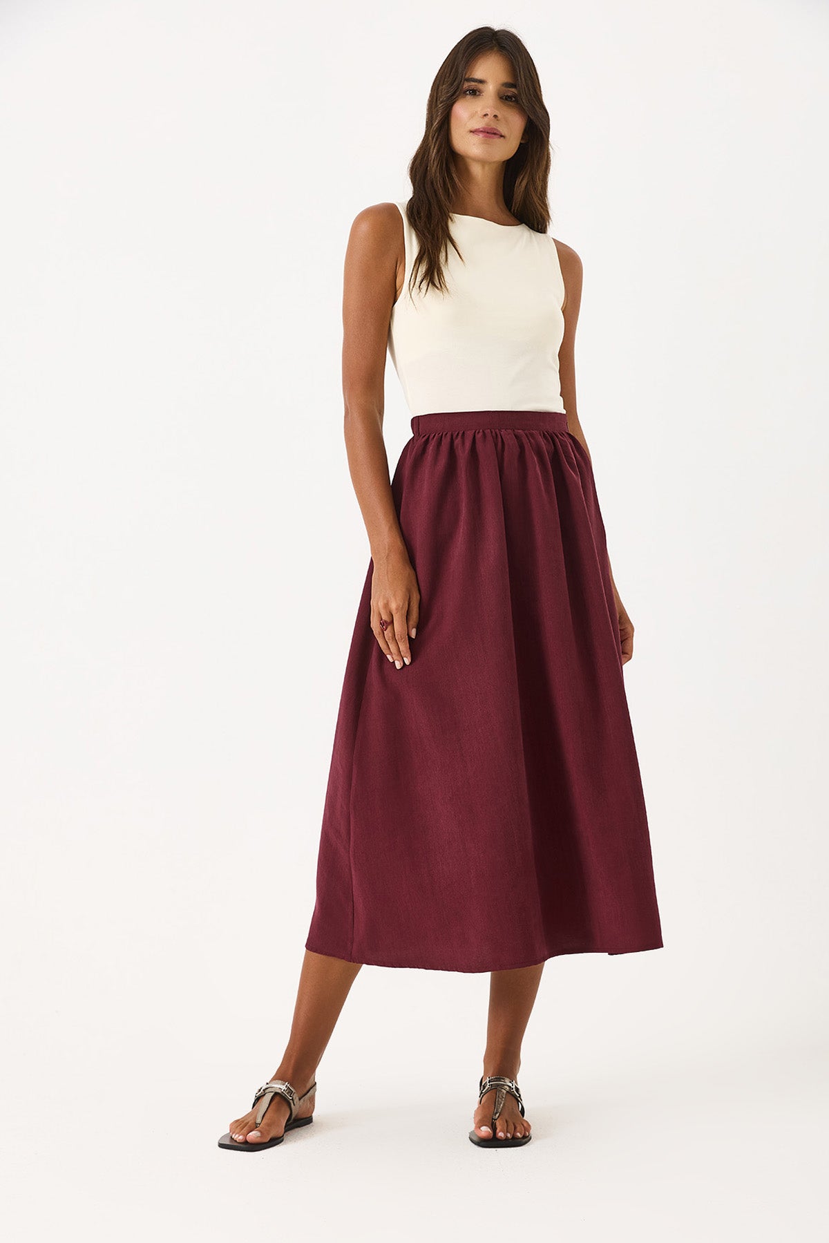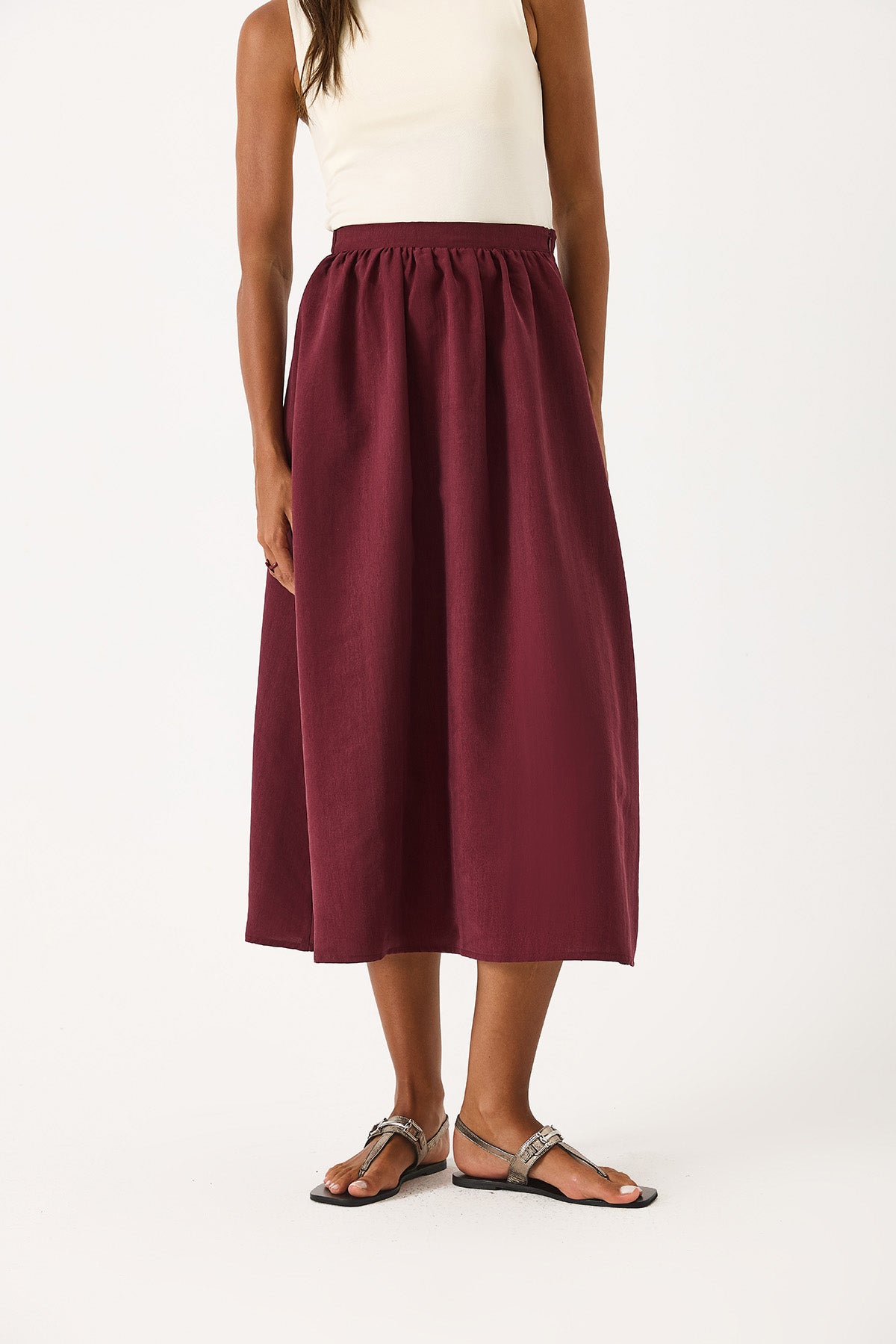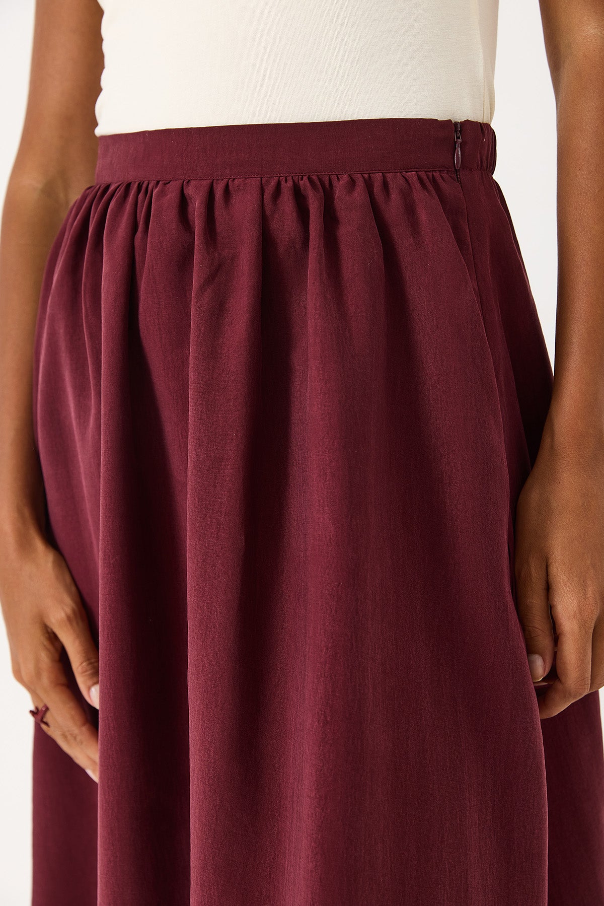Kadın Lyocell Premium Midi Etek - Bordo