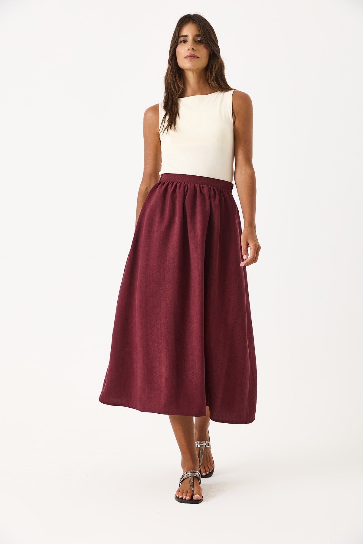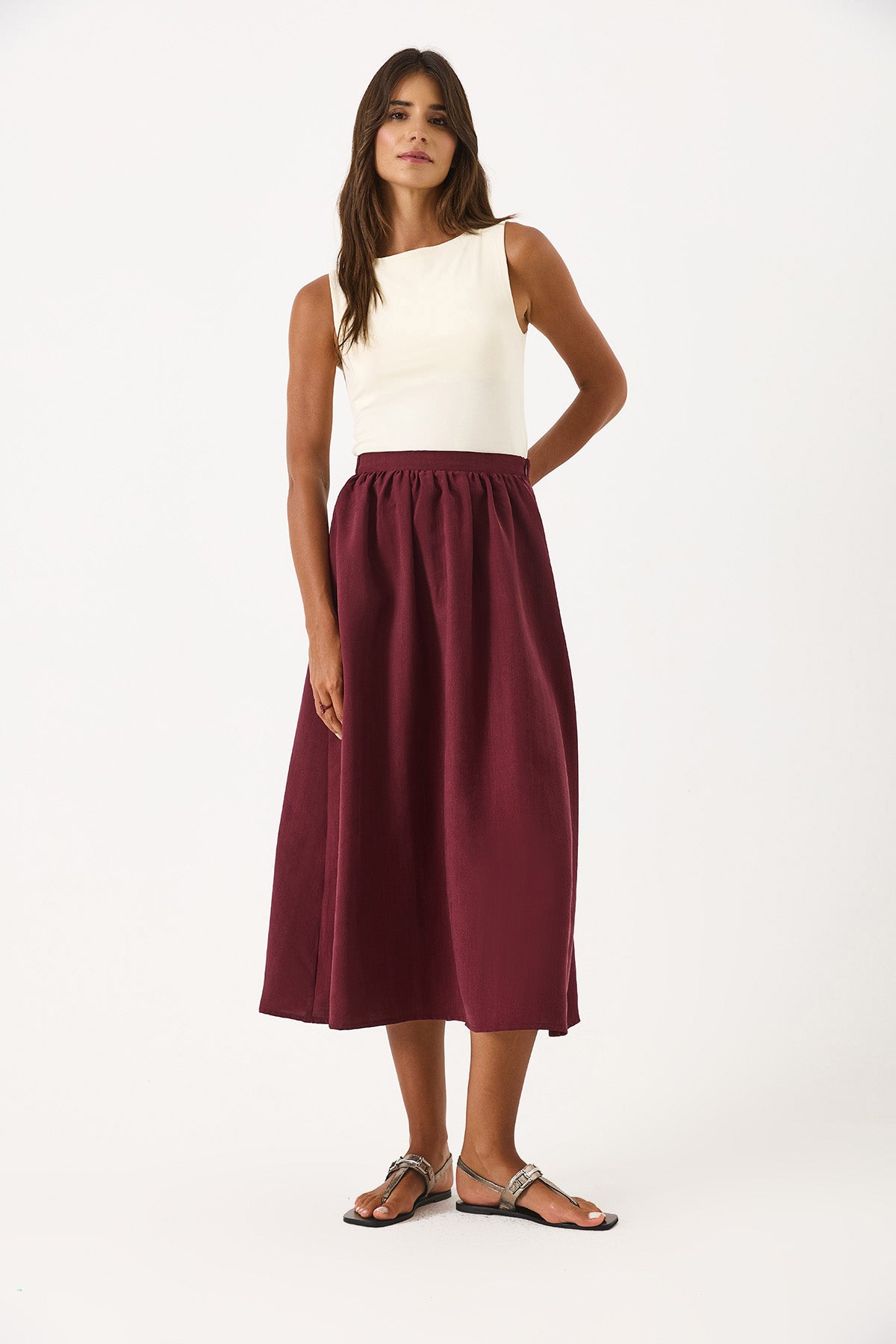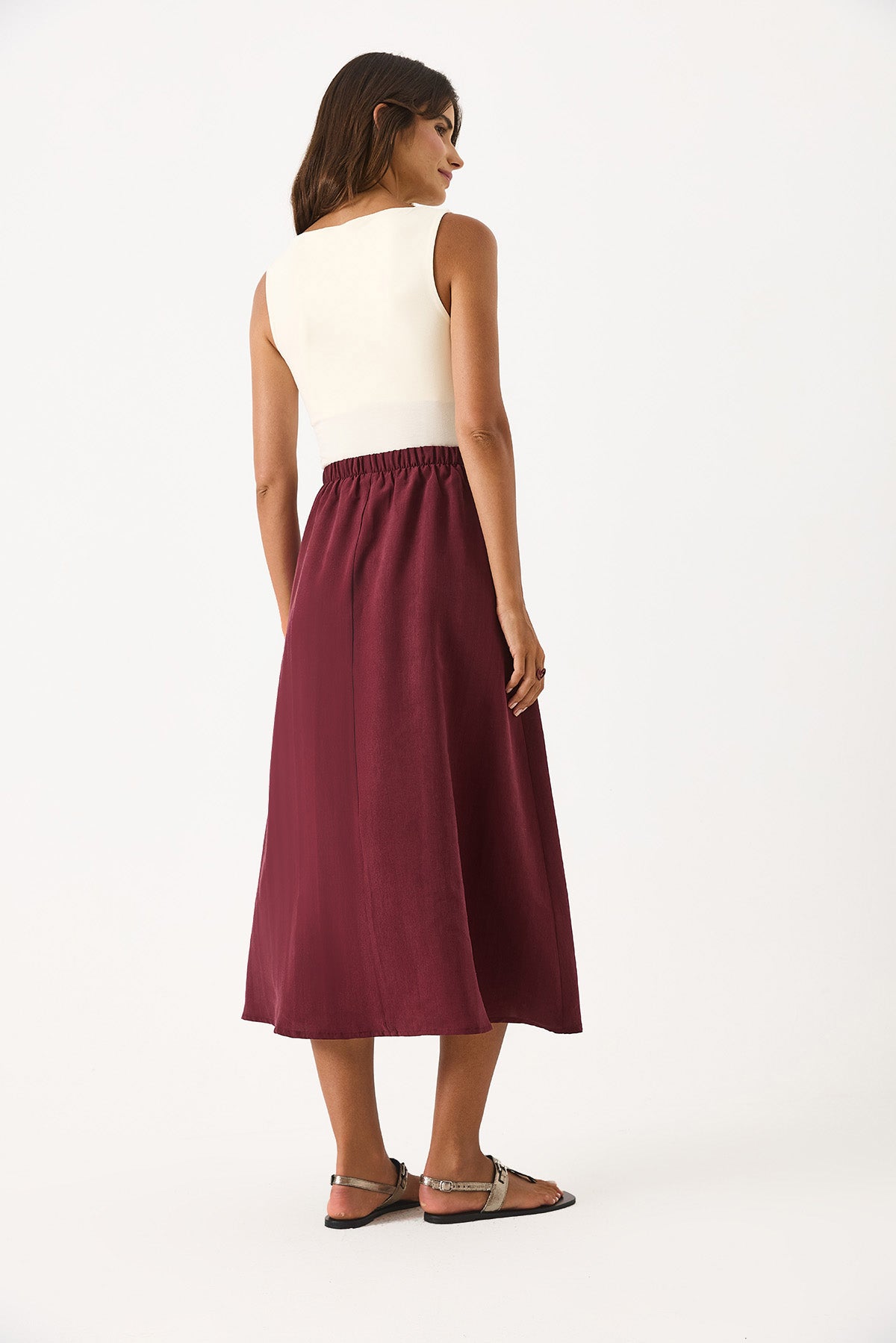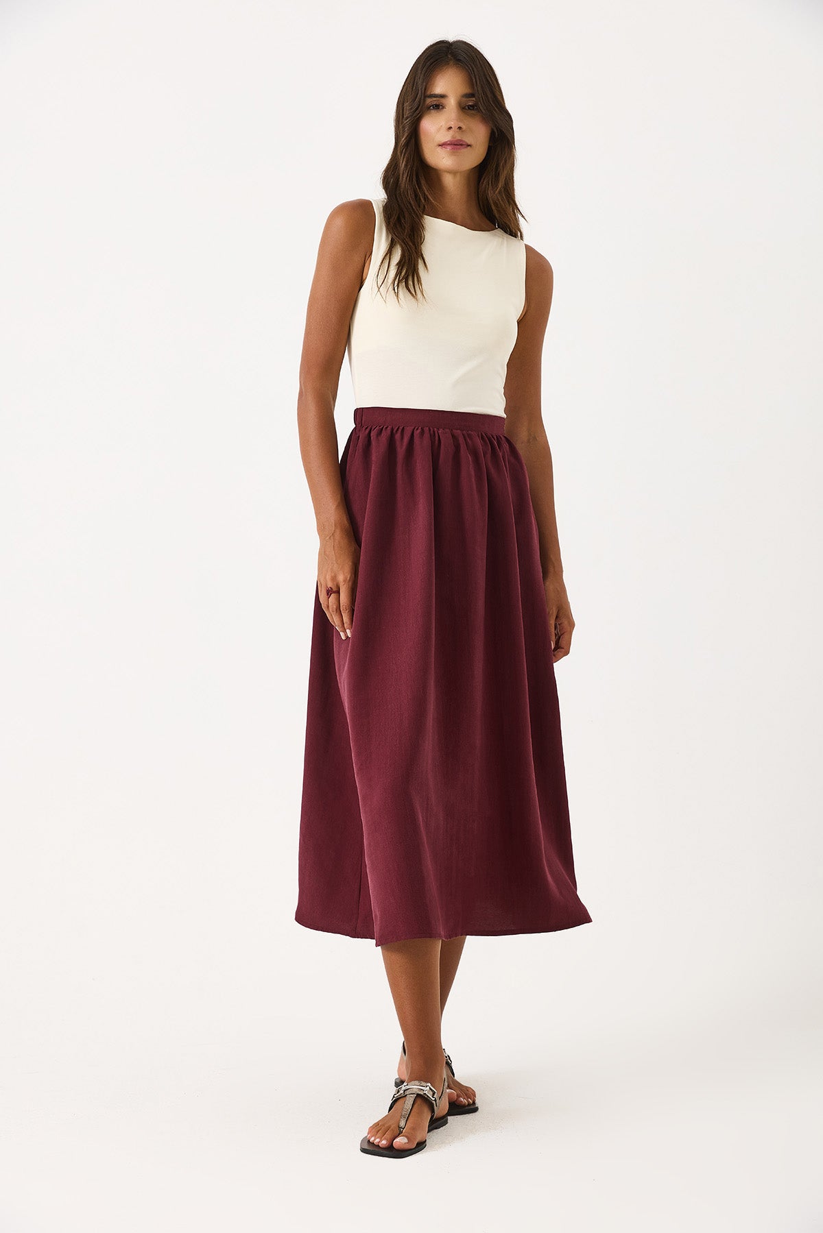 Kadın Lyocell Premium Midi Etek - Bordo
