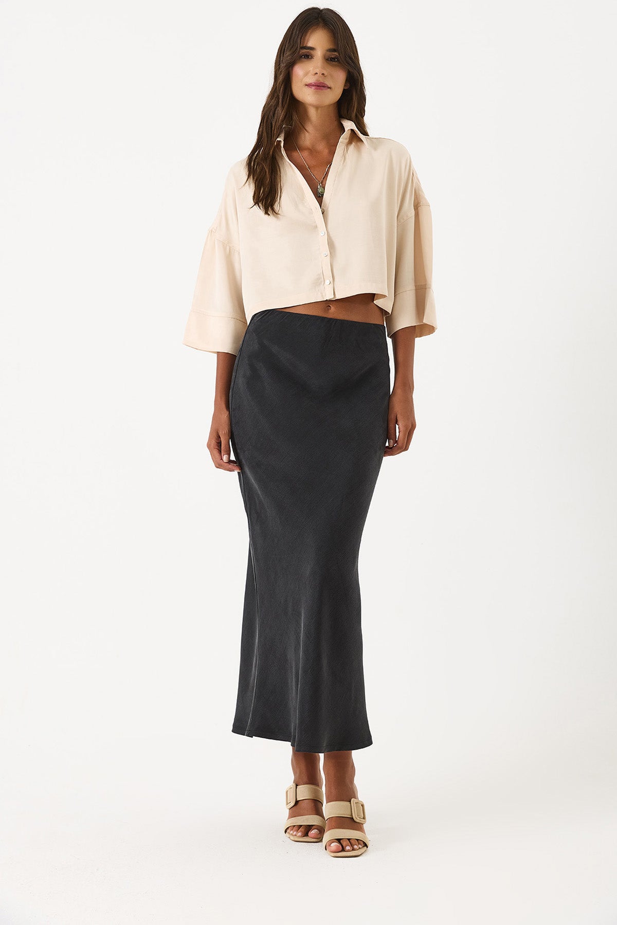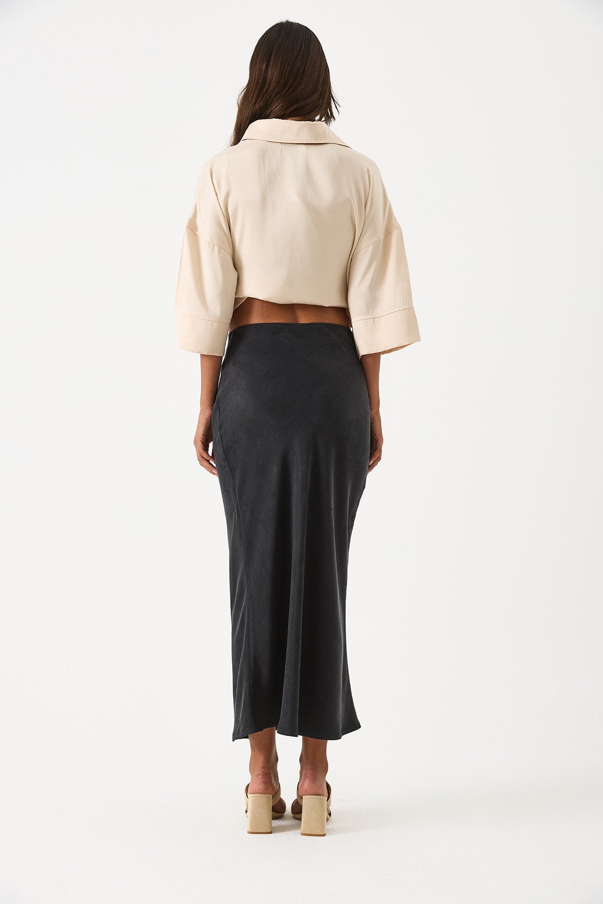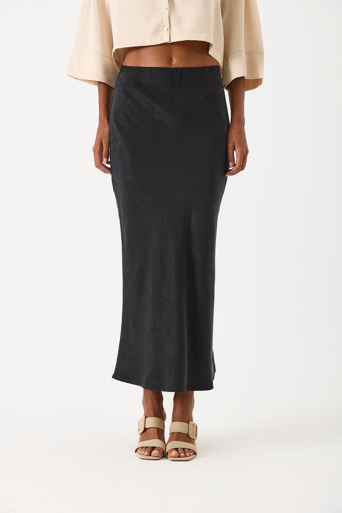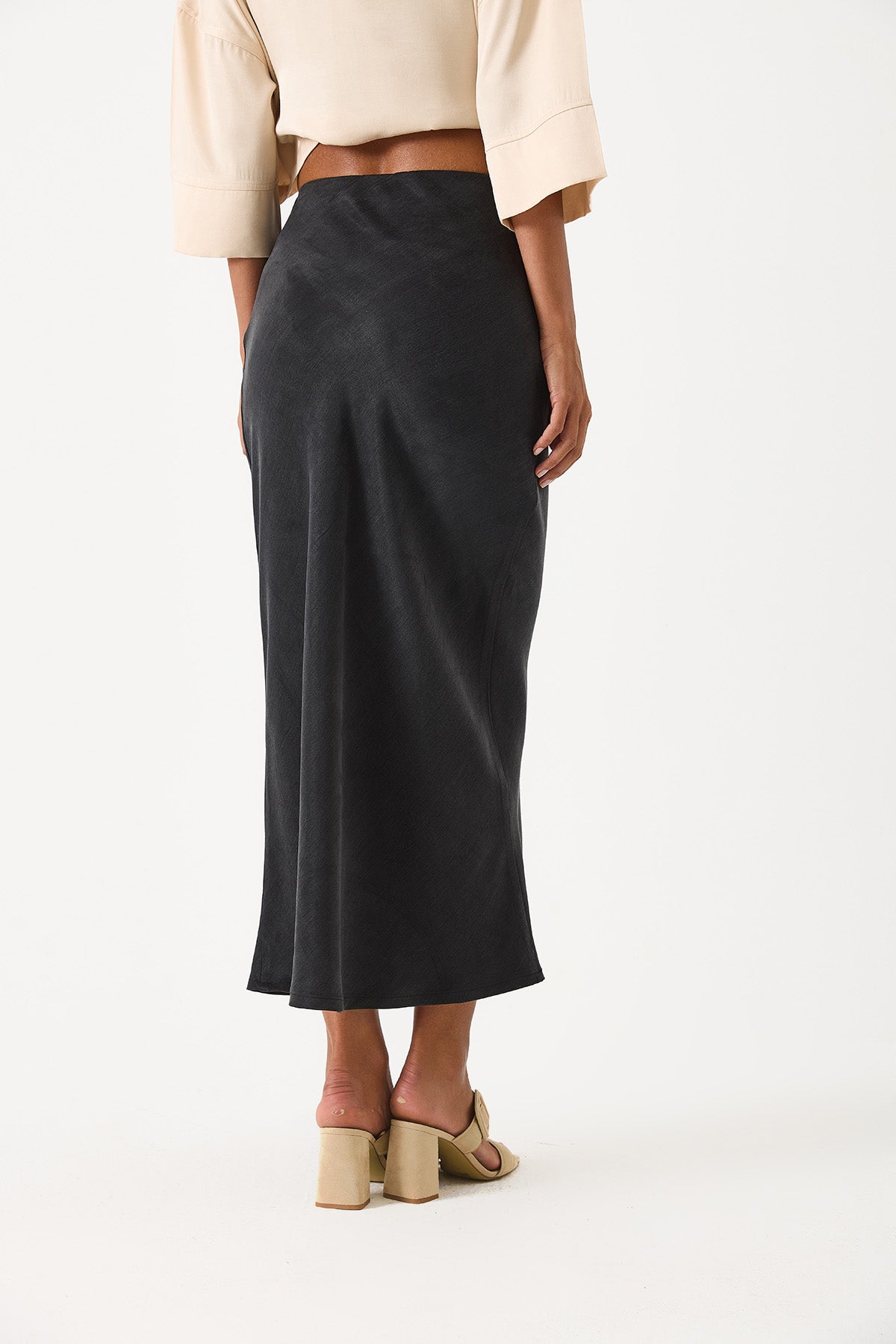 Kadın Lyocell Saten Midi Etek - Siyah